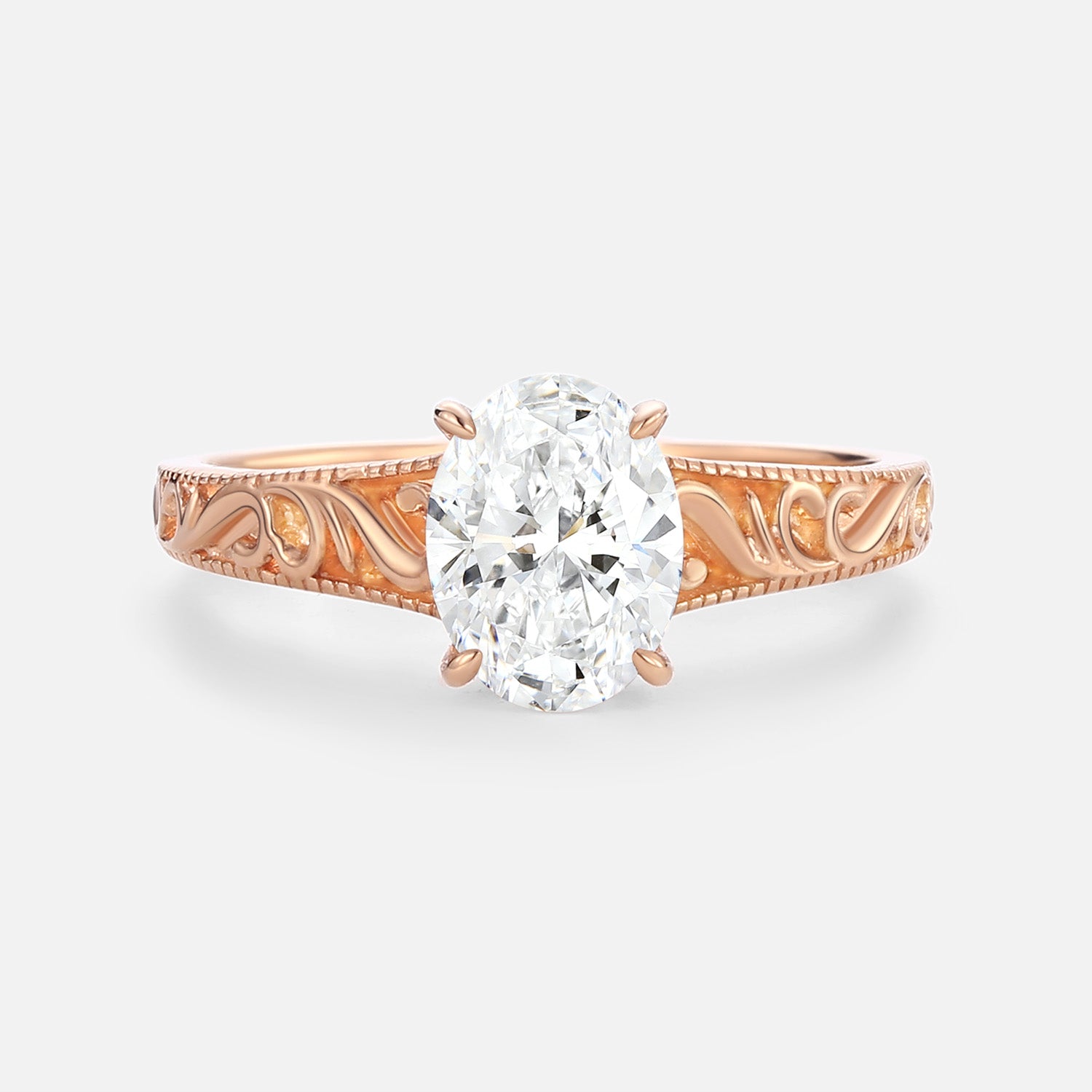 Oval Cut Lab Grown Diamond Engraved Solitaire Engagement Ring - Olive
