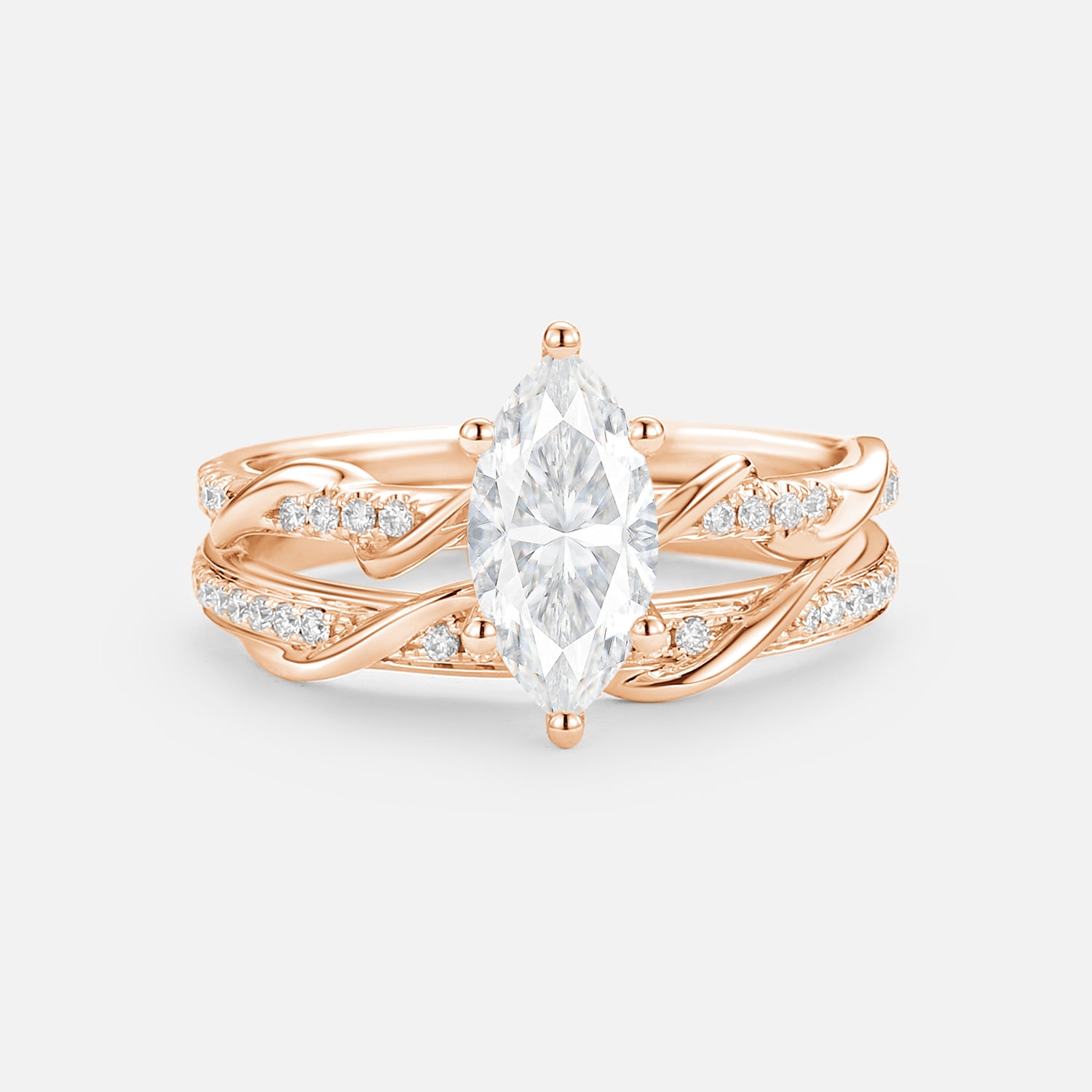 Stream’s Eternal Vow - Marquise Cut Moissanite Infinity Twist Engagement Ring Set