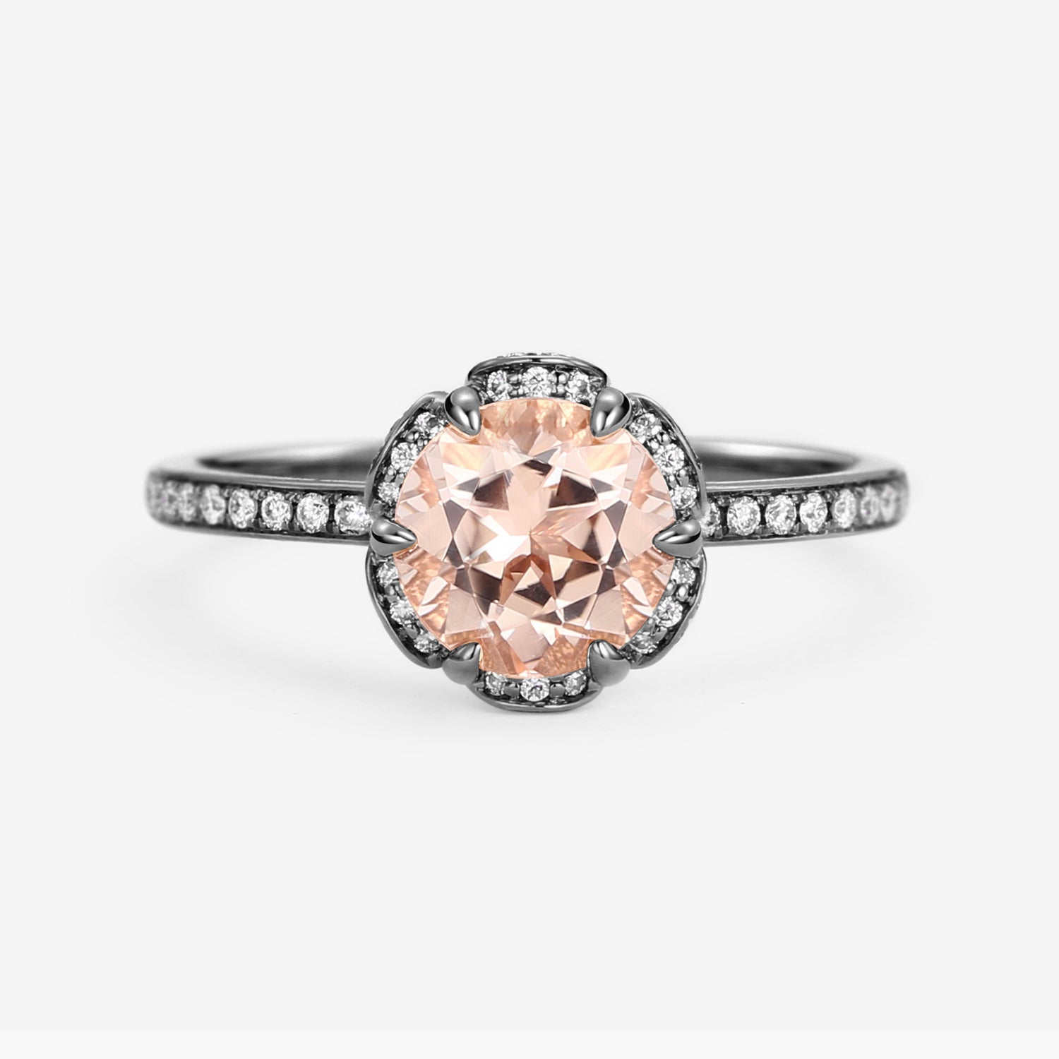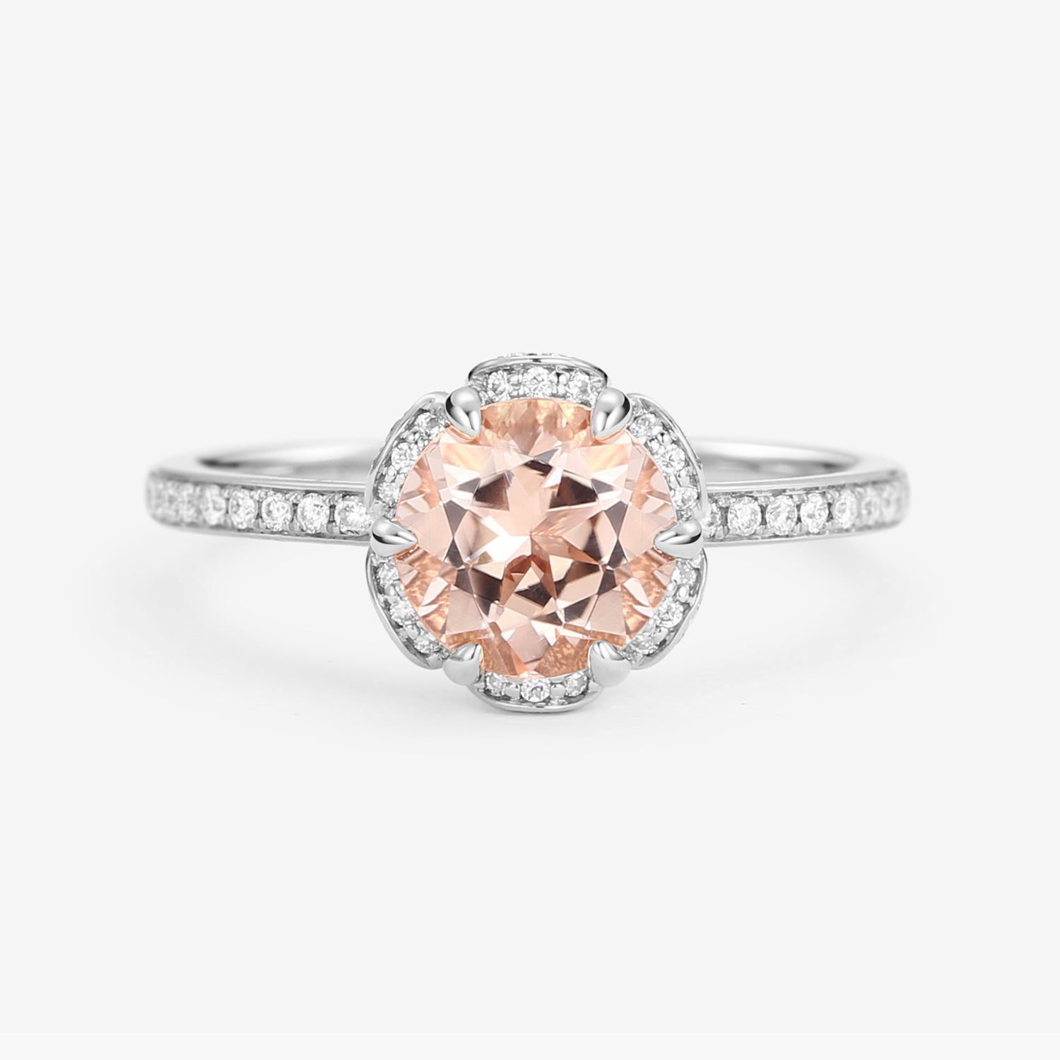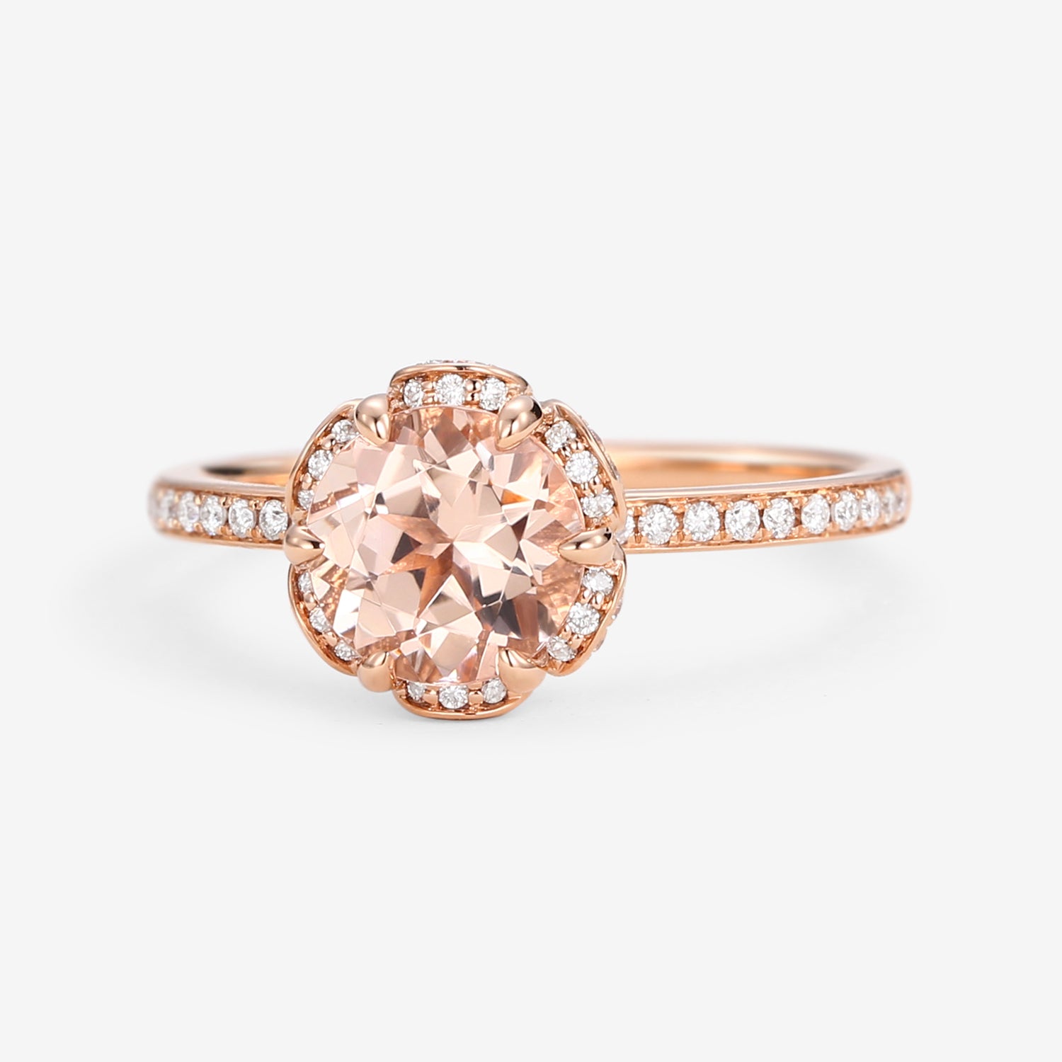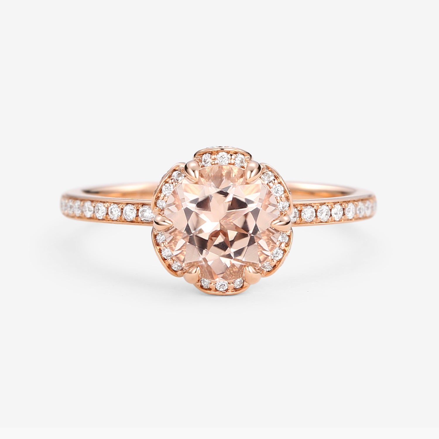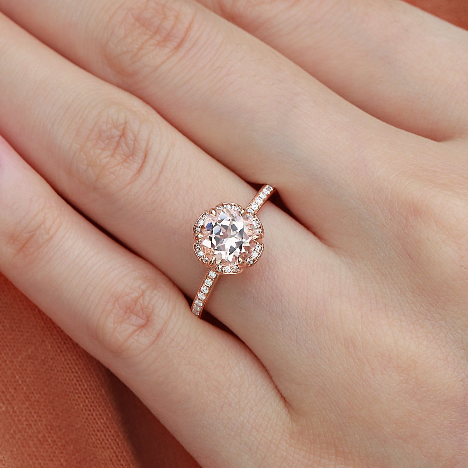 Felicegals 1.2ct Floral Morganite & Moissanite Engagement Ring Colorless Moissanite Holo Wedding Ring Anniversary Gift