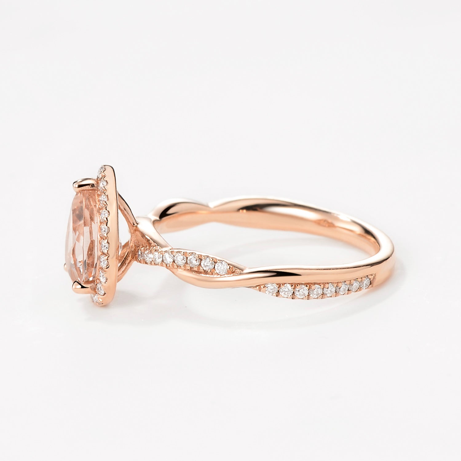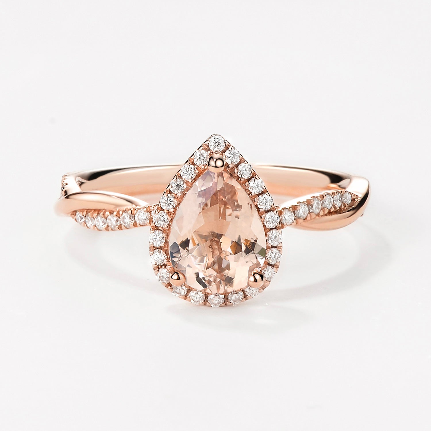 1.5ct Pear Cut Morganite Infinity Halo Engagement Ring