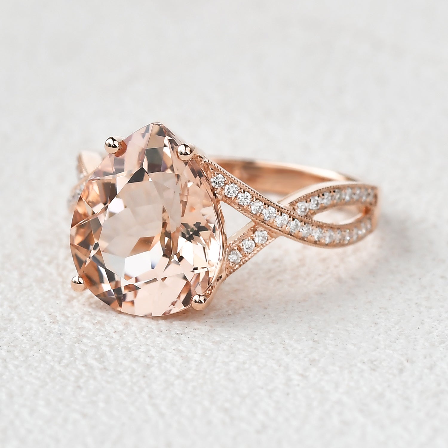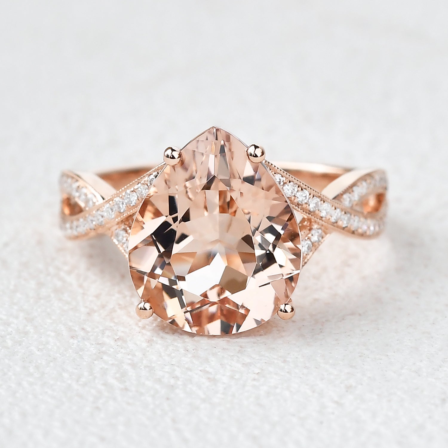 4.75ct Pear Shaped Morganite Infinity Ring