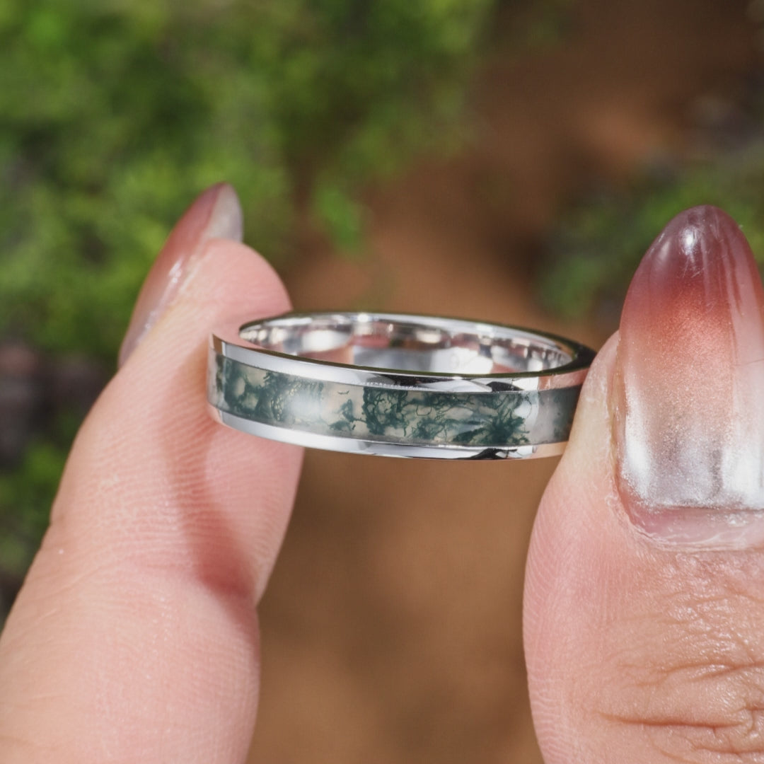5mm Minimalist Moss Agate Inlay Couple Men's Wedding Band