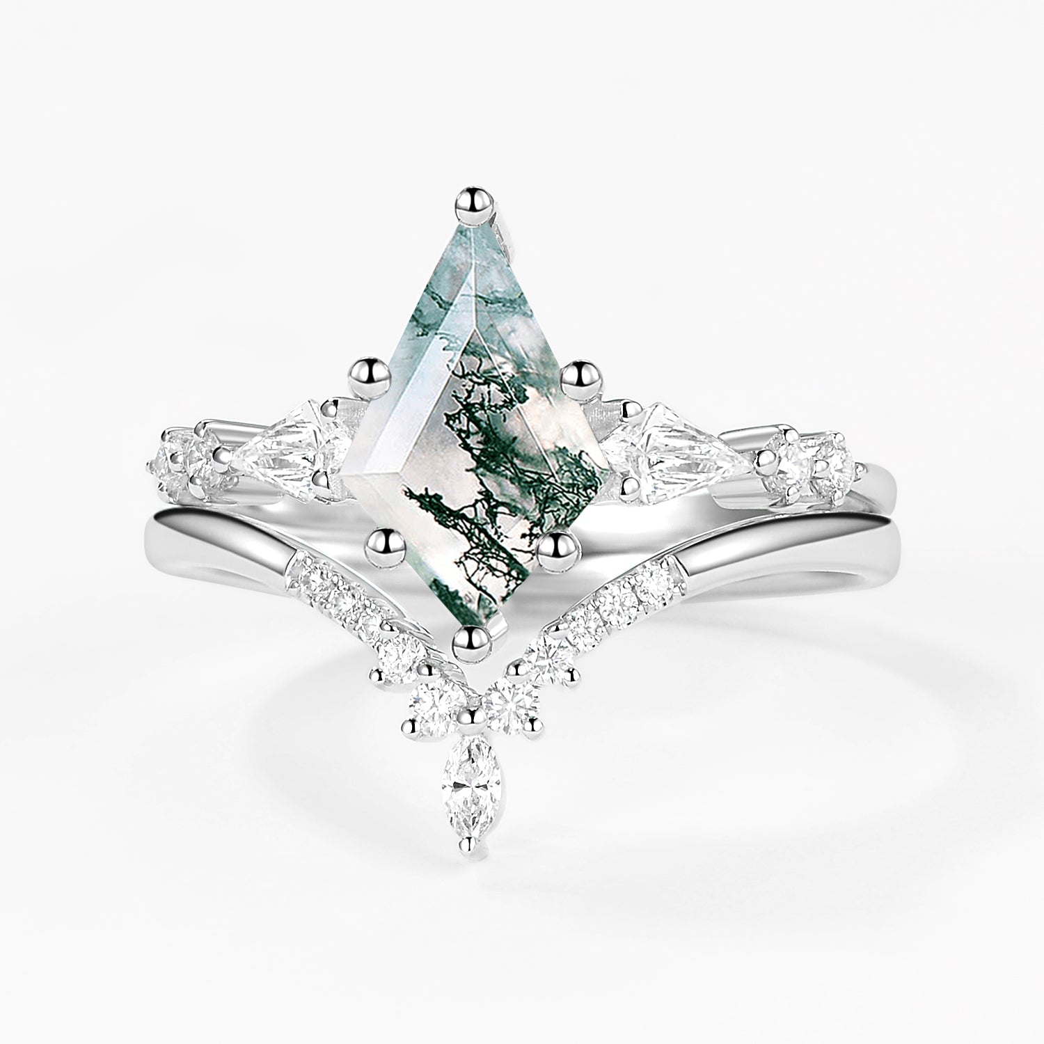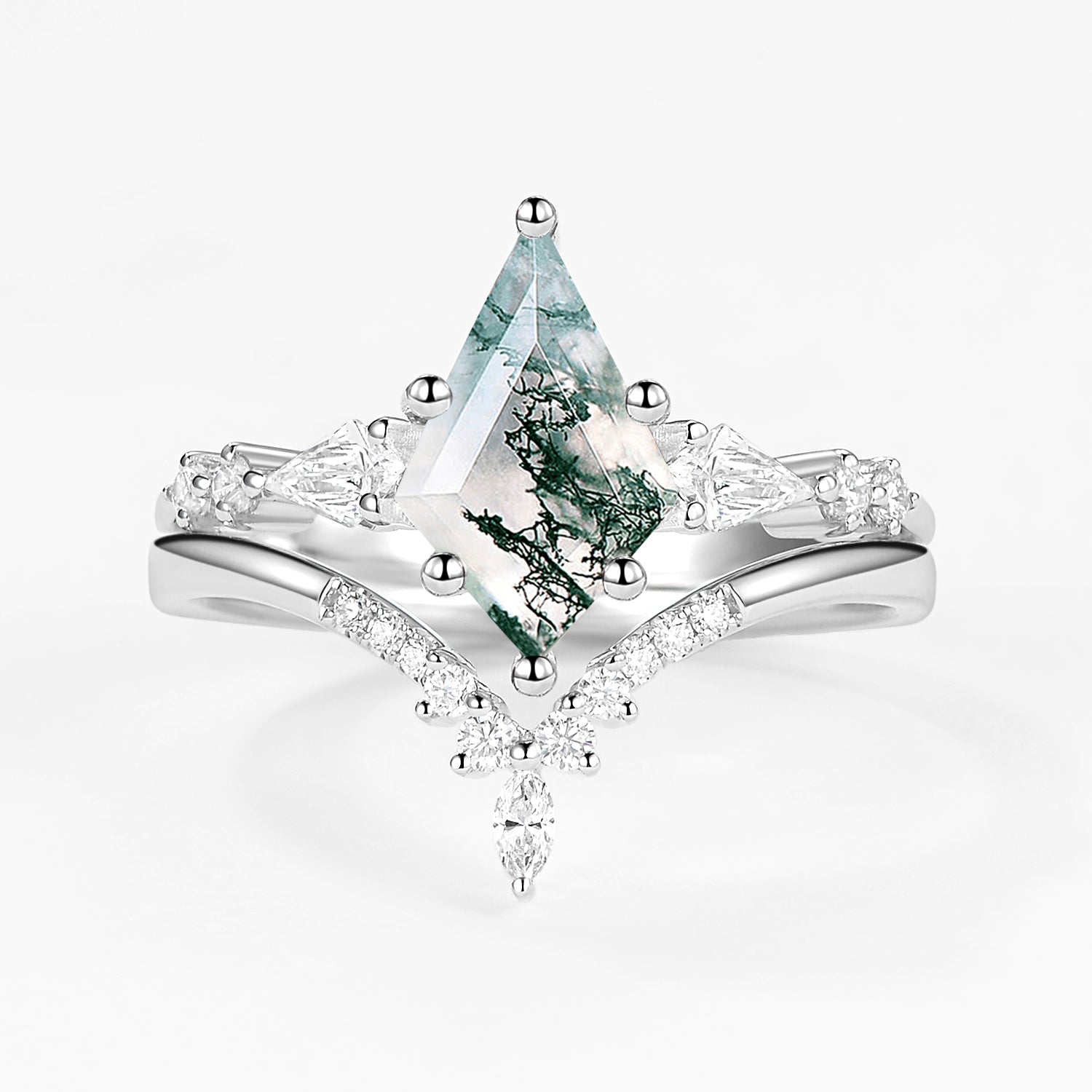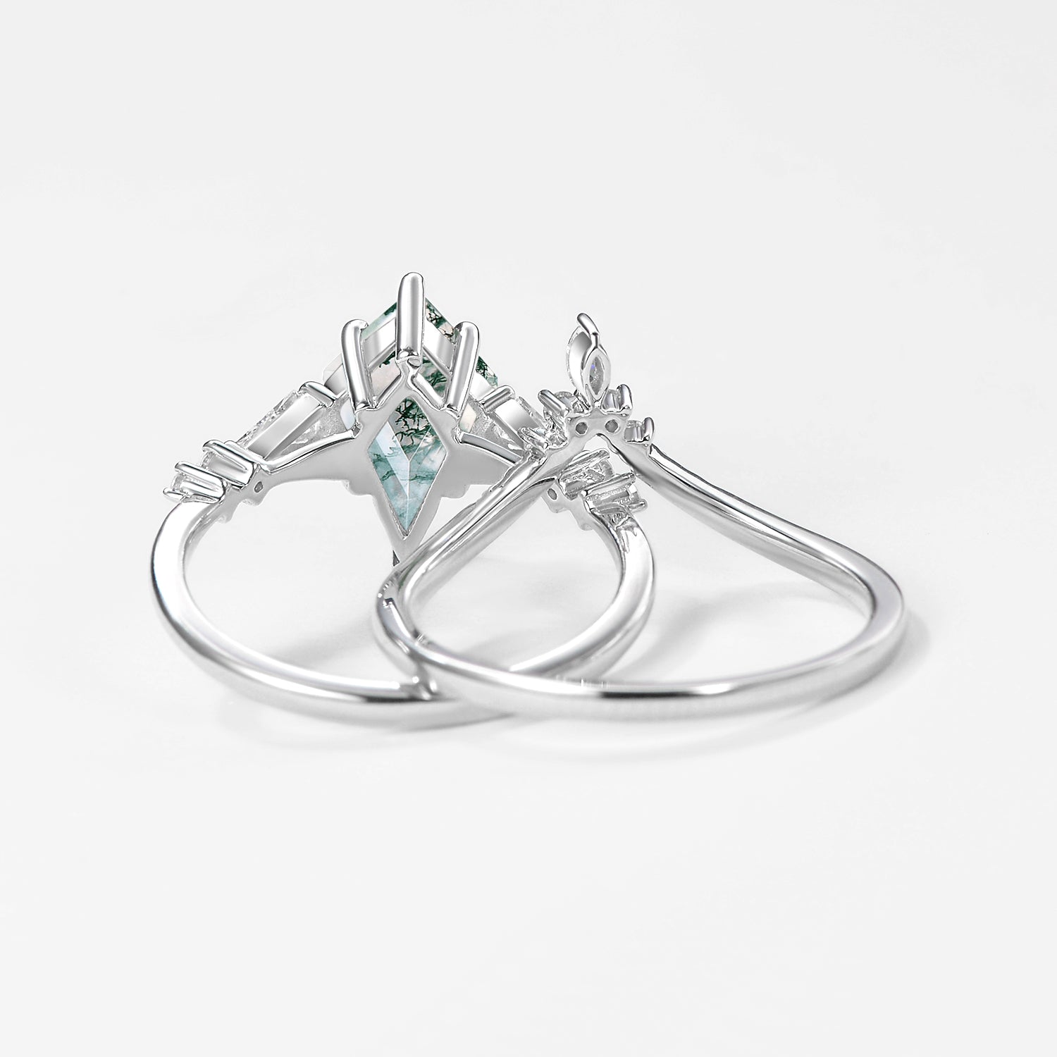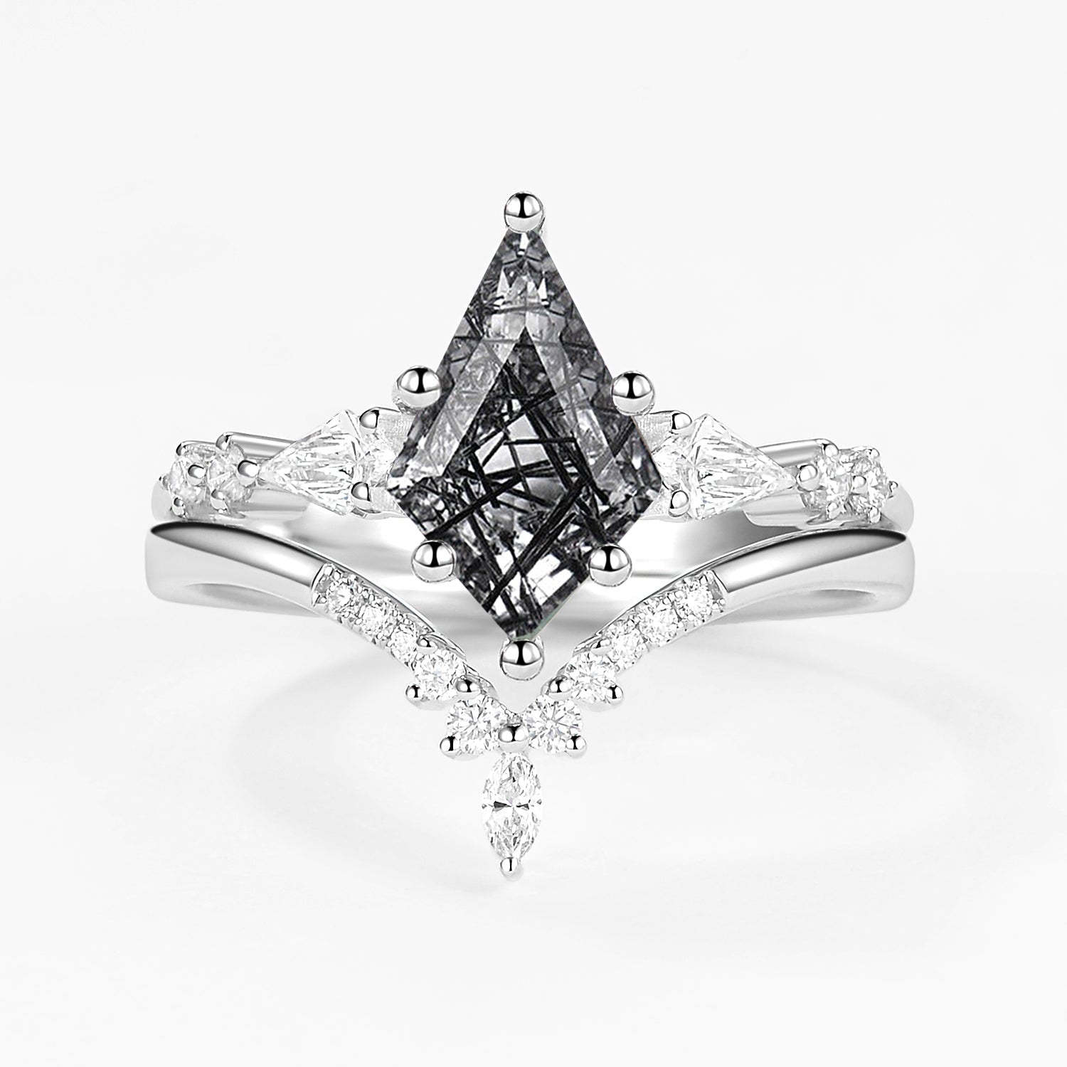 Black Rutilated Quartz Three Kite Stone Engagement Ring Sets 2pcs