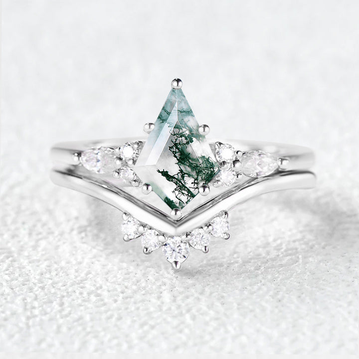 Felicegals Kite Cut Moss Agate Engagement Ring Set 2pcs