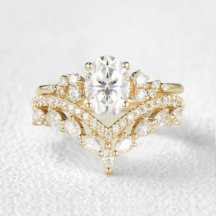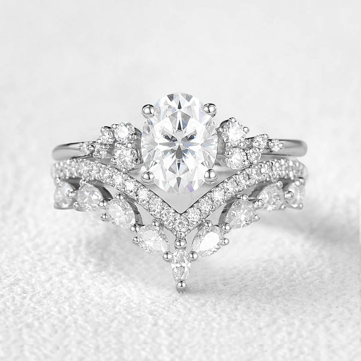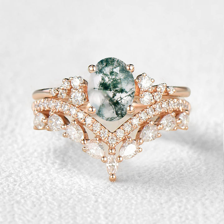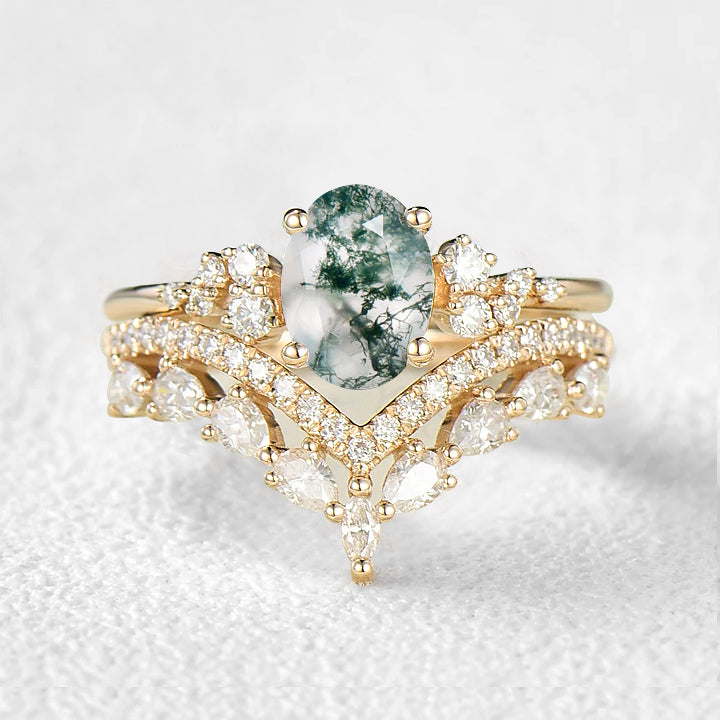 Gorgeous Oval Moss Agate Engagement Ring Set 2pcs