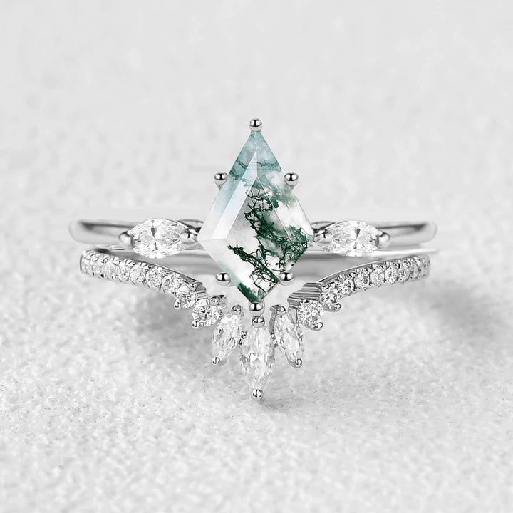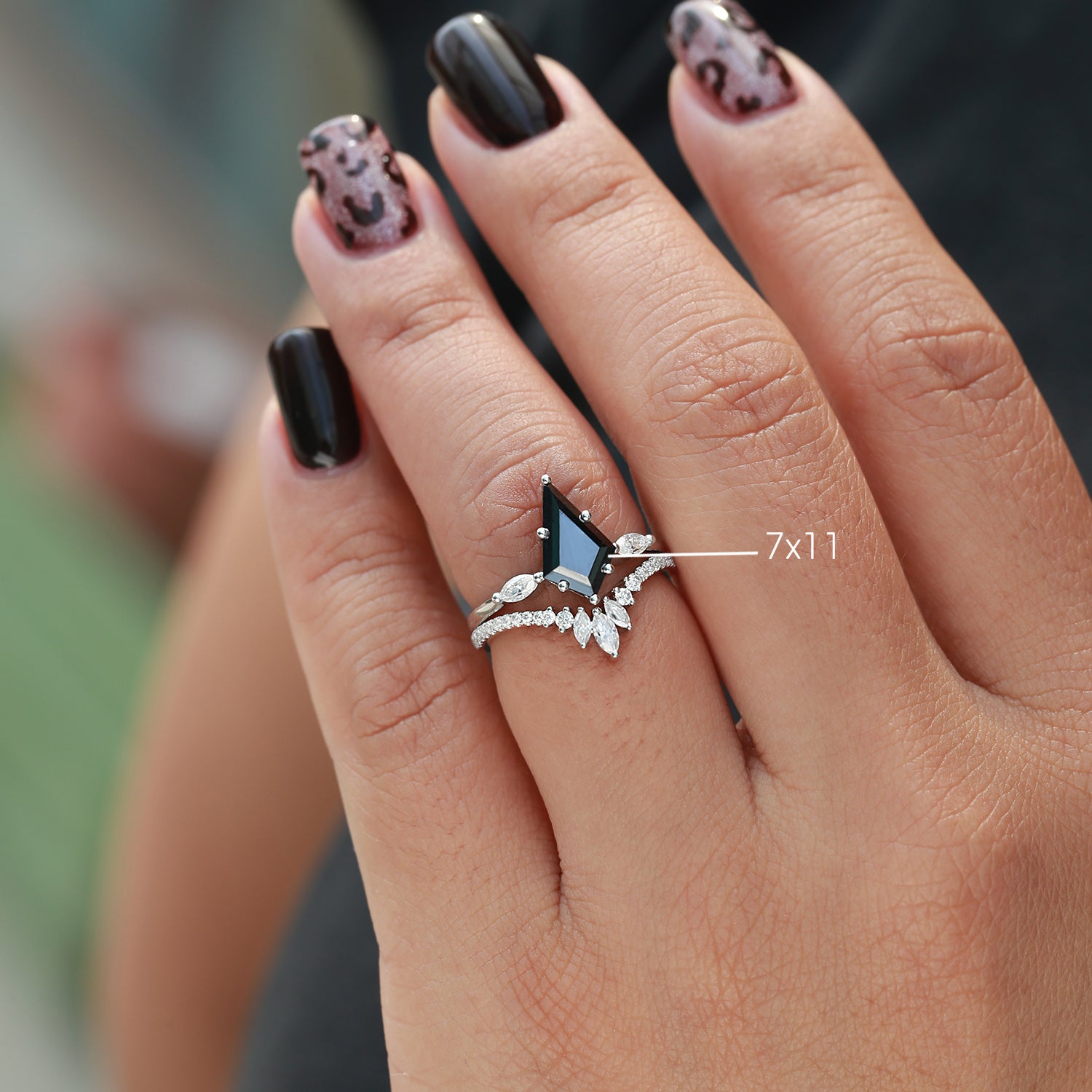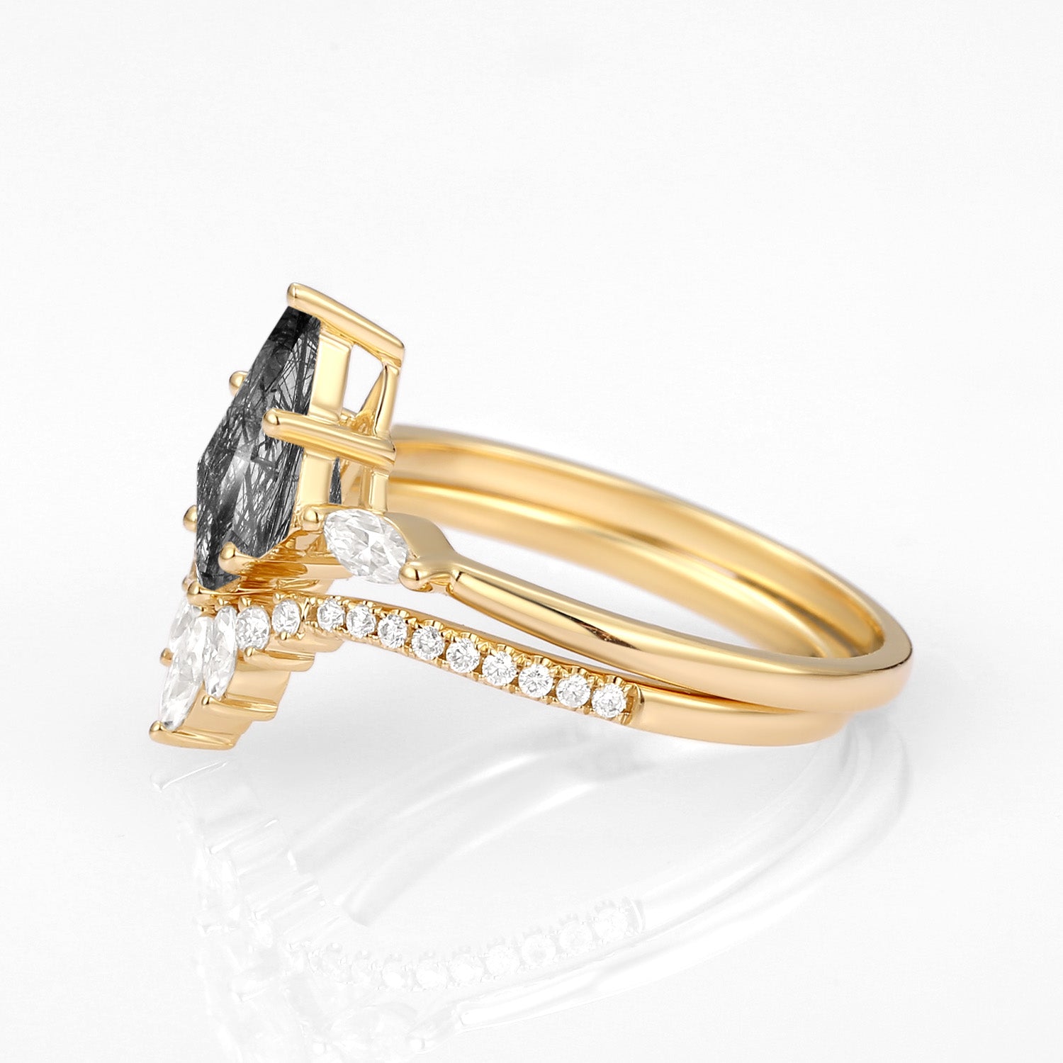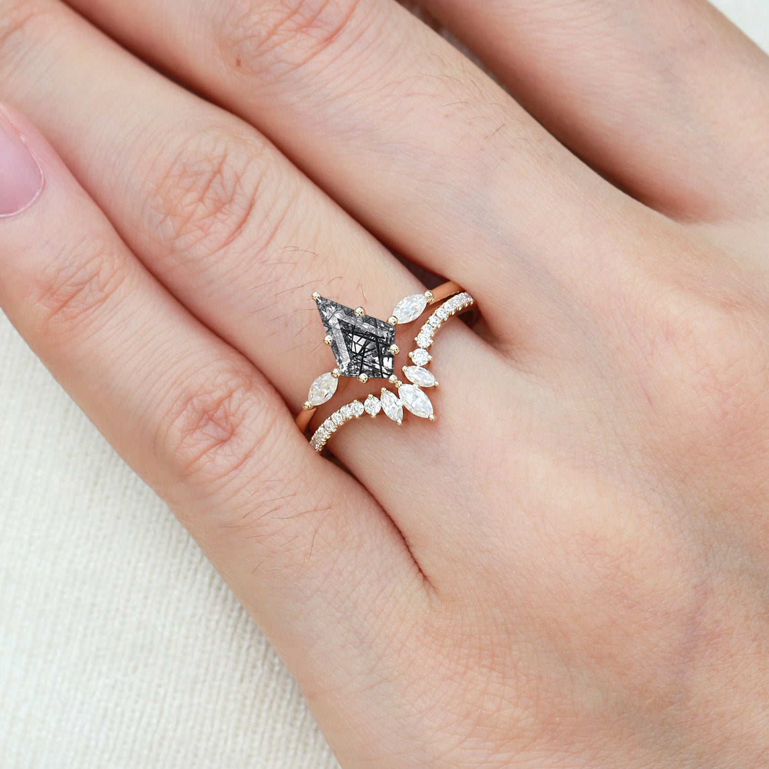 Kite Black Rutilated Quartz Engagement Ring Set 2pcs