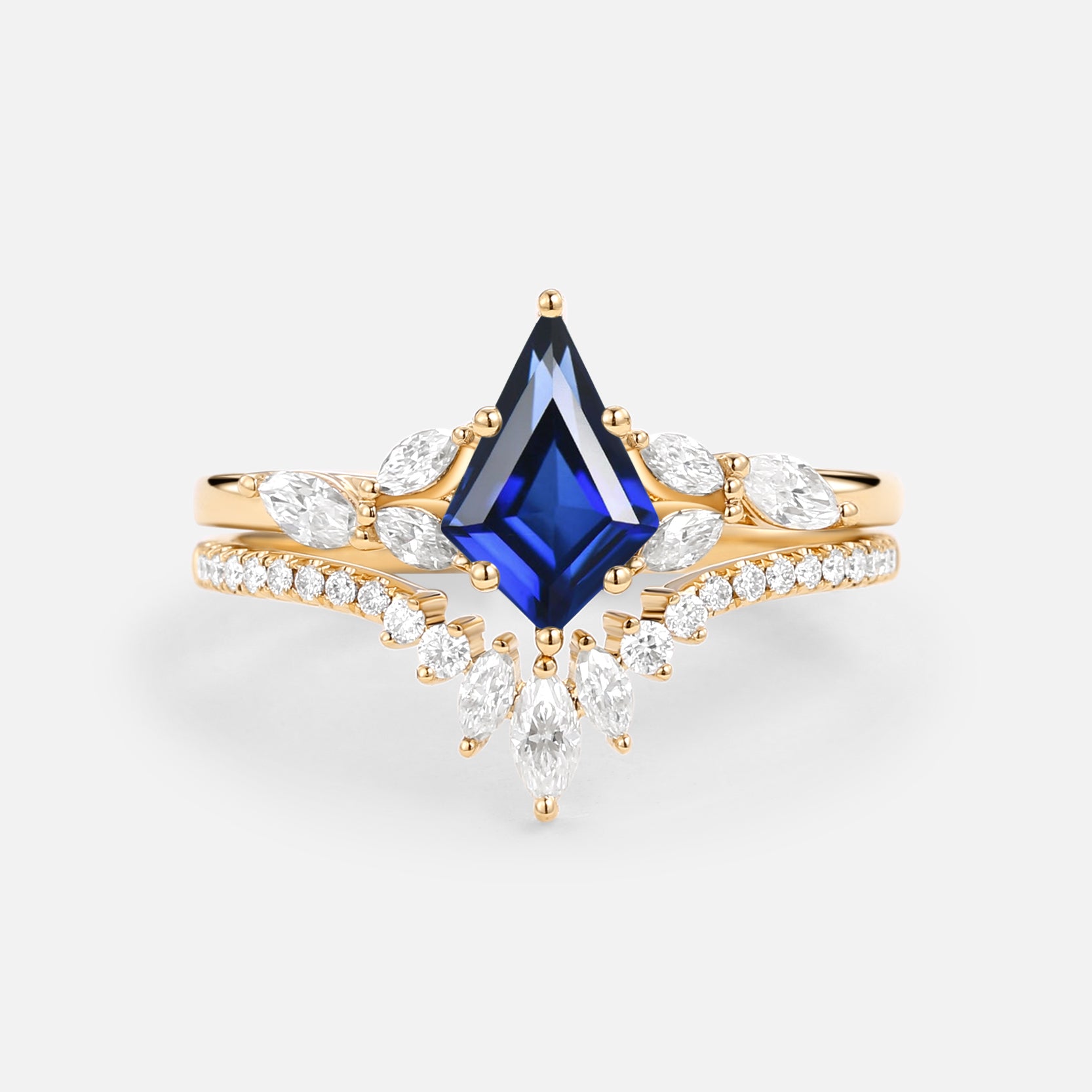 Kite Cut Lab Sapphire Engagement Ring Set 2pcs - July