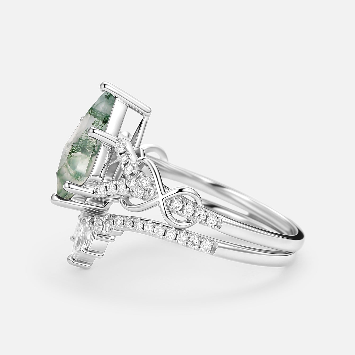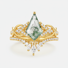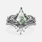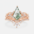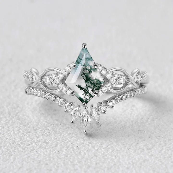 Kite Cut Moss Agate Antique Engagement Ring Set 2pcs