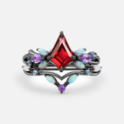 Lab Ruby & Opal & Amethyst Unique Engagement Ring Set 2pcs - Bella