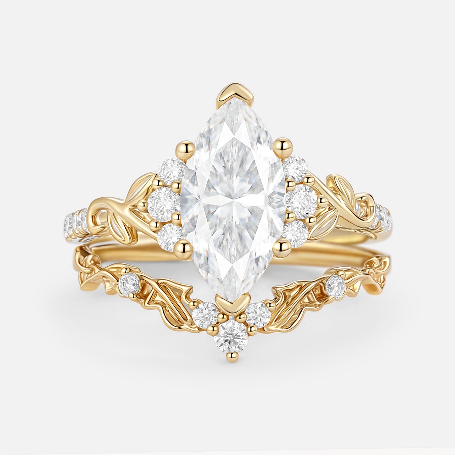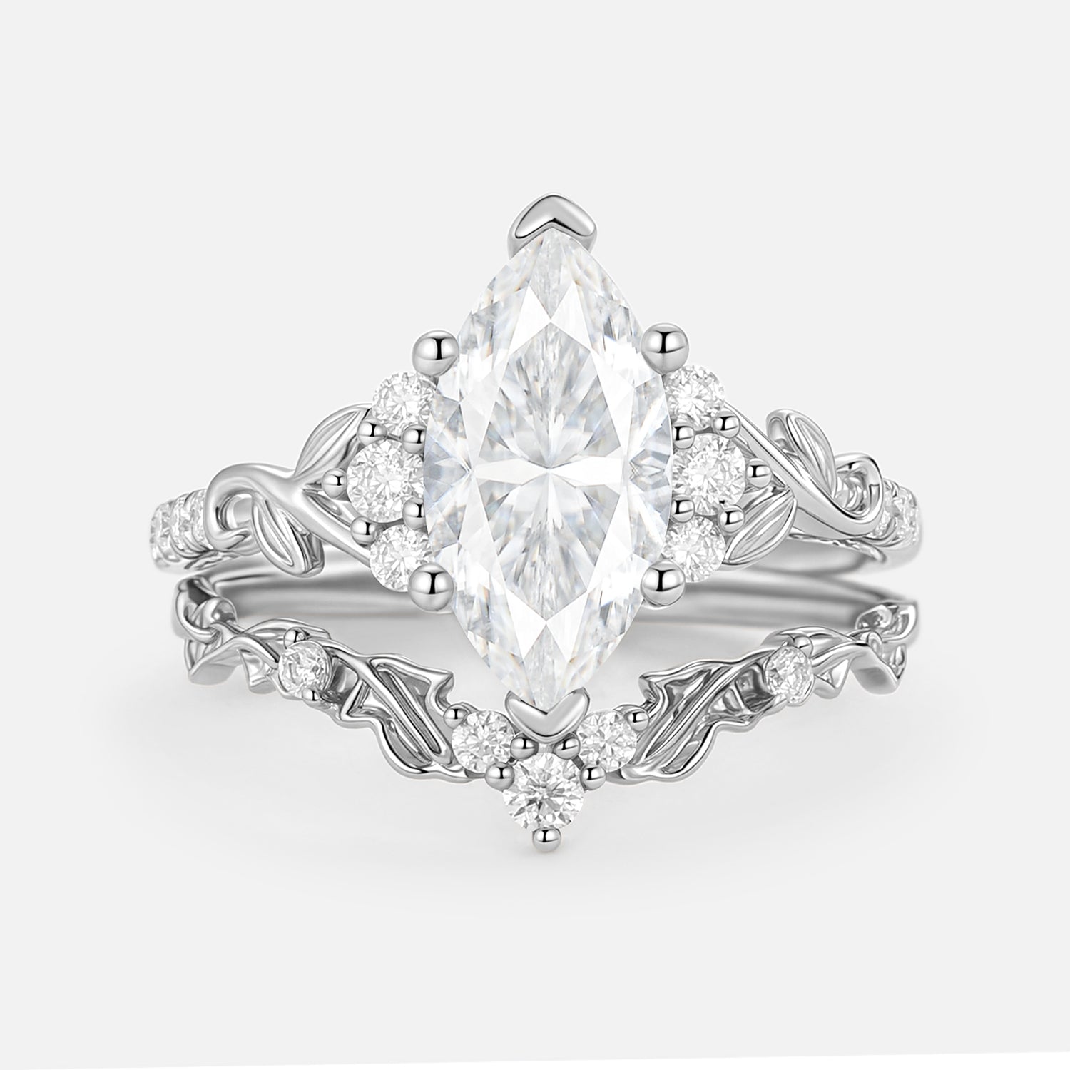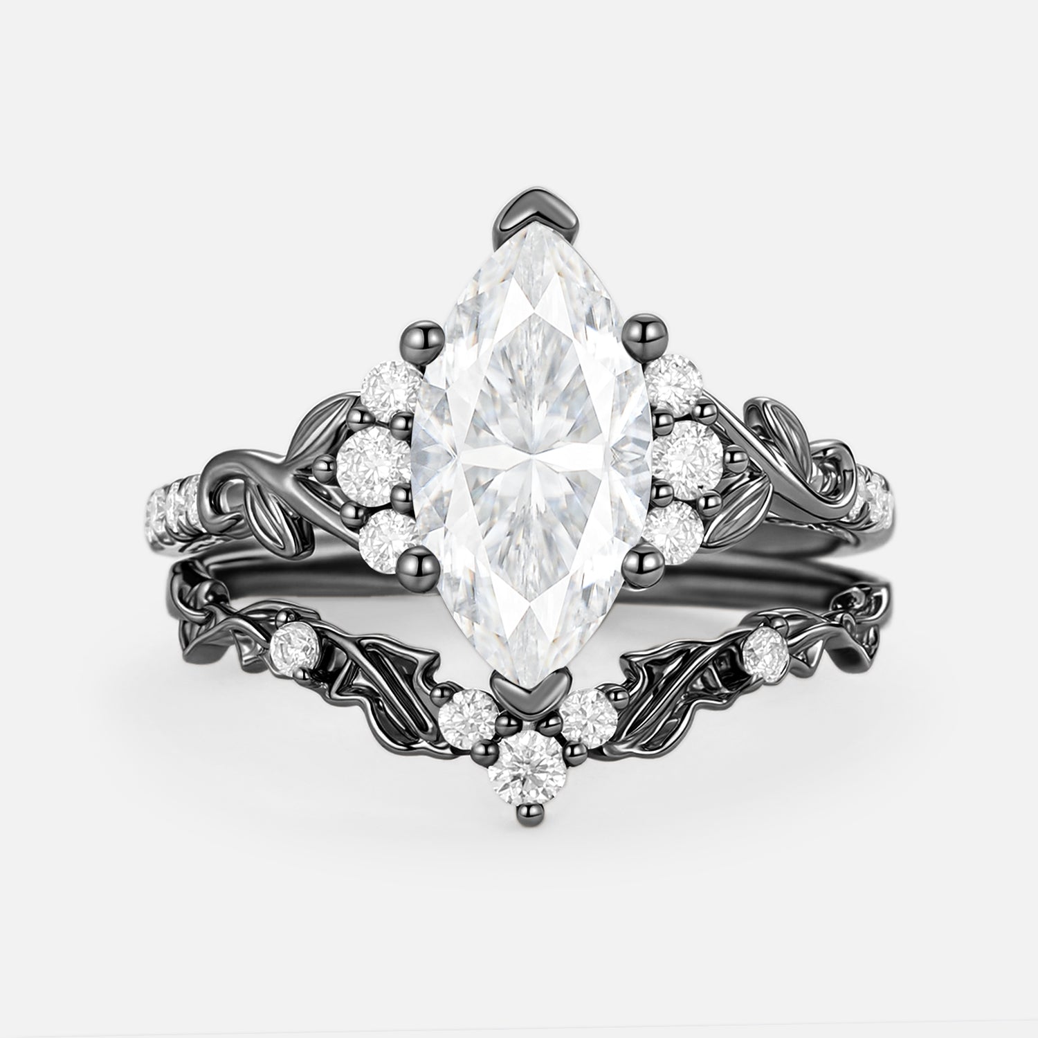 Marquise Cut Lab Emerald Leafy Engagement Ring Sets 2pcs