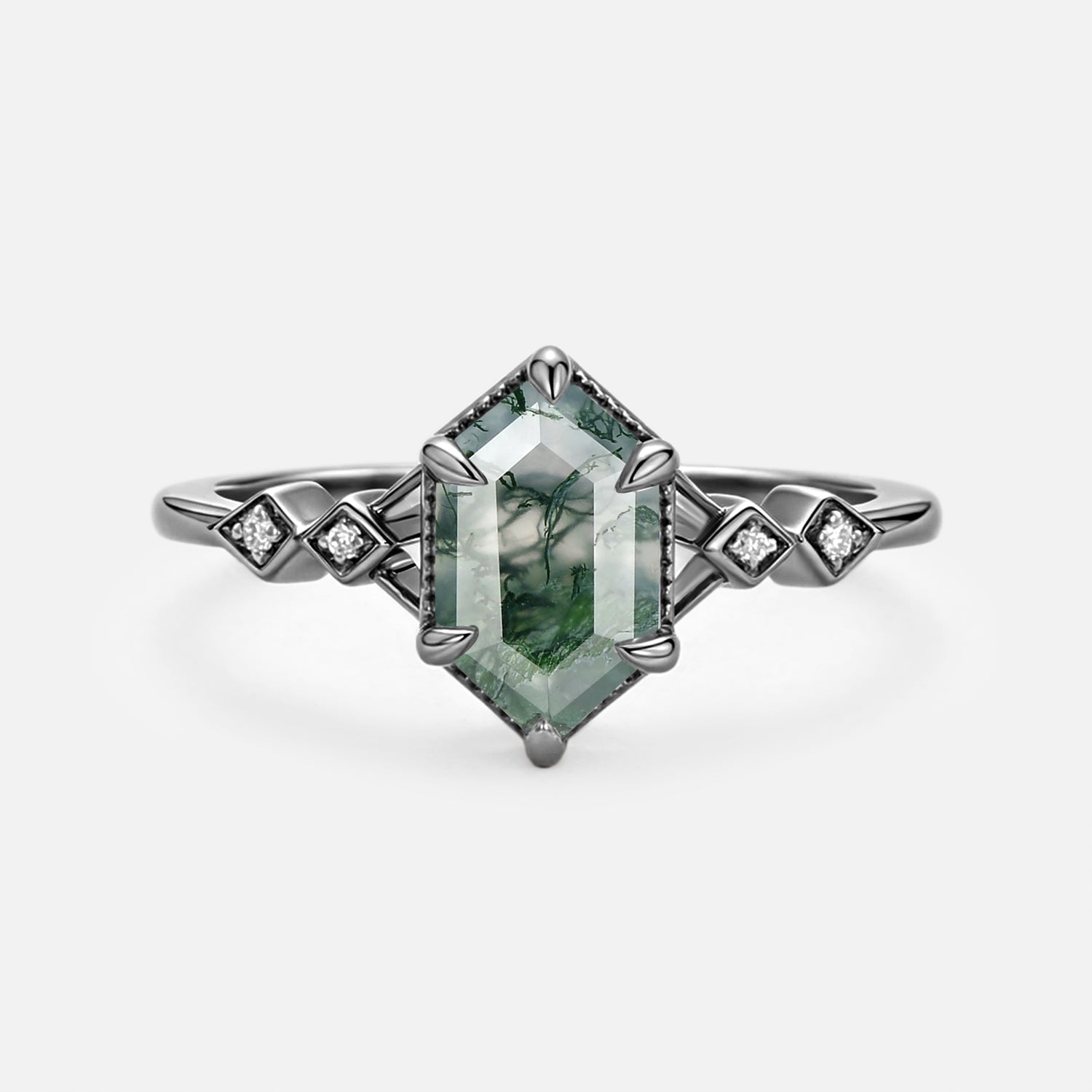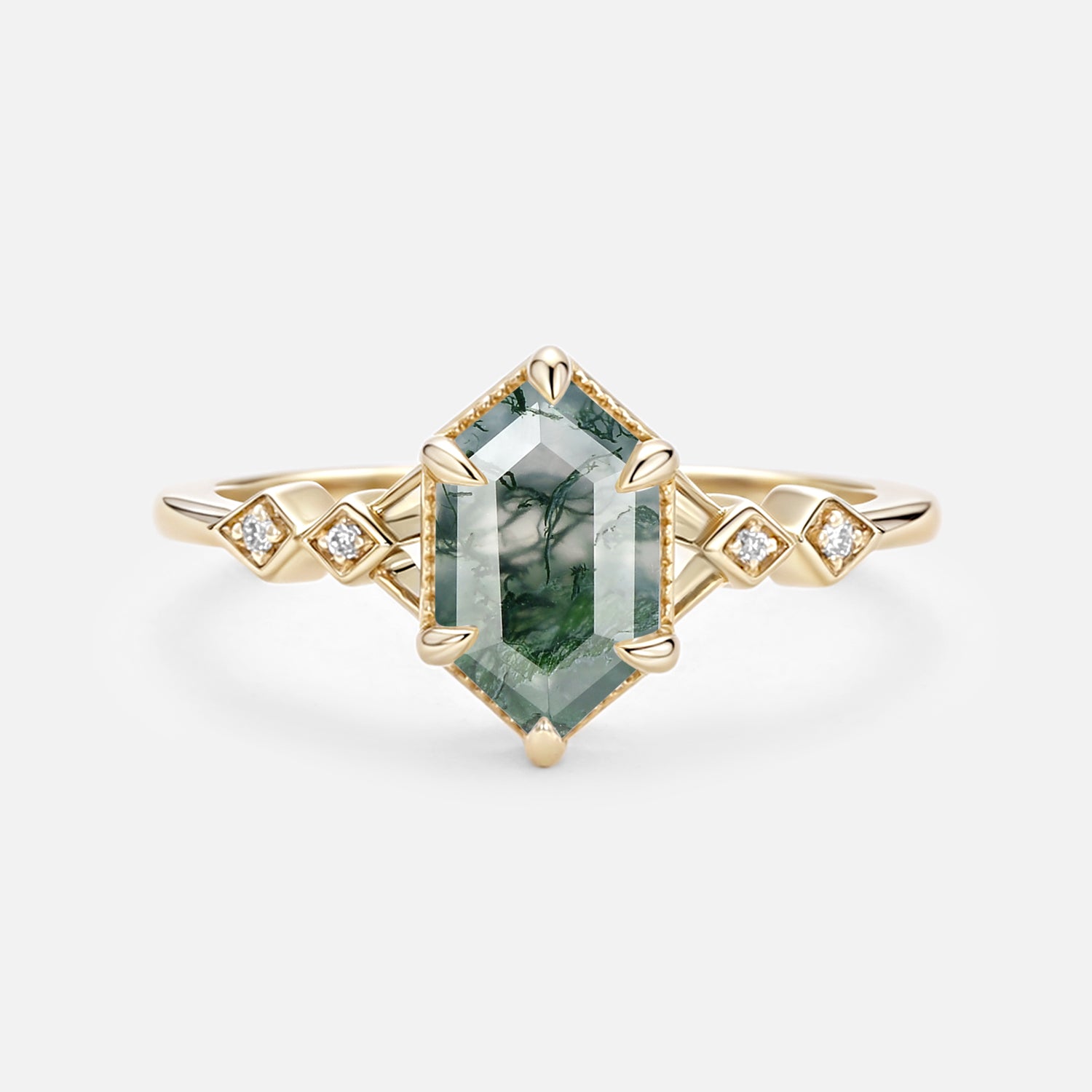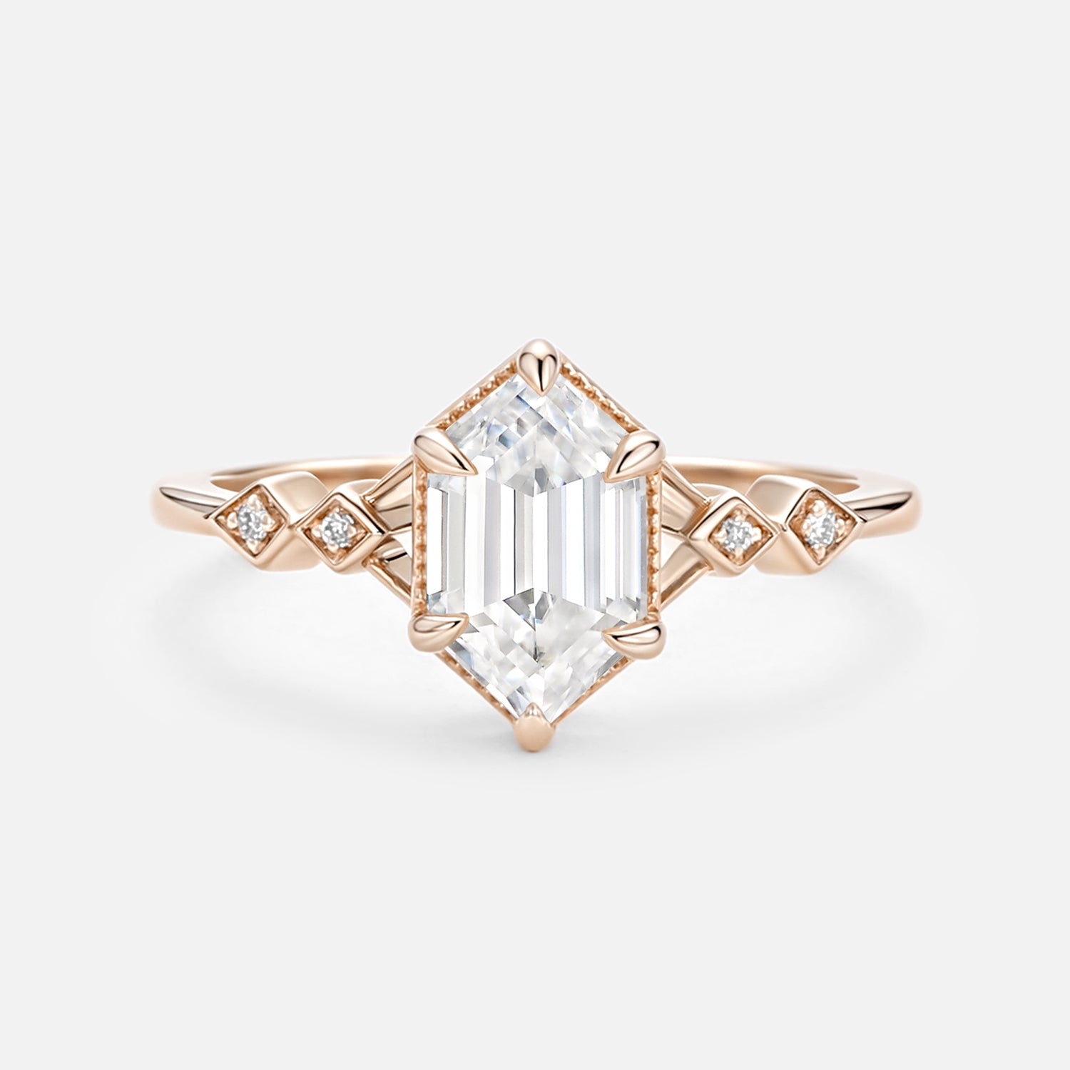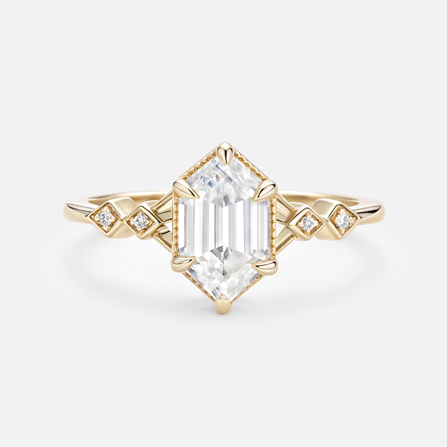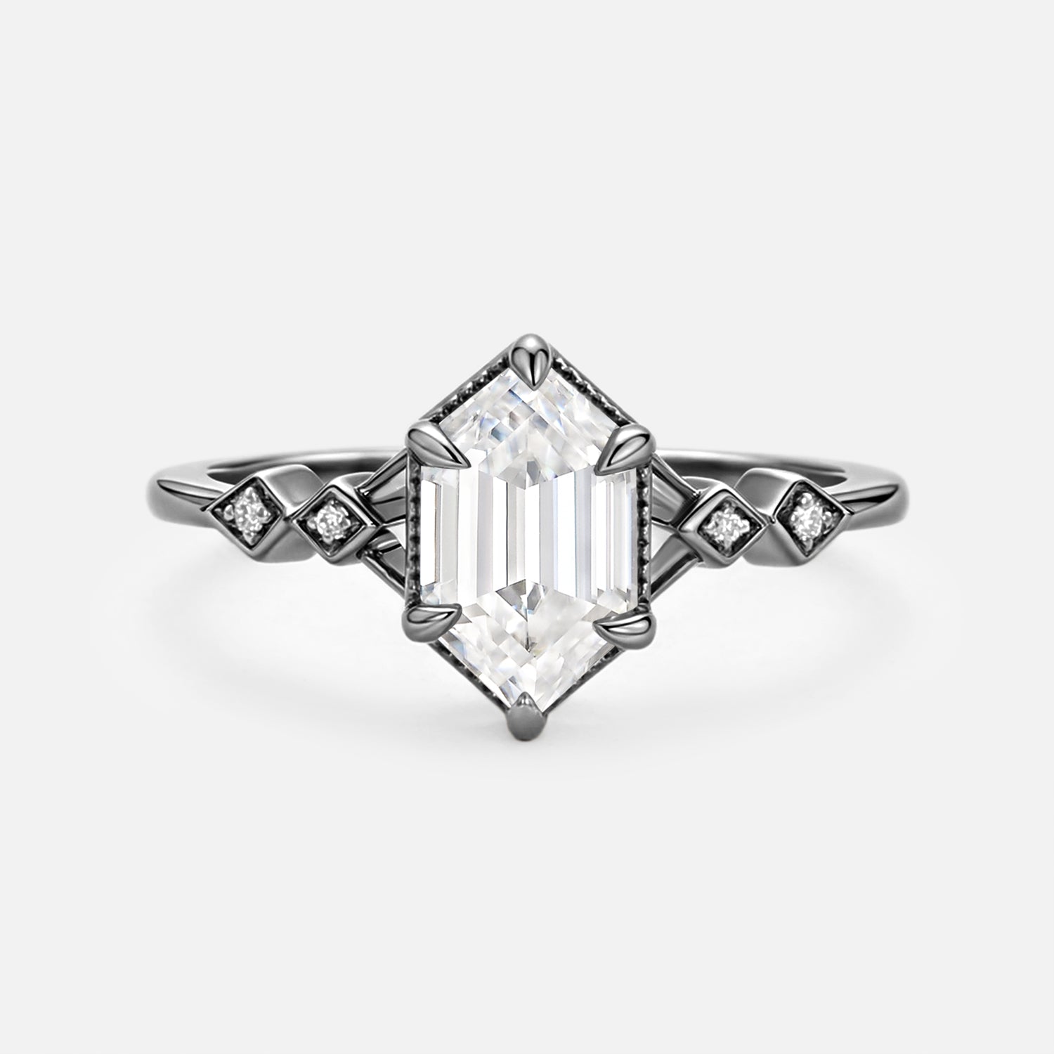 Minimalist Long Hexagon Lab Emerald Engagement Ring