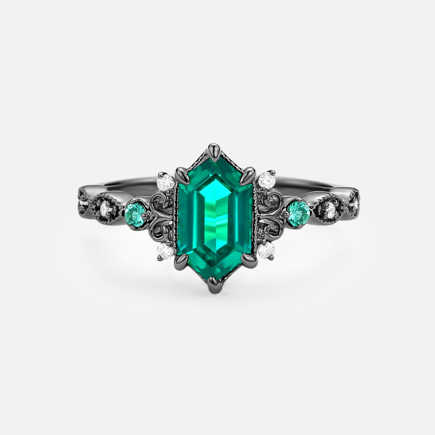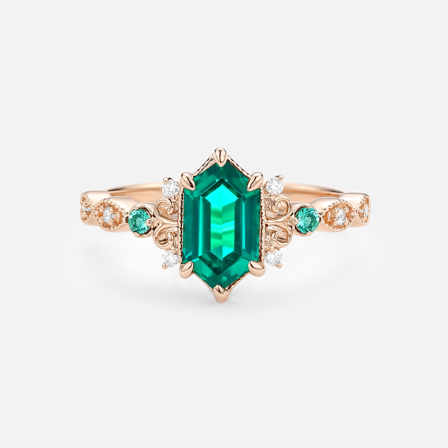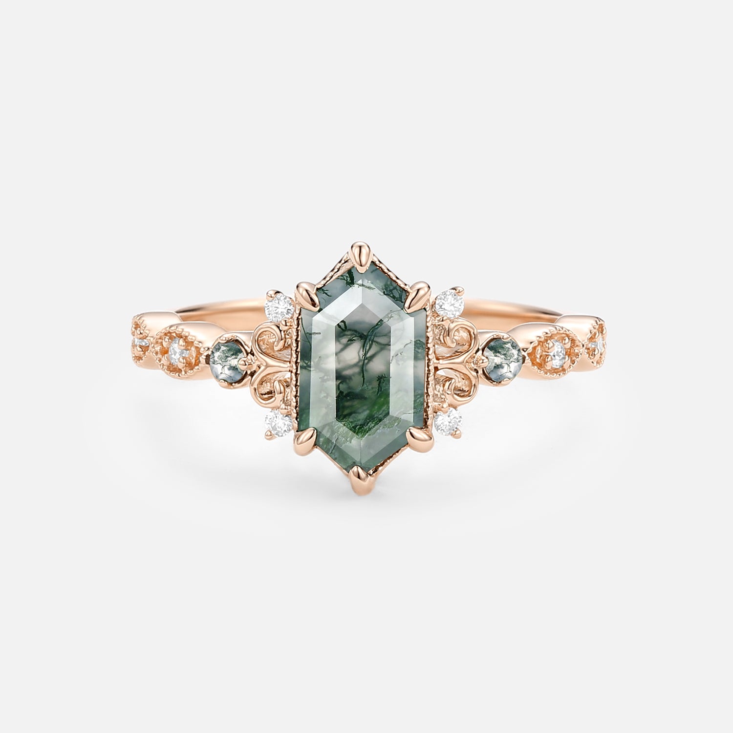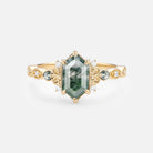 Moss Agate Elongated Hexagon Engagement Ring - Beryl