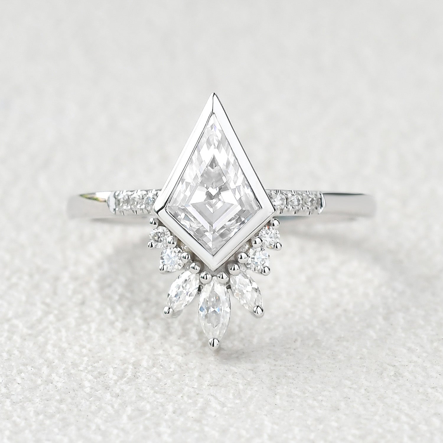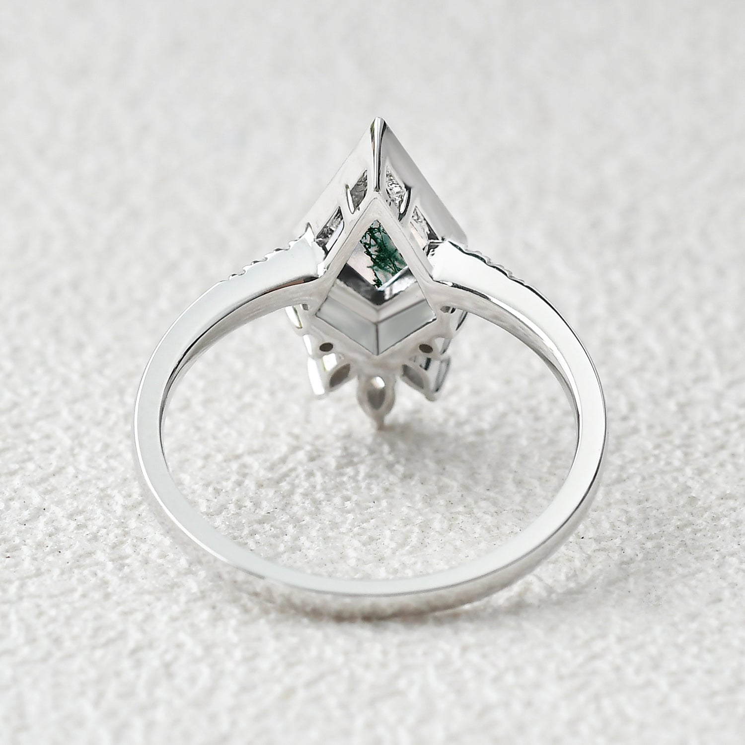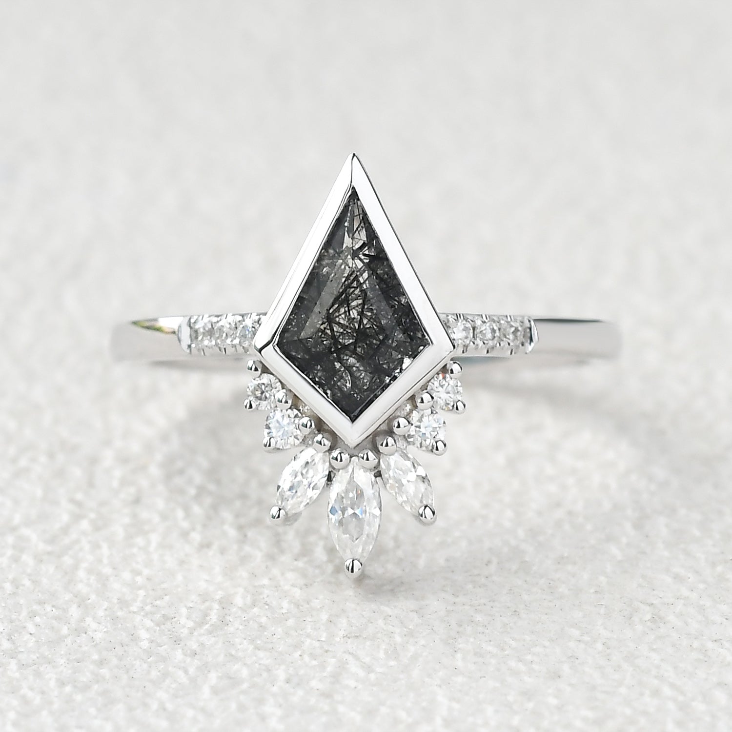 Black Rutilated Quartz Kite Cut Bezel Engagement Ring