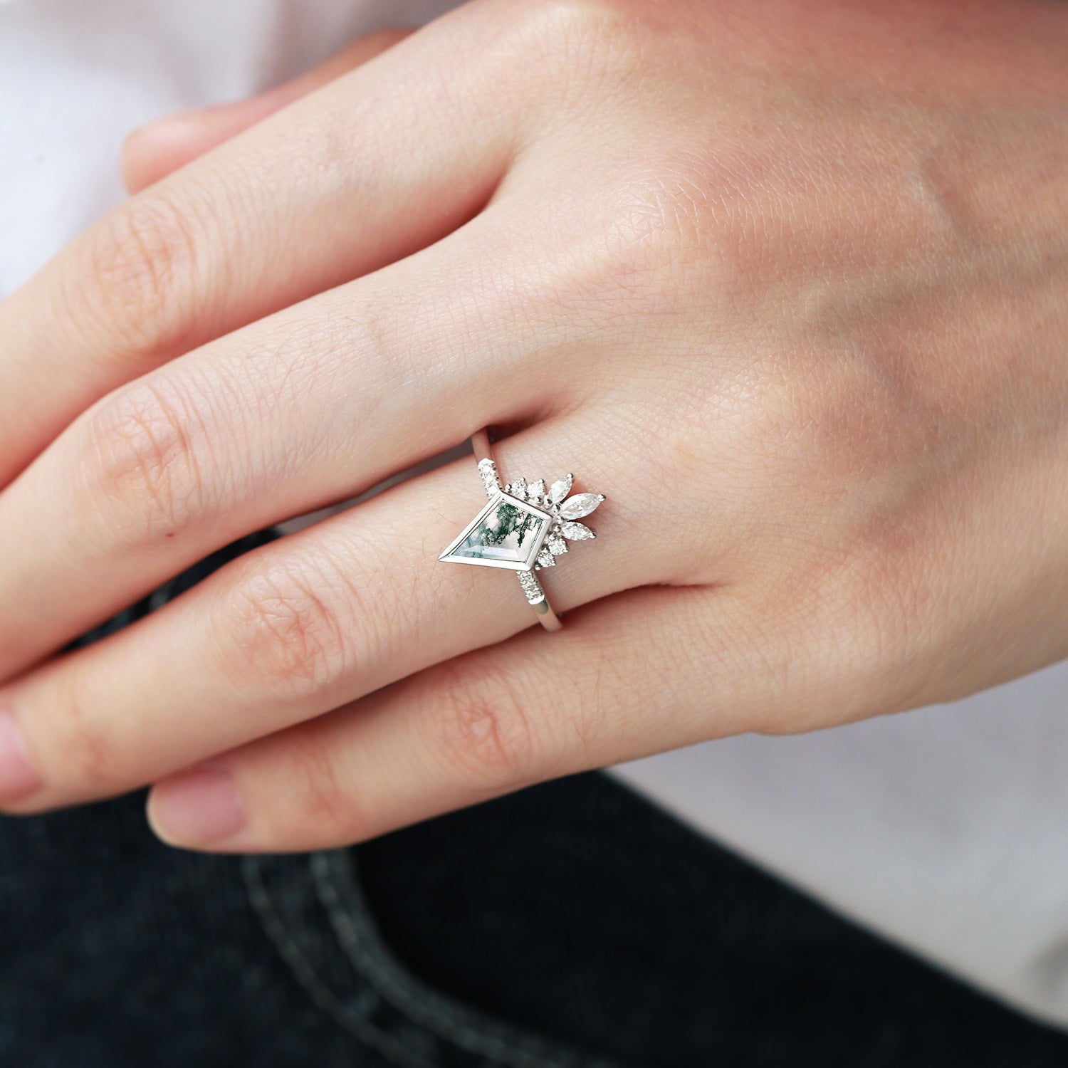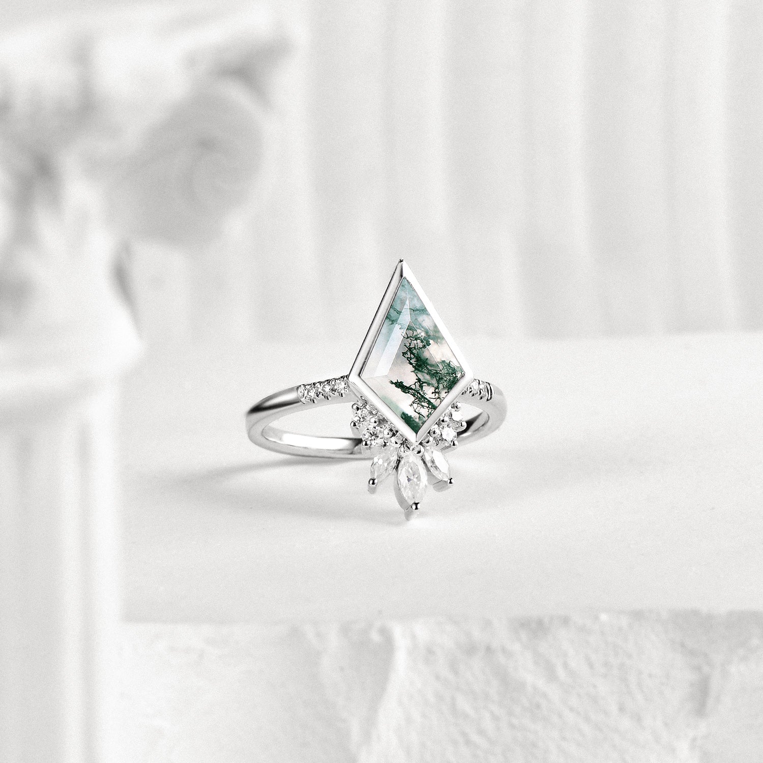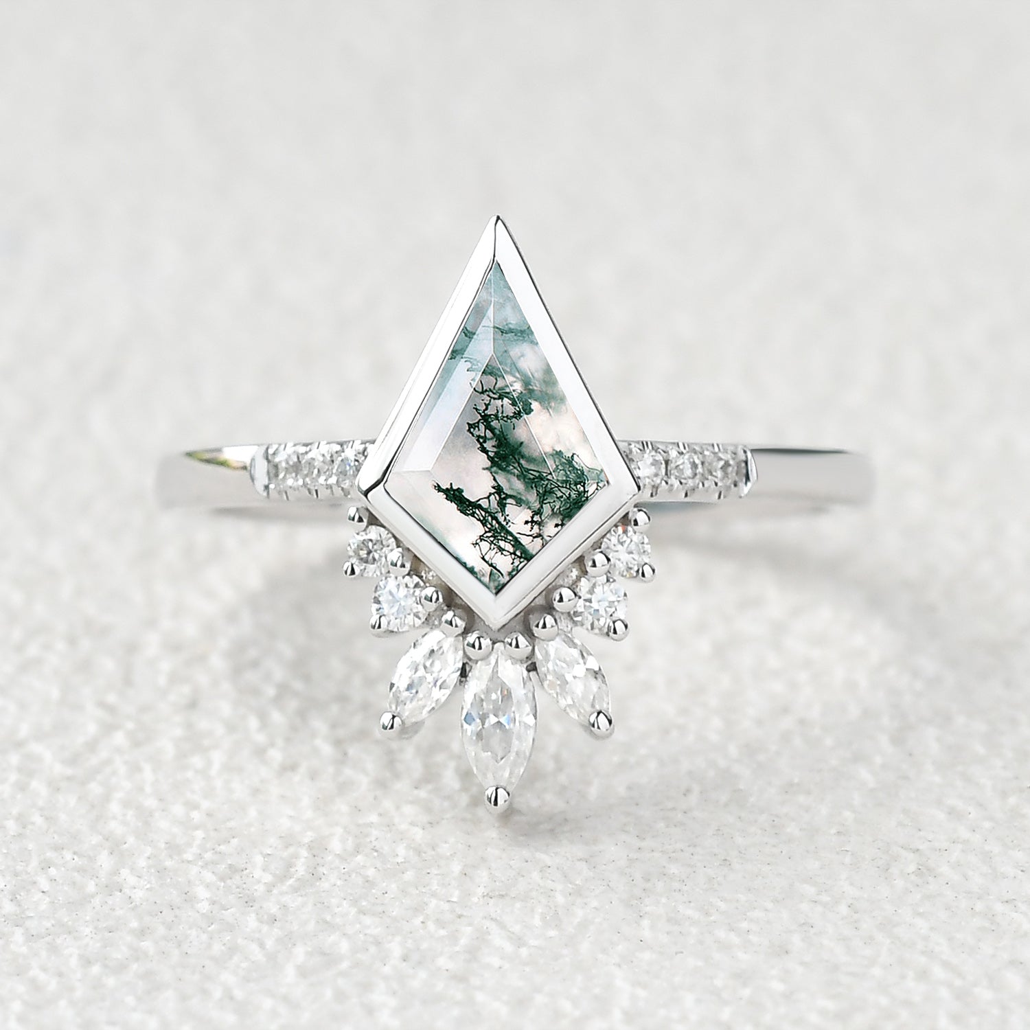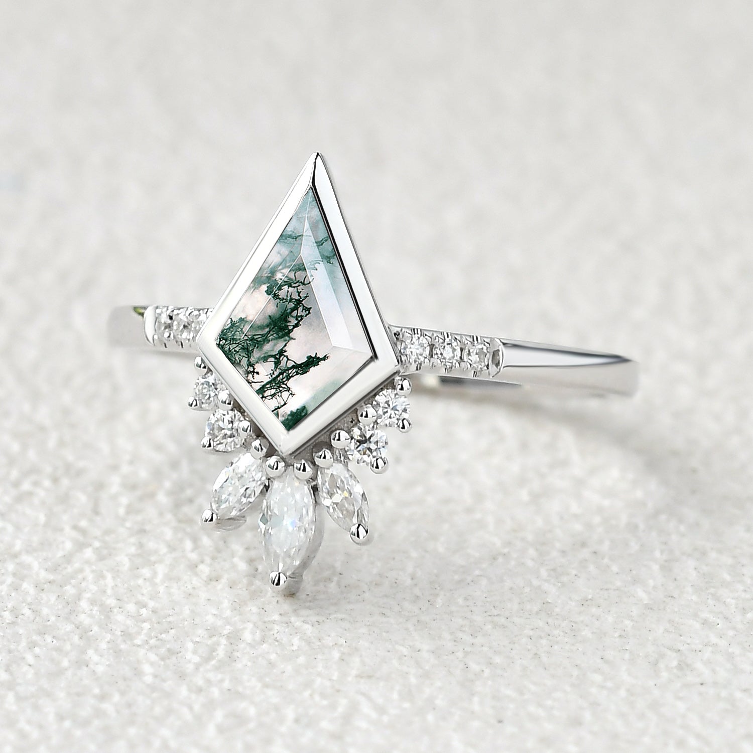 Black Rutilated Quartz Kite Cut Bezel Engagement Ring