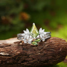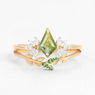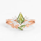 Kite cut green moss agate ring rose gold Leafy Forest Elves unique engagement ring women dainty diamond ring Personalized anniversary gift