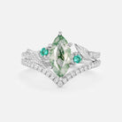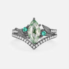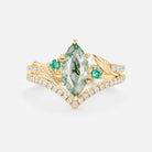 Moss Agate Marquise Leafy Vintage Engagement Ring Set - Aspen