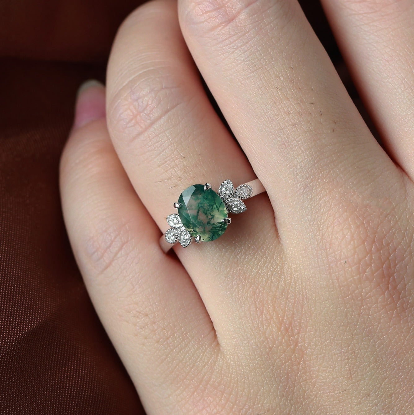 Moss Agate Oval Shaped Wedding Engagement Ring