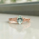 Embrace the refined, artisanal charm of the Glyphica engagement ring. The luminous soft green oval sapphire at its core, shaped into a sleek oval cut with brilliant light-catching facets, casts a gentle, timeless glow with every subtle movement. It’s delicately secured by streamlined prongs, while the band features exquisitely engraved patterns—each line a thoughtful detail that adds quiet, distinctive character to the design. This intricate craftsmanship lets the ring exude understated, elegant beauty from every angle.