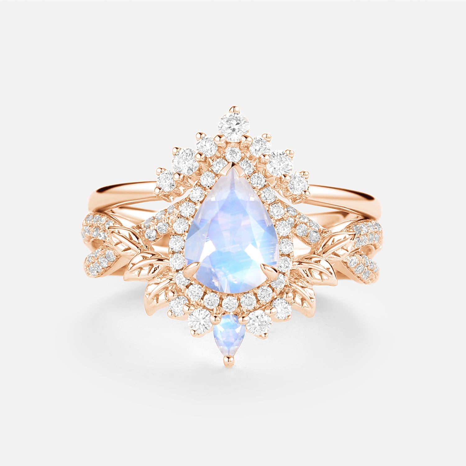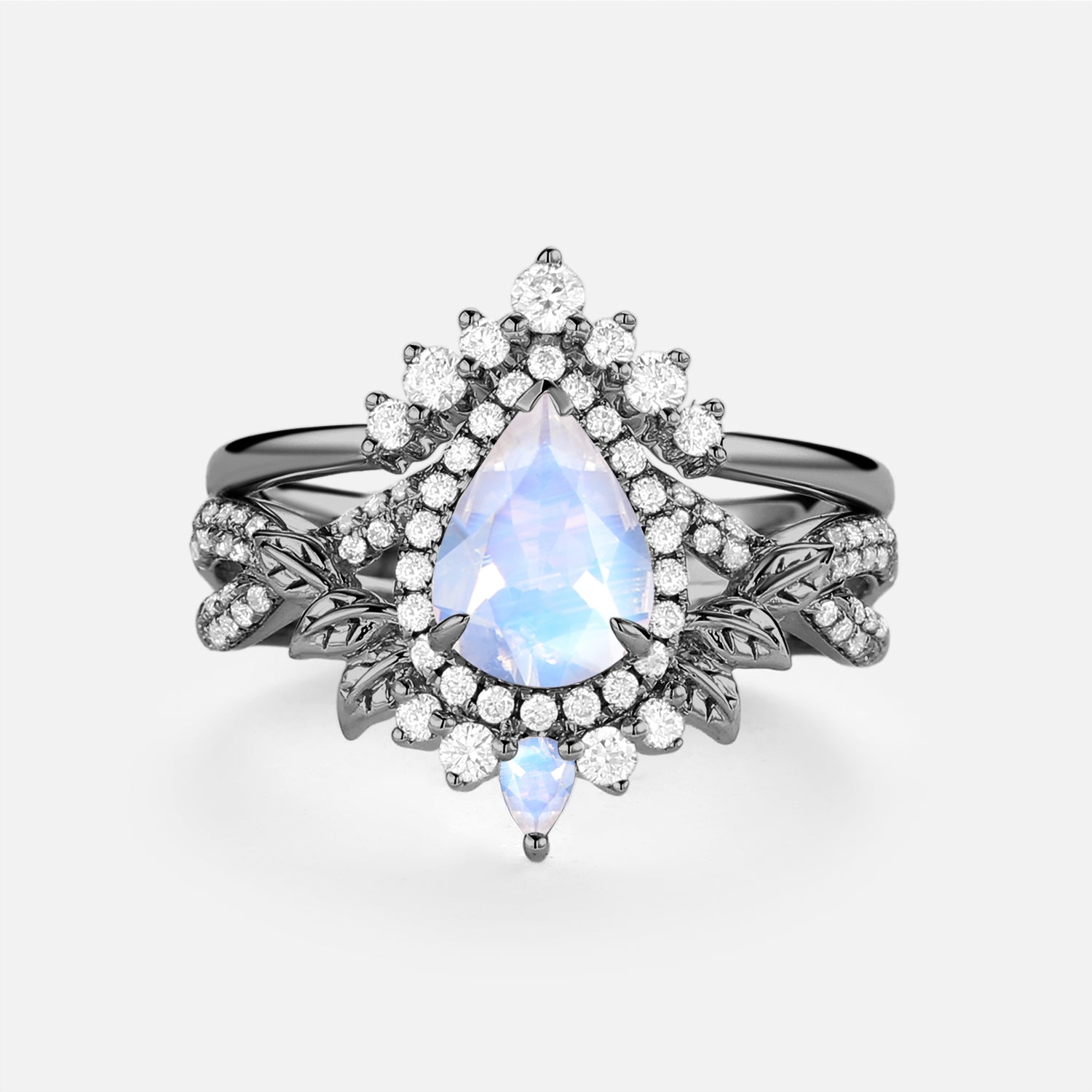 Pear Cut Moonstone Halo Infinity Ring Set 2pcs - Celia