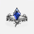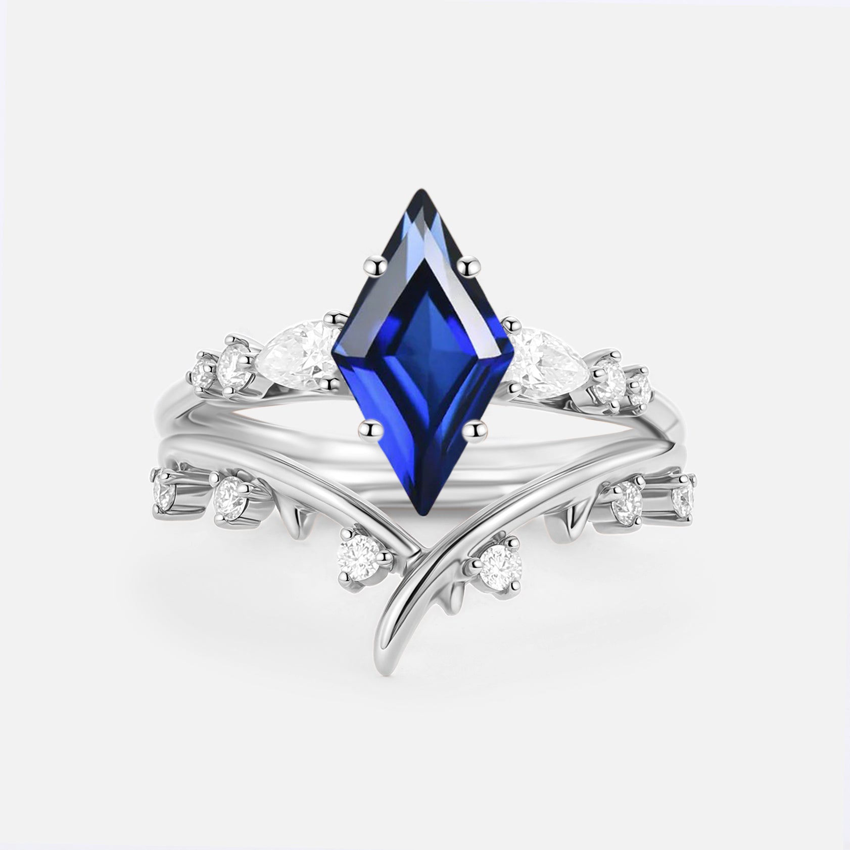 Rhombus Cut Lab Sapphire Classic Engagement Ring Set 2pcs - Ethel