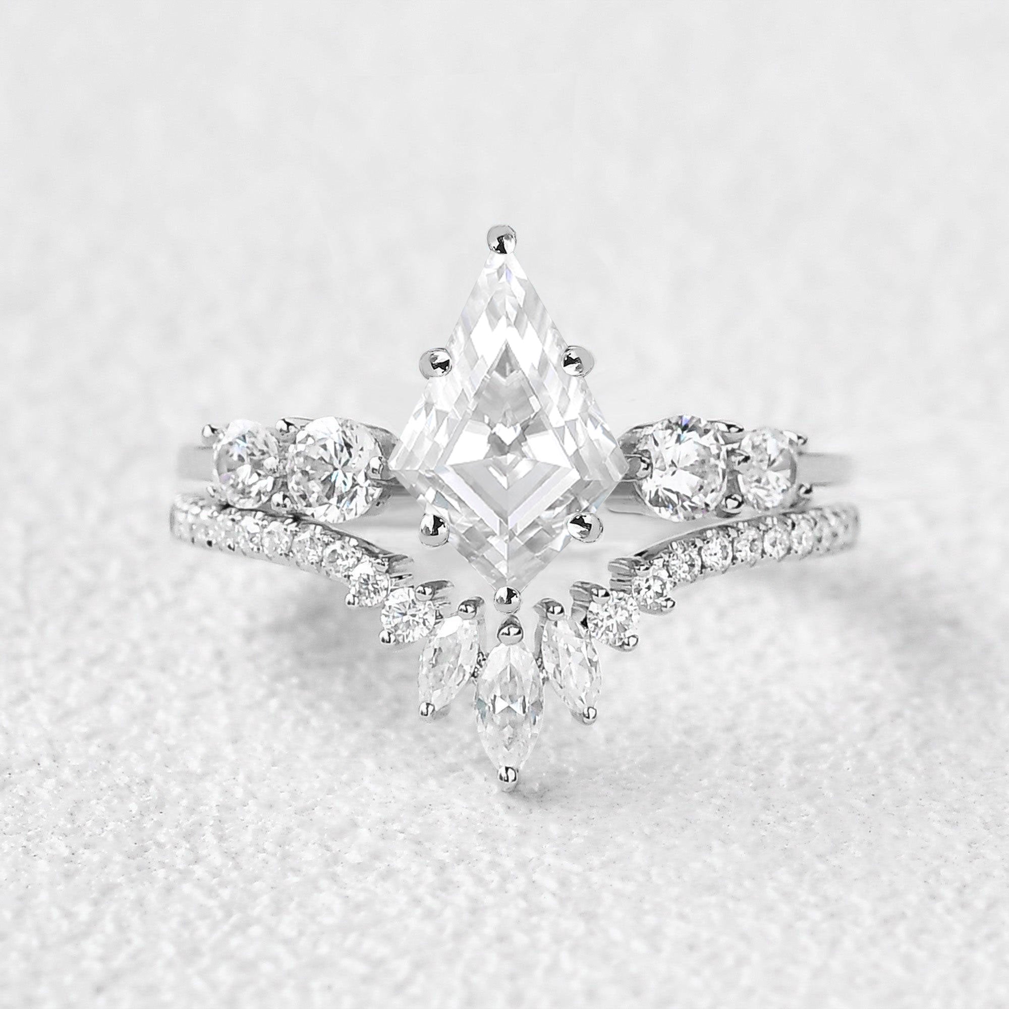 Round Staccato Kite Cut Moss Agate Engagement Ring Set 2pcs