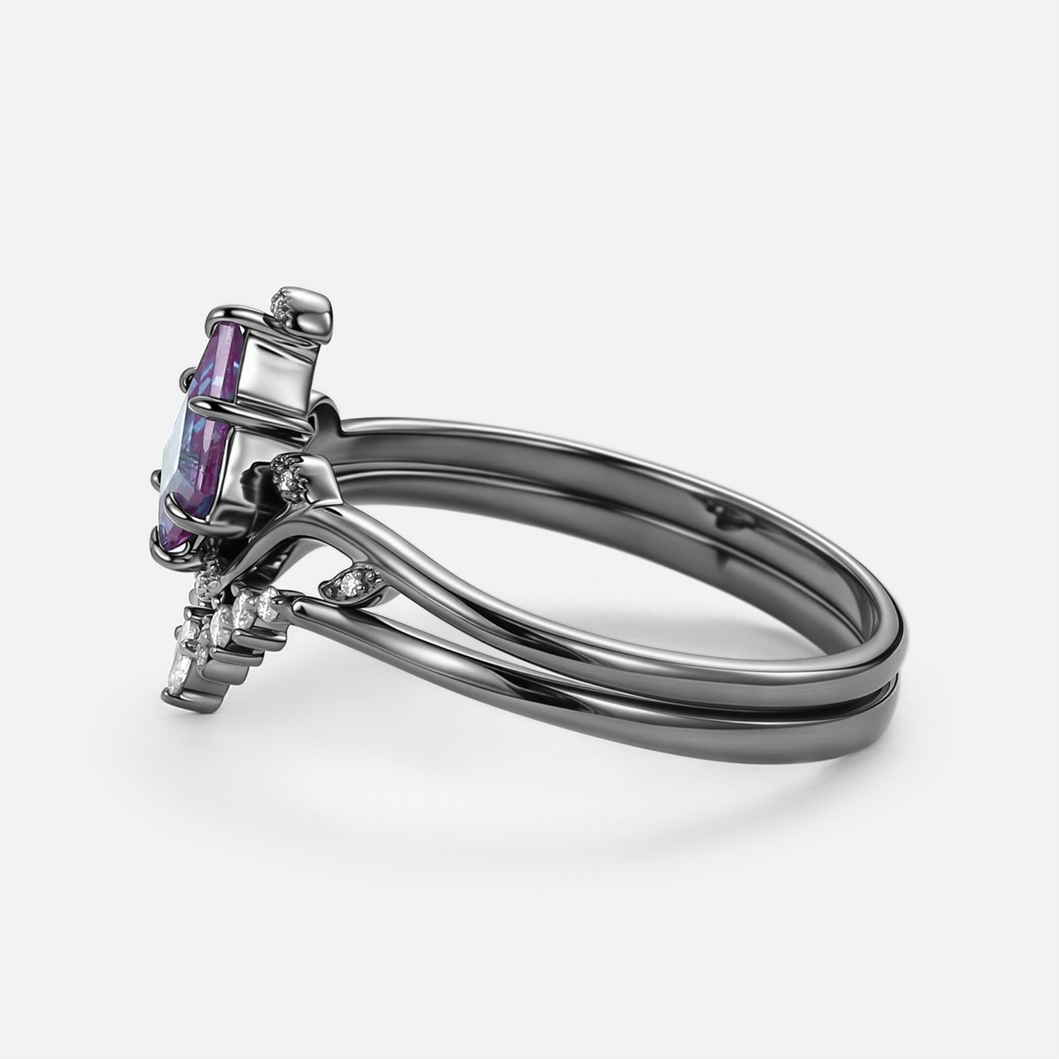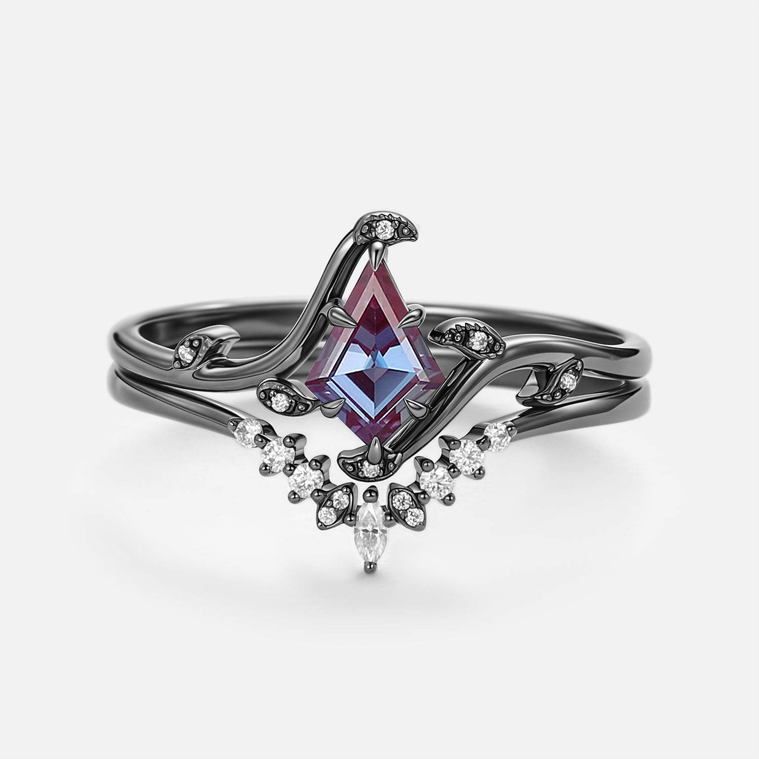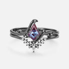 Unique Kite Cut Alexandrite Leafy Engagement Ring Sets 2pcs - Ivy