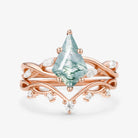 Unique Kite Cut Moss Agate Infinity Engagement Ring Sets 2pcs