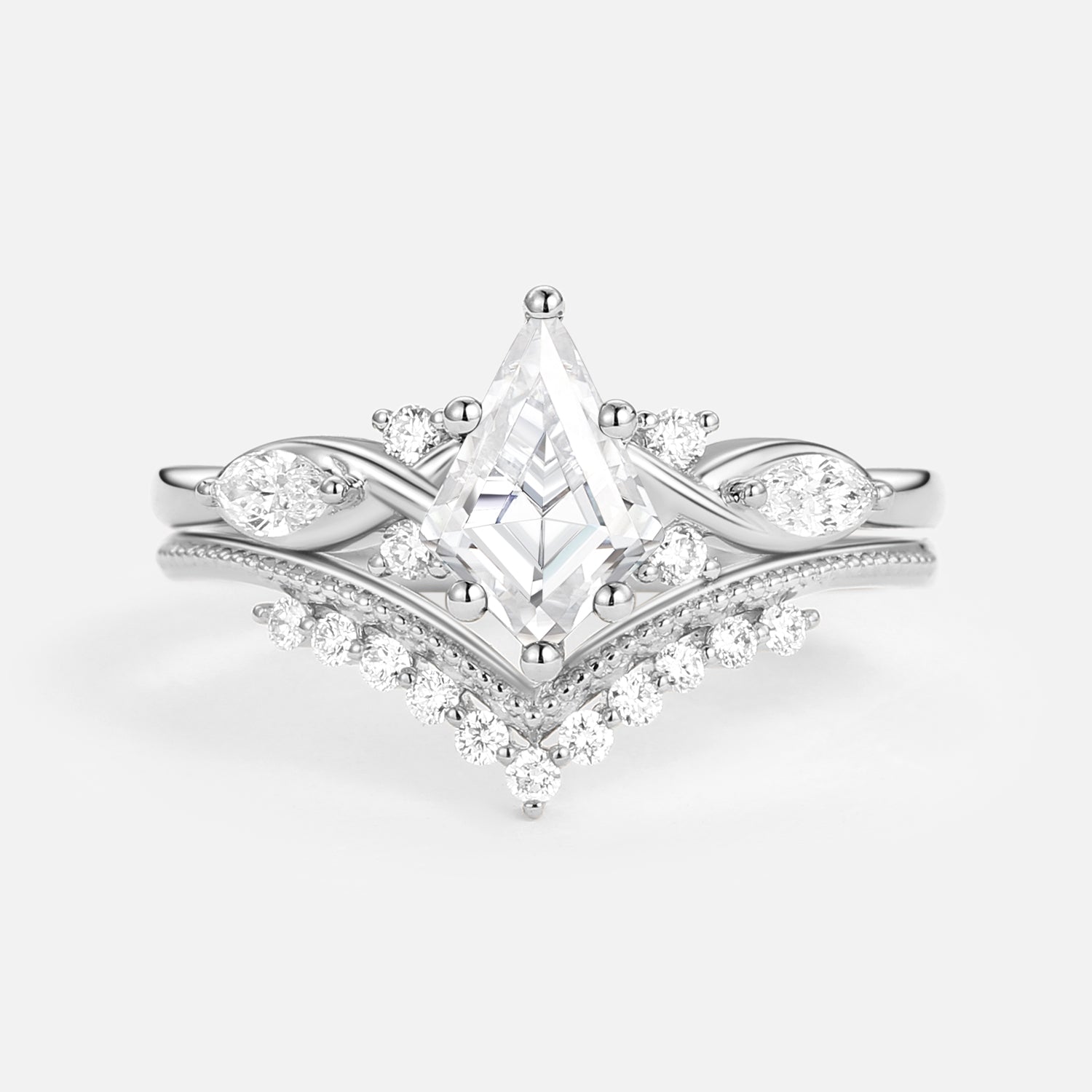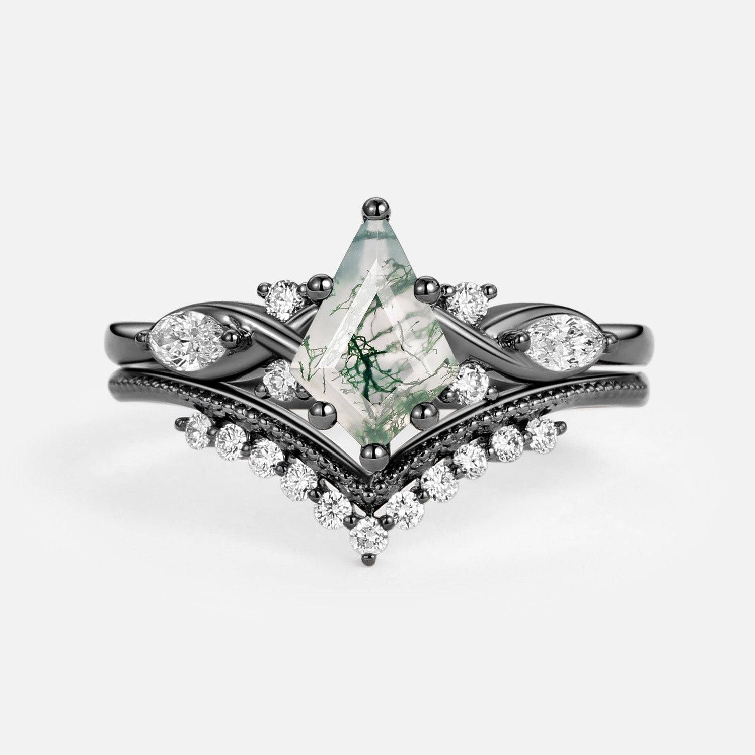Unique Kite Moss Agate Infinity Engagement Ring Sets 2pcs