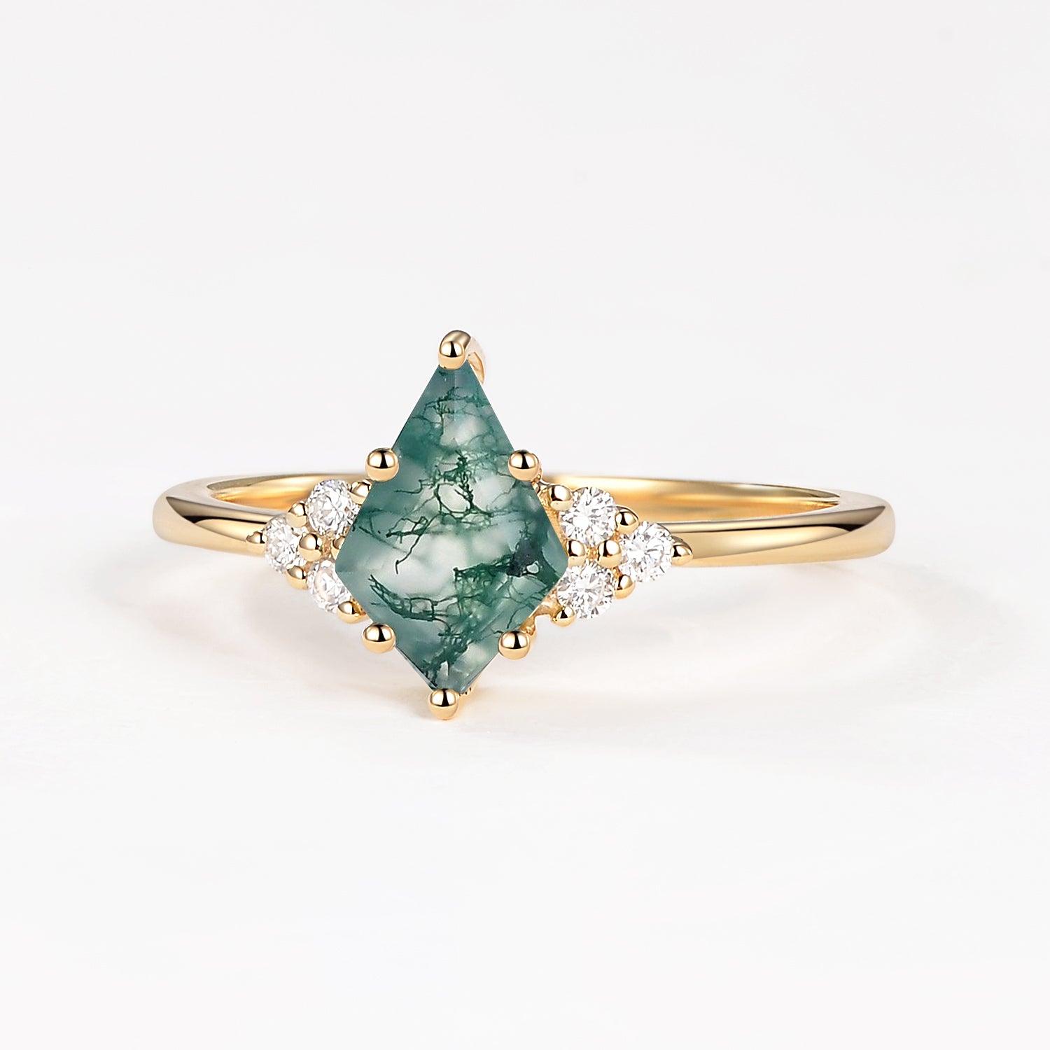 My fiancé proposed with this stunning ring on a romantic WV getaway in the mountains and it is absolutely GORGEOUS. Photos do not do it justice. The clarity of the moss agate stone is perfect and I love the accent of the stone that he customized and added to the wedding band! I love this ring so much! Thank you for creating such unique pieces for girls like me that prefer the non- traditional route!