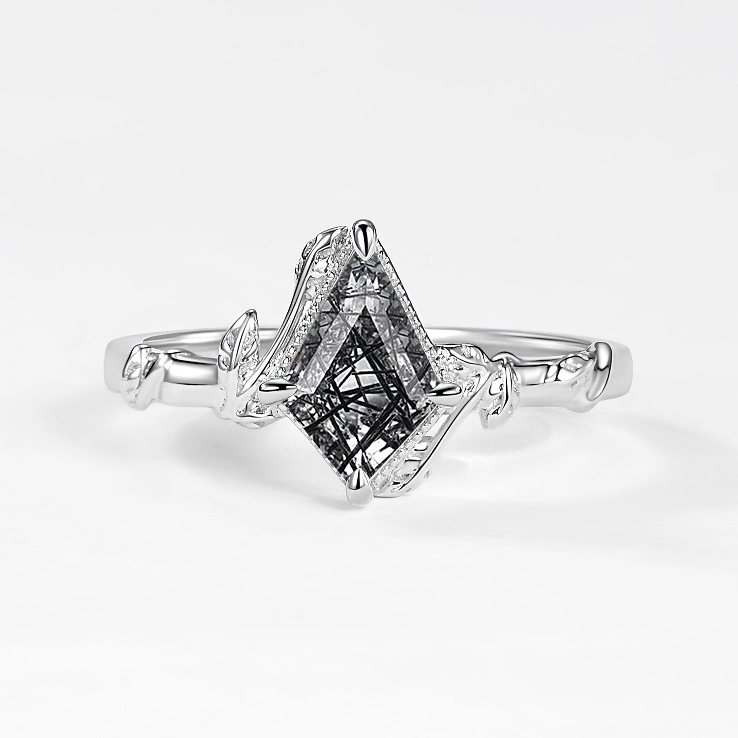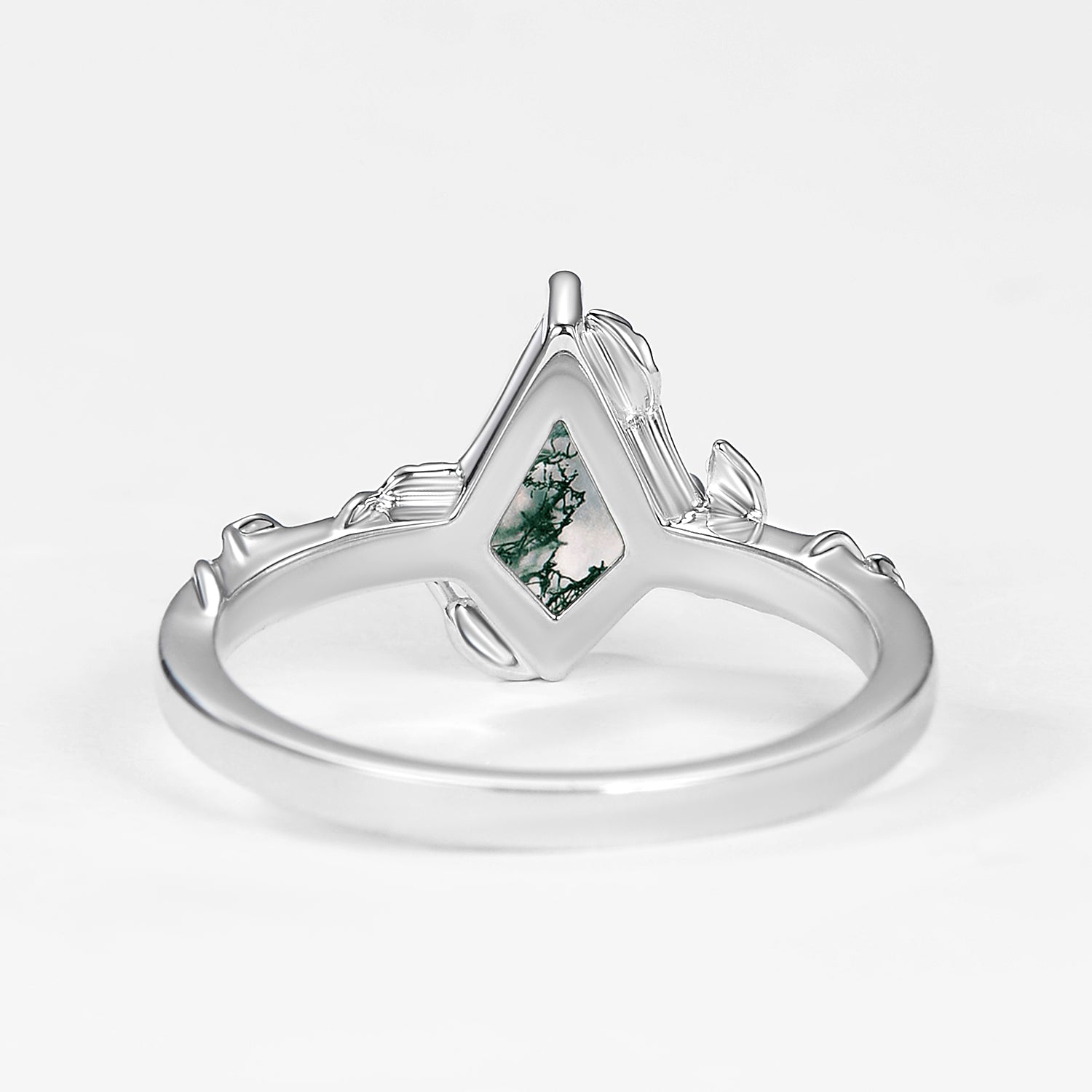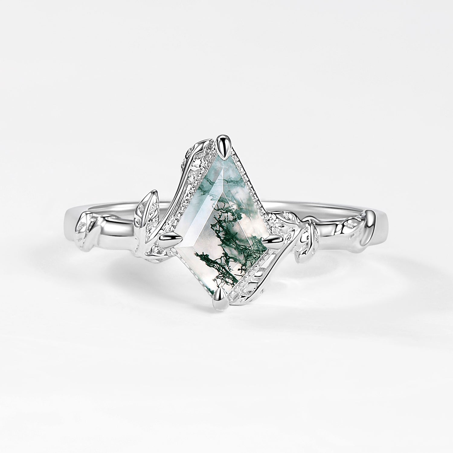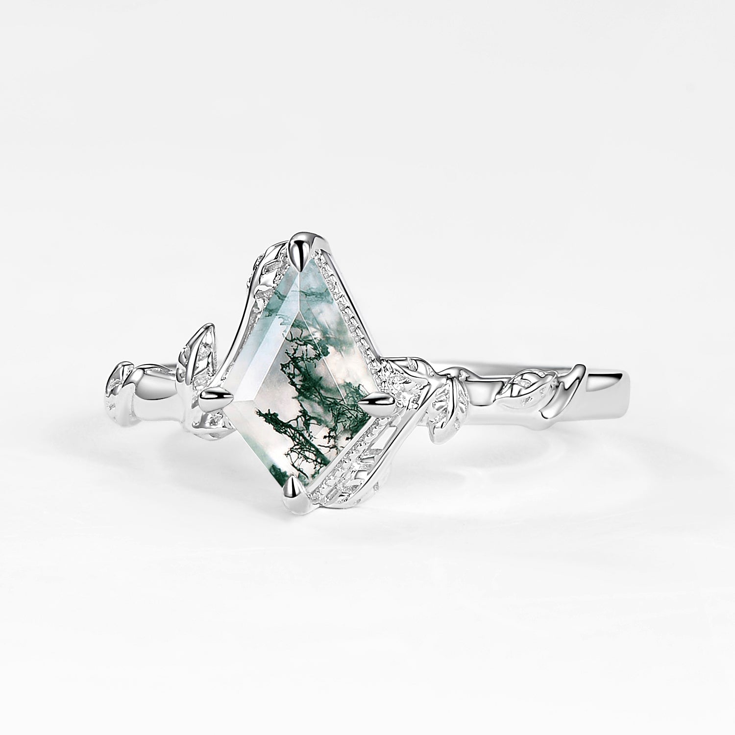 Vine Leafy Kite Cut Moss Agate Engagement Ring