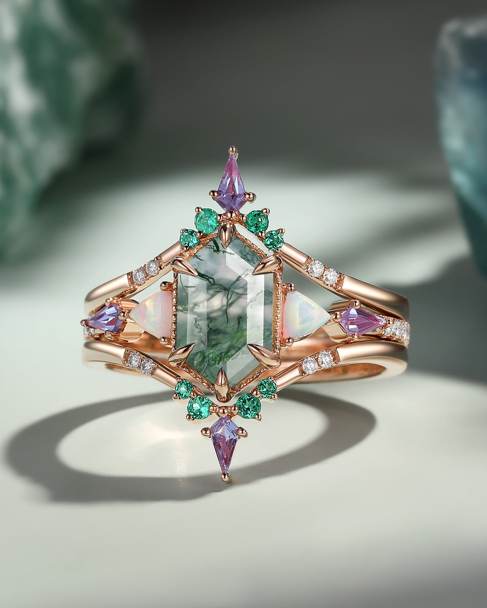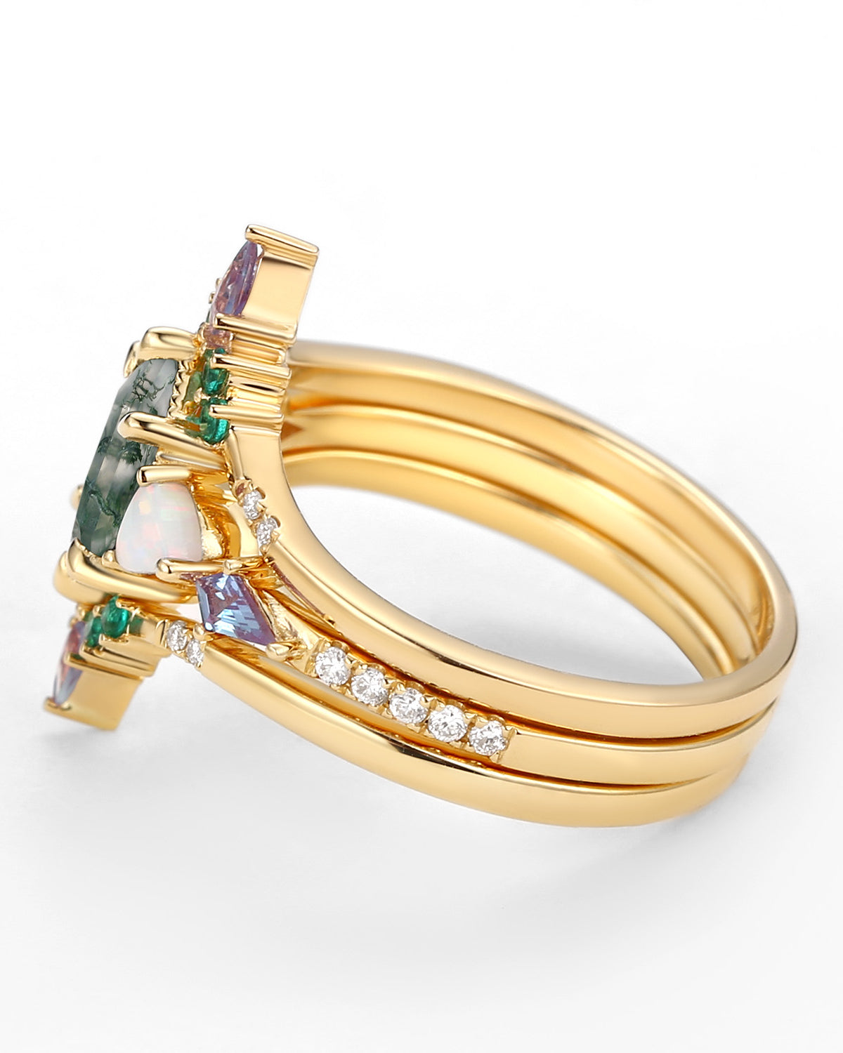 We've carefully selected a range of high-quality gemstones, including but not limited to traditional colored gemstones such as Ruby, Sapphires, and Emerald. We also have unique textured gemstones in various colors, including moss agate, black rutilated quartz, and opal. Each gemstone is strictly screened to ensure its quality and color meet the highest standards.