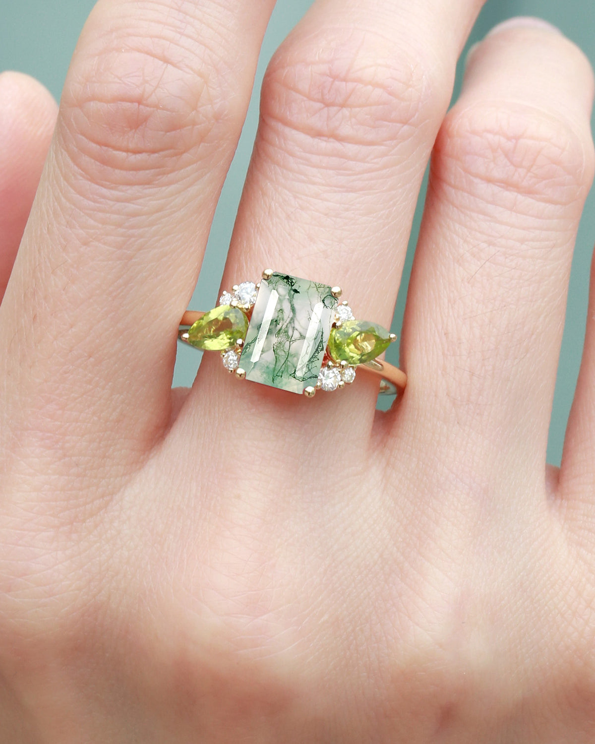 We've carefully selected a range of high-quality gemstones, including but not limited to traditional colored gemstones such as Ruby, Sapphires, and Emerald. We also have unique textured gemstones in various colors, including moss agate, black rutilated quartz, and opal. Each gemstone is strictly screened to ensure its quality and color meet the highest standards.