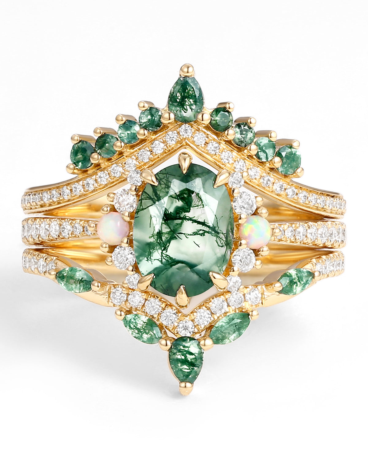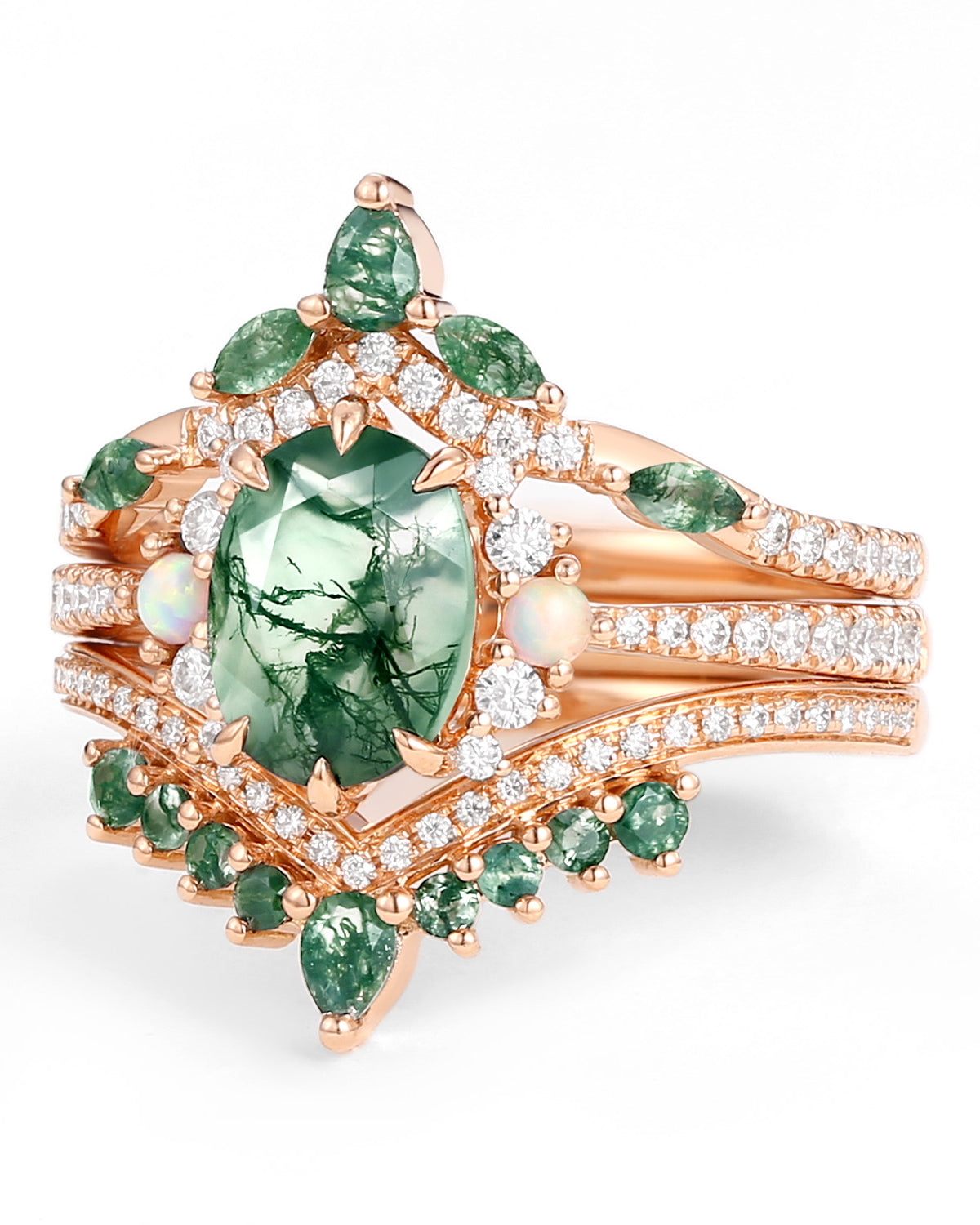 We've carefully selected a range of high-quality gemstones, including but not limited to traditional colored gemstones such as Ruby, Sapphires, and Emerald. We also have unique textured gemstones in various colors, including moss agate, black rutilated quartz, and opal. Each gemstone is strictly screened to ensure its quality and color meet the highest standards.