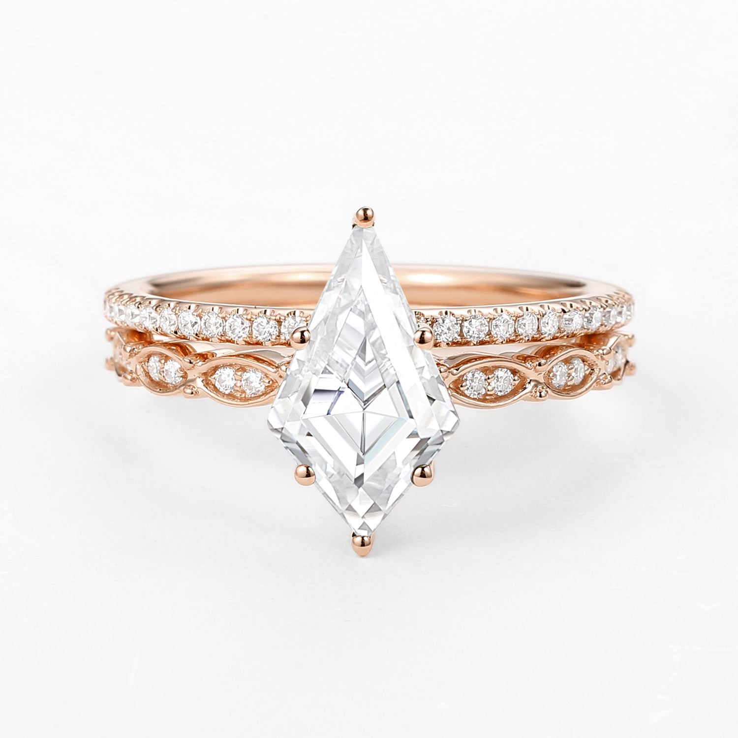 Kite Cut Moissanite Engagement Ring with Straight Band Set 2pcs