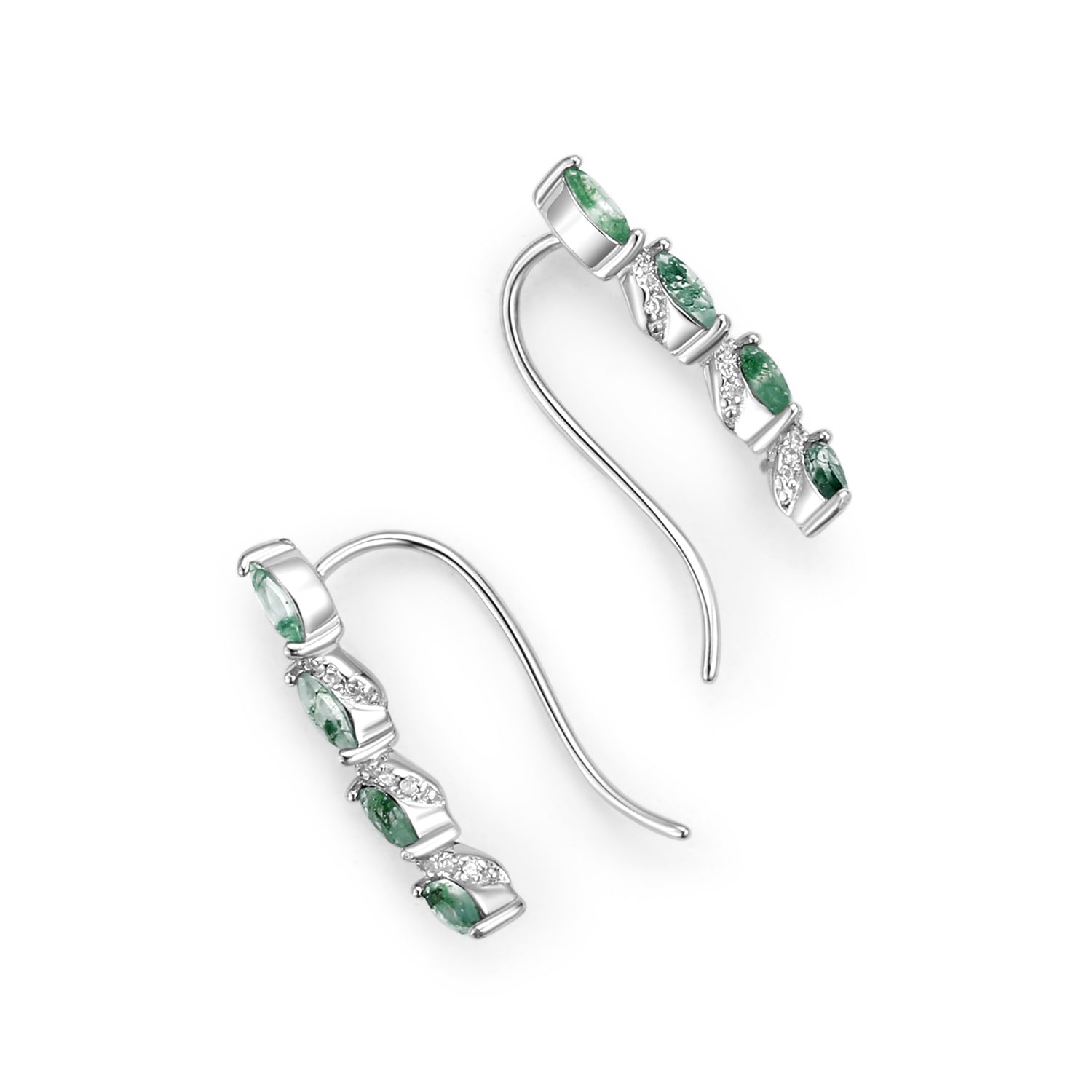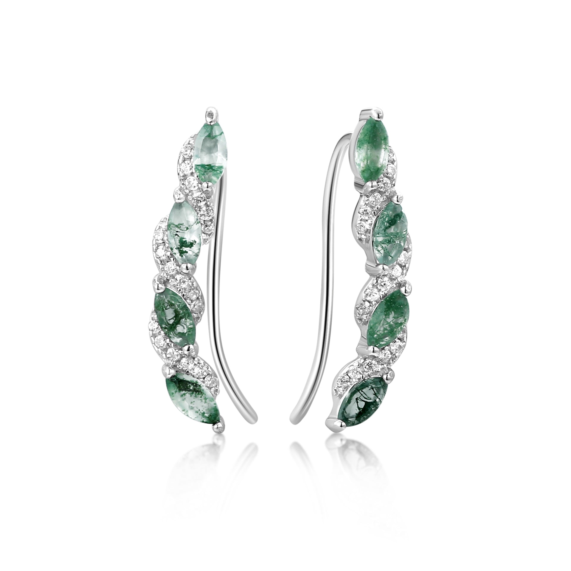 Felicegals Unique Moss Agate Pea Pod Gold Earrings Solid Gold Earrings Classic Earrings
