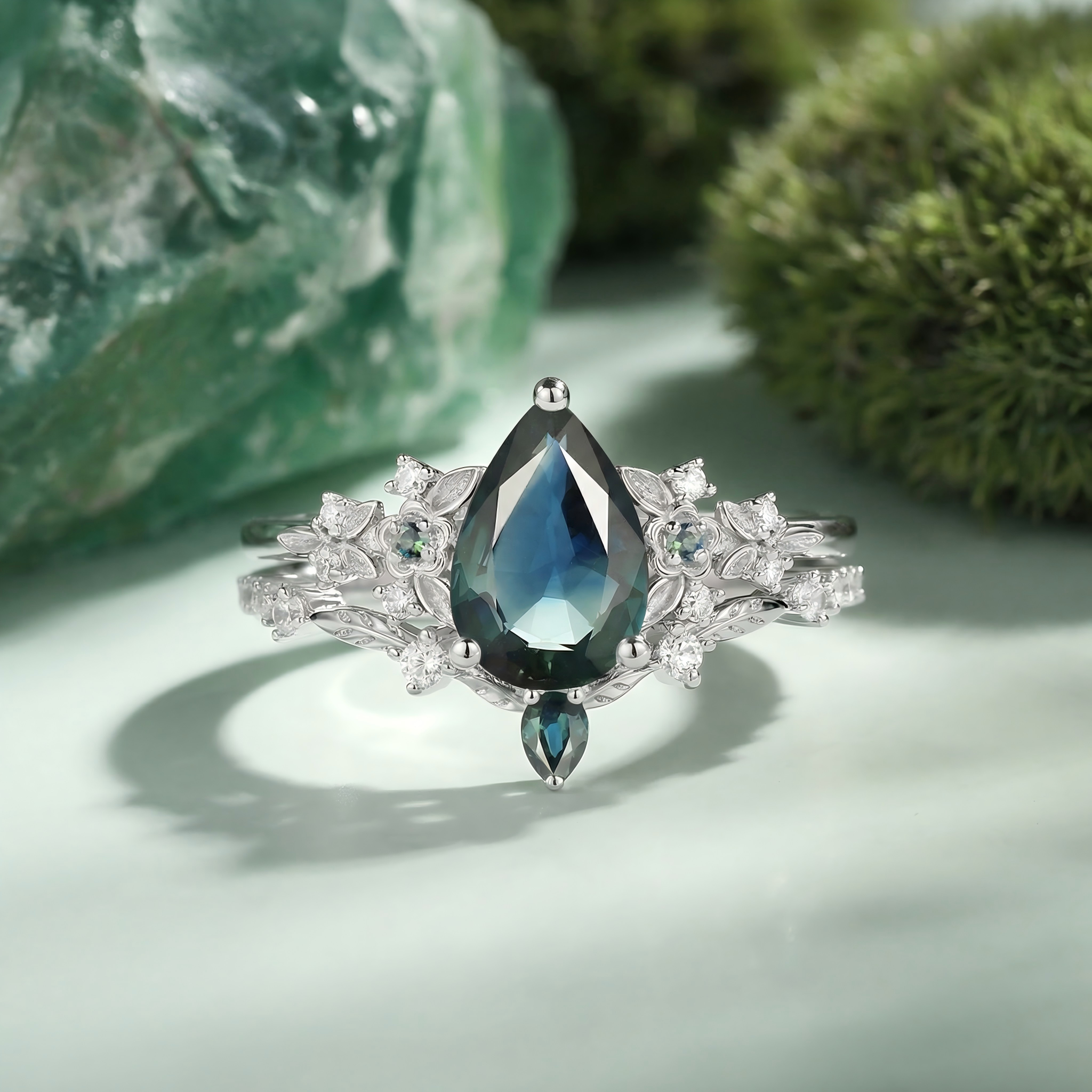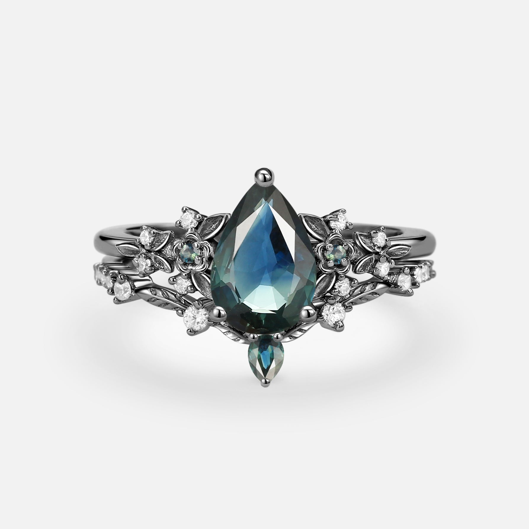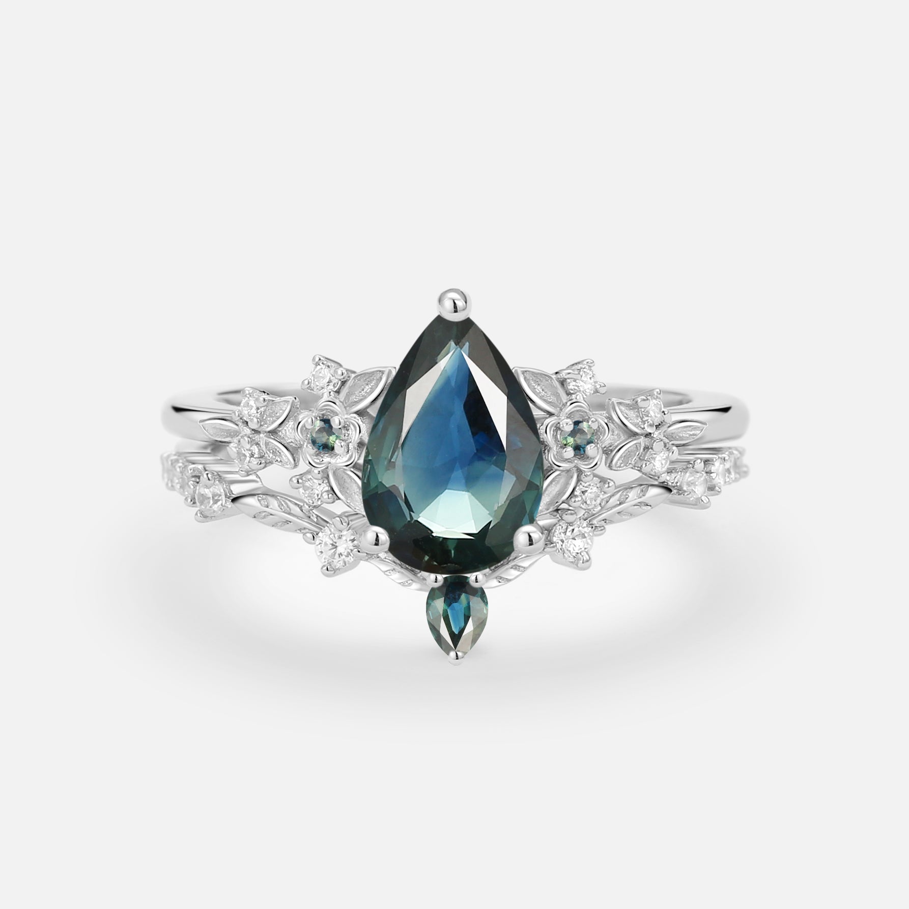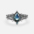 Pear Cut Teal Sapphire Engagement Ring Set 2pcs - Loretta