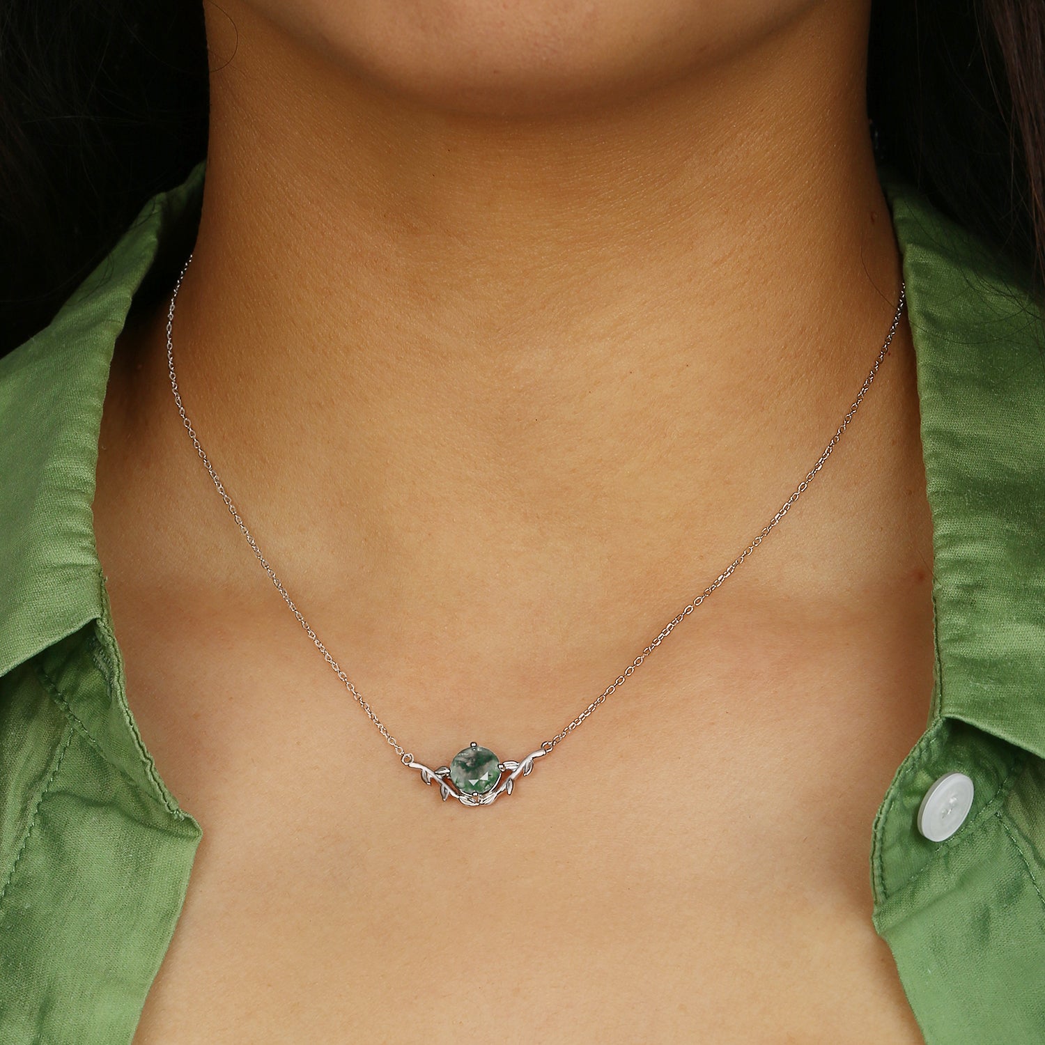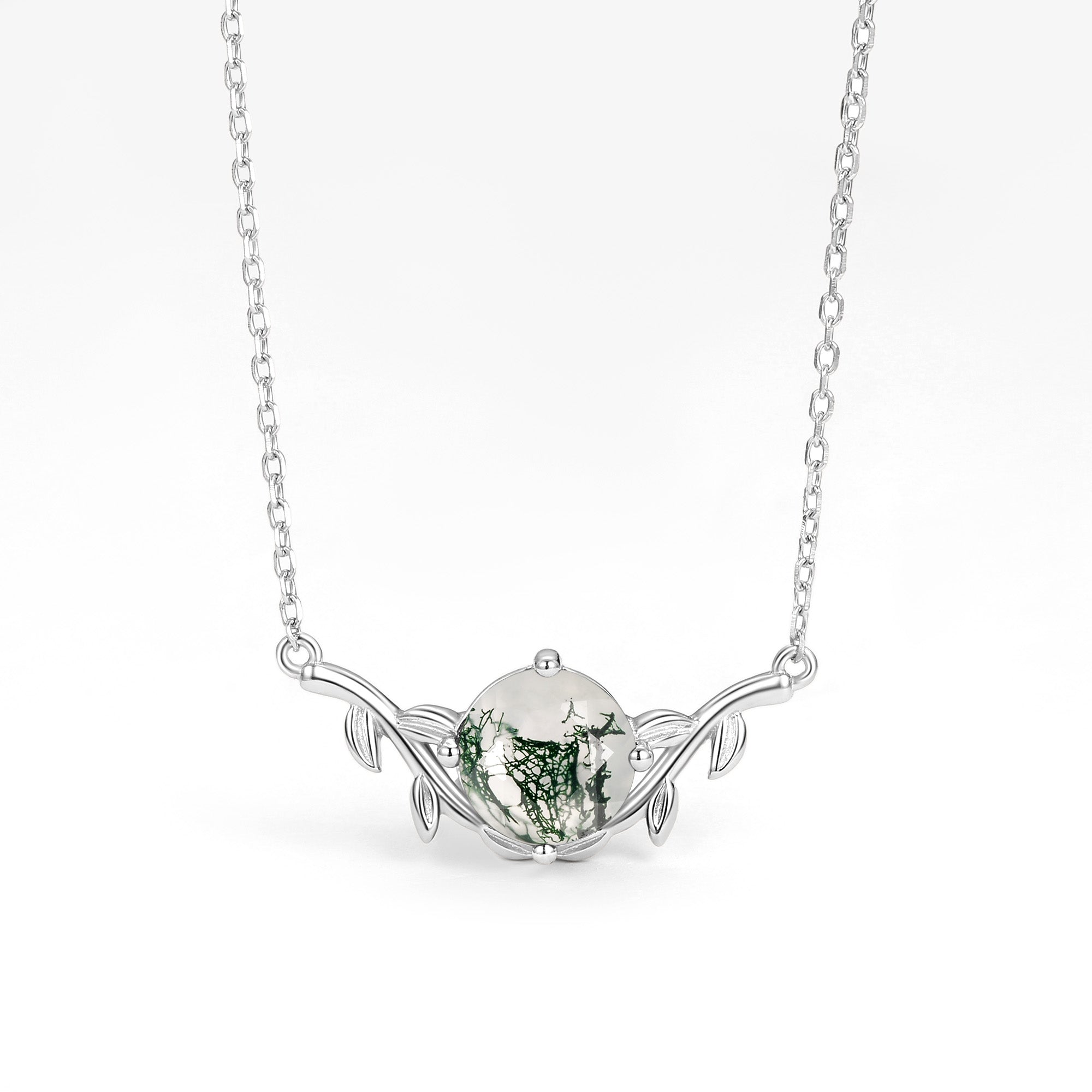 Natural Inspired Leafy Moss Agate Cute Round Necklace