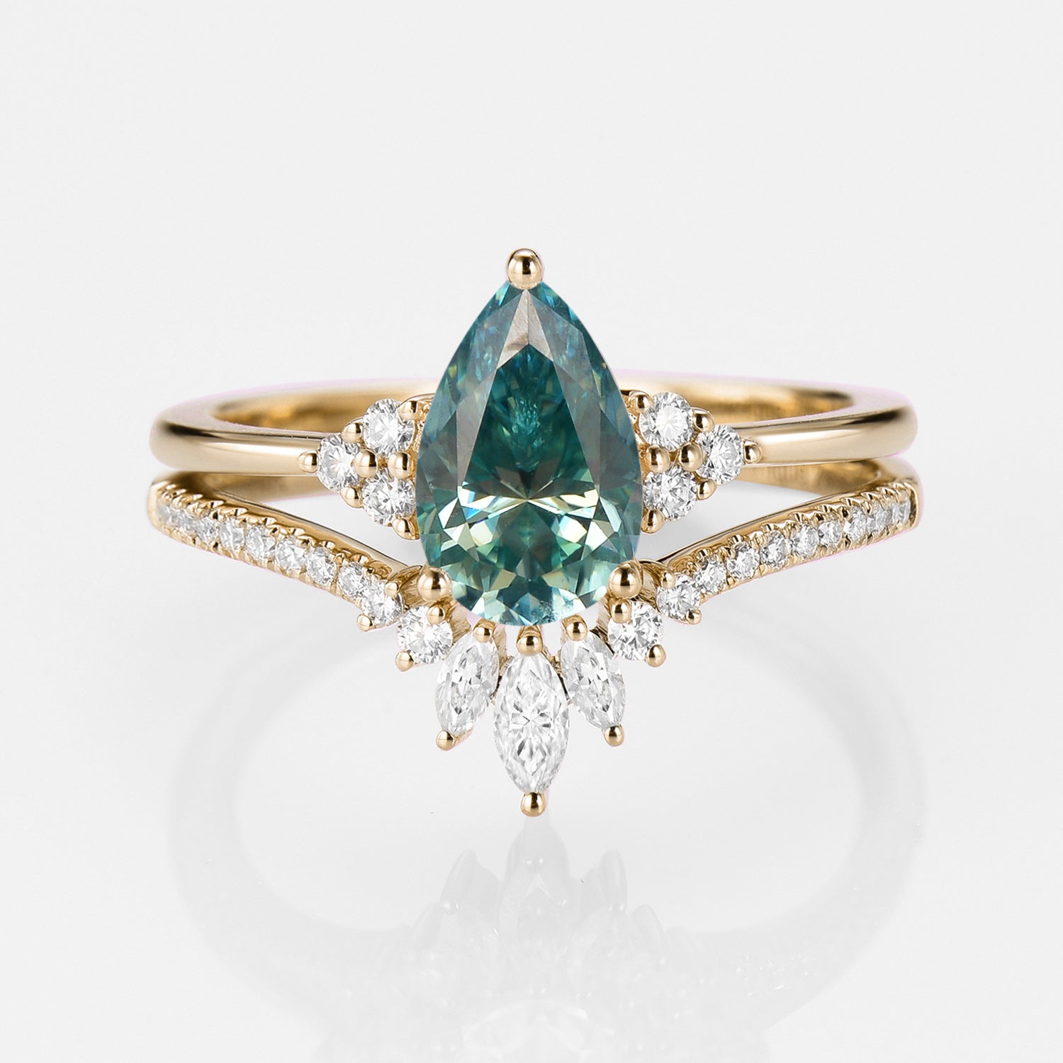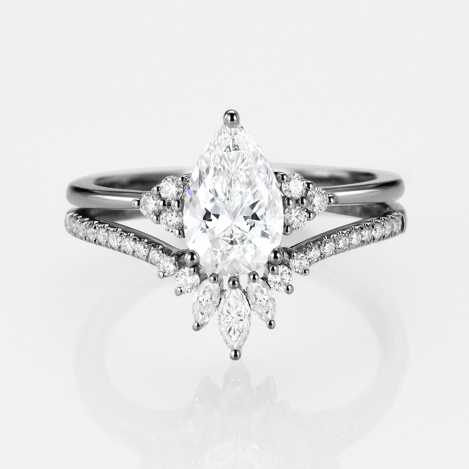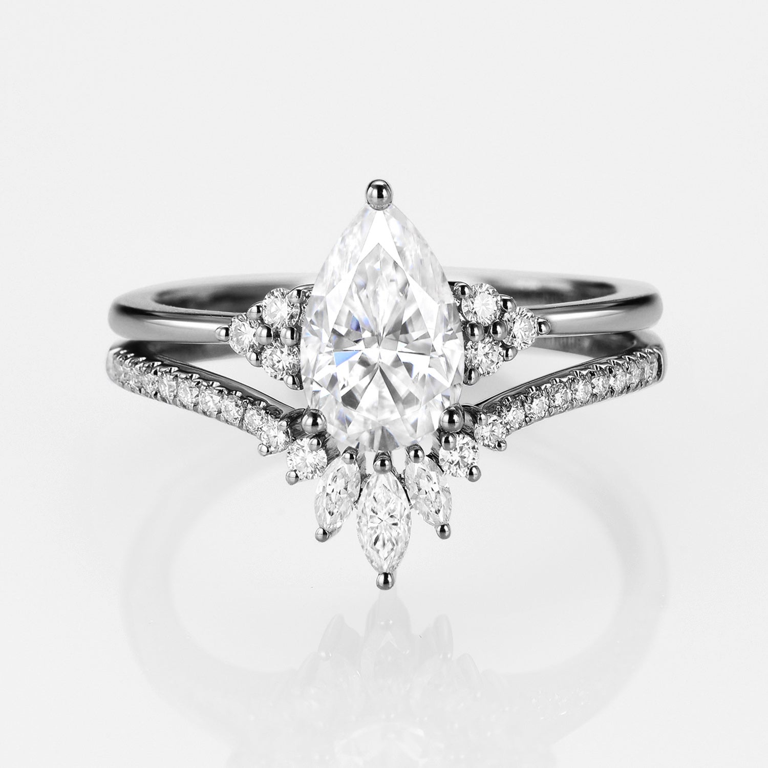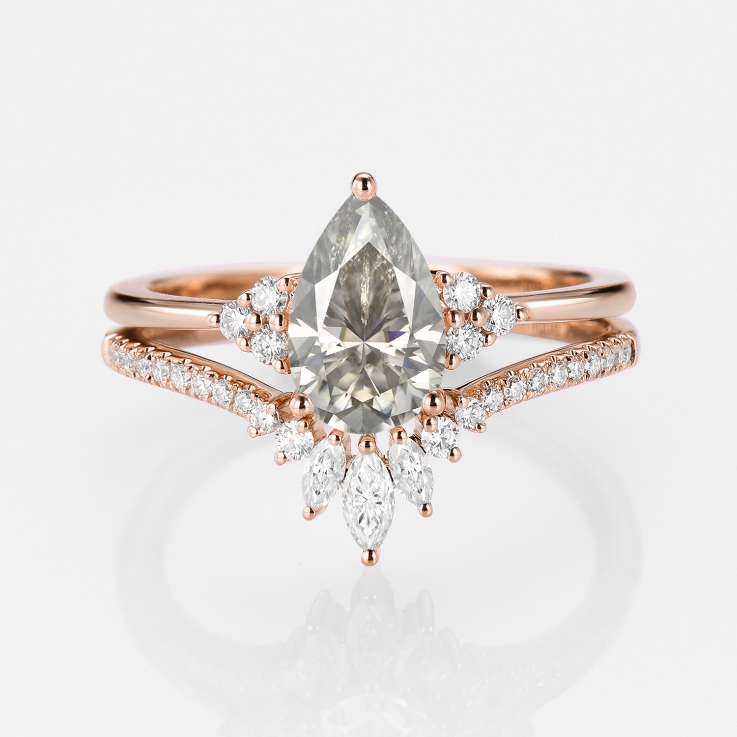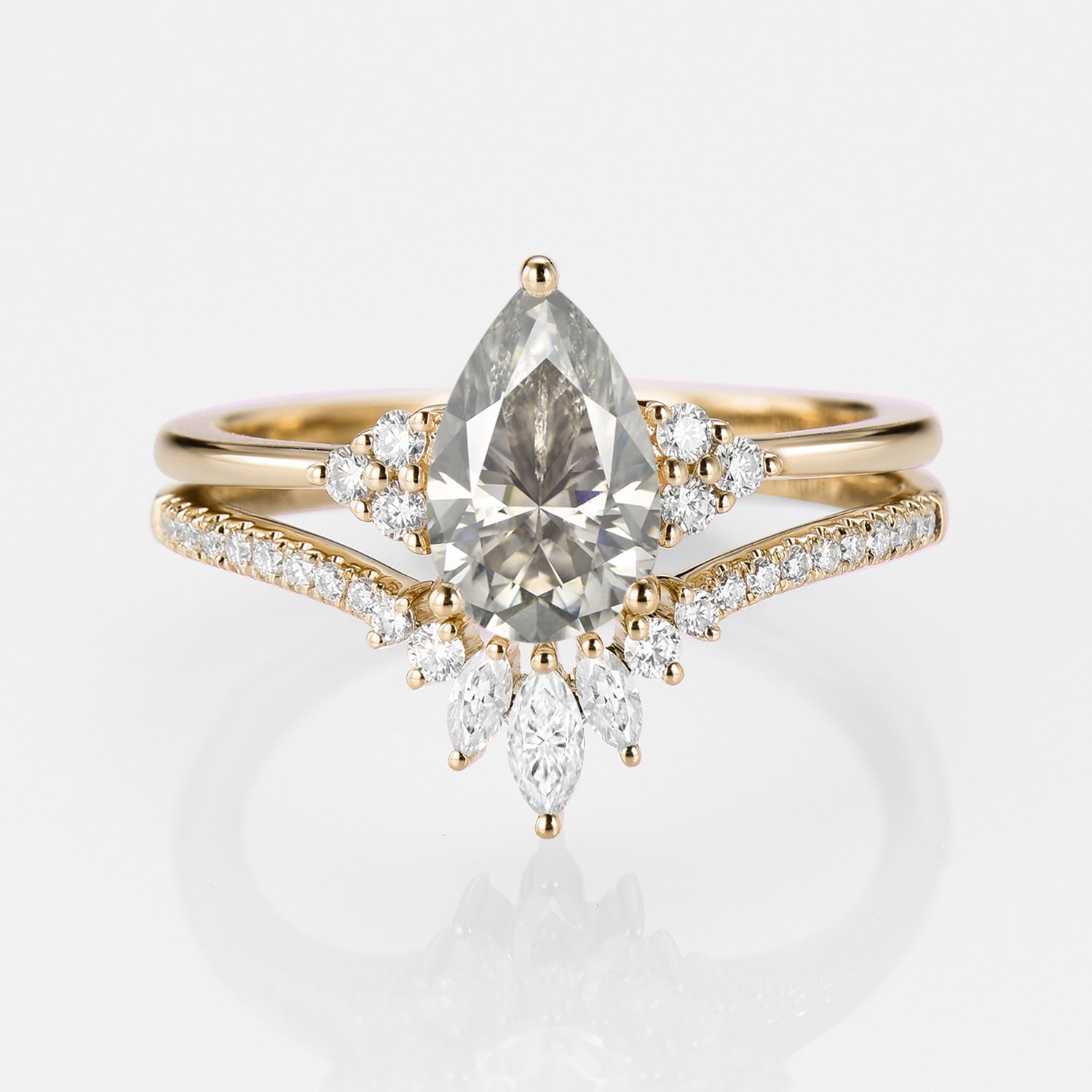 Classic Engagement - Pear Moissanite Engagement Ring Set 2pcs - Lydia