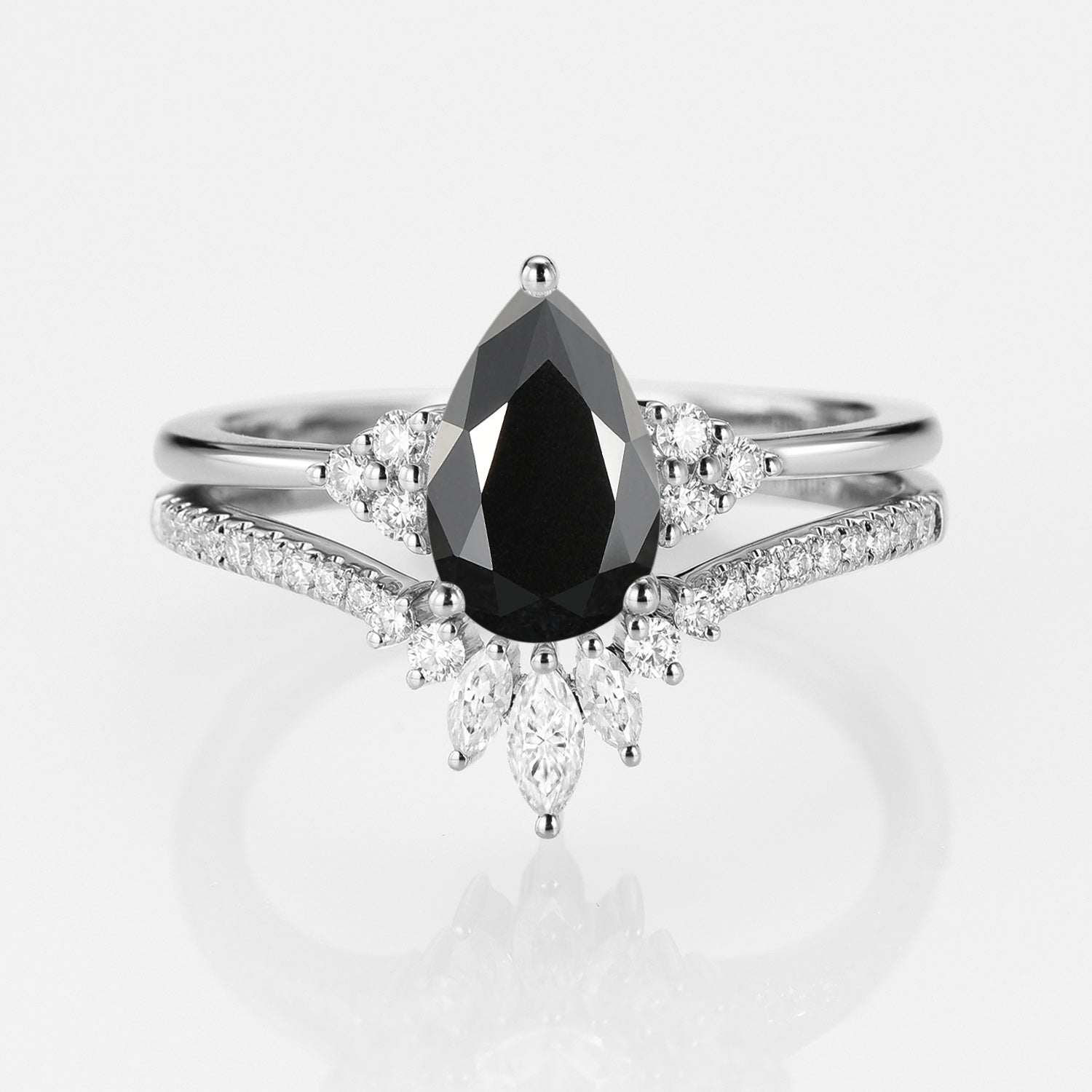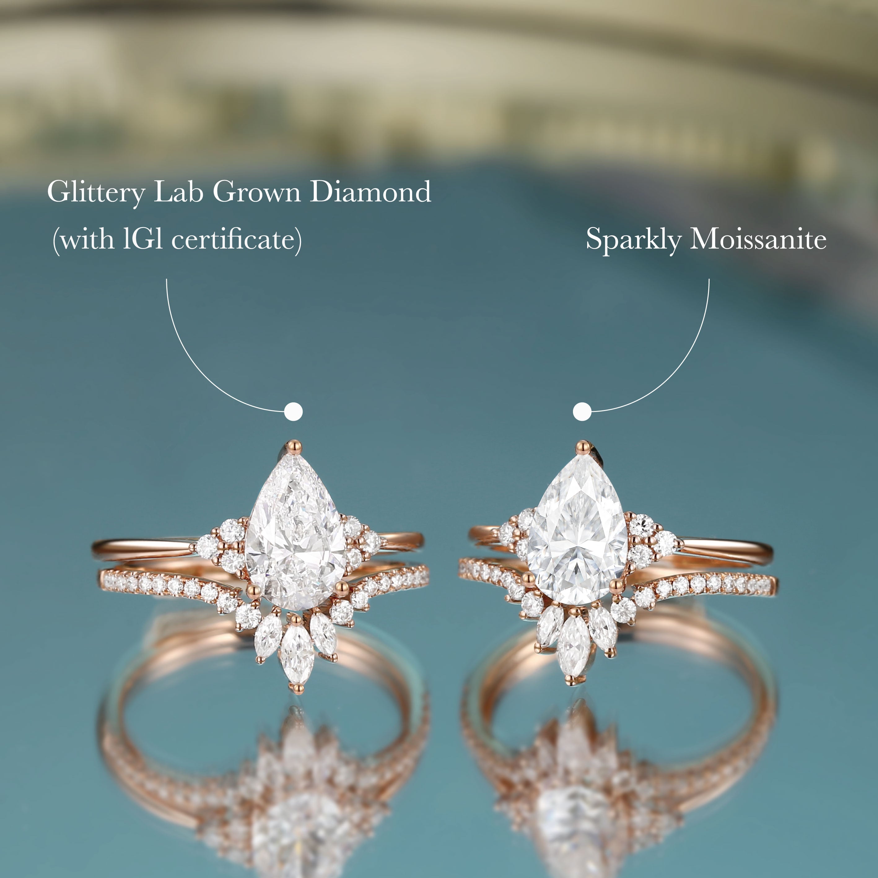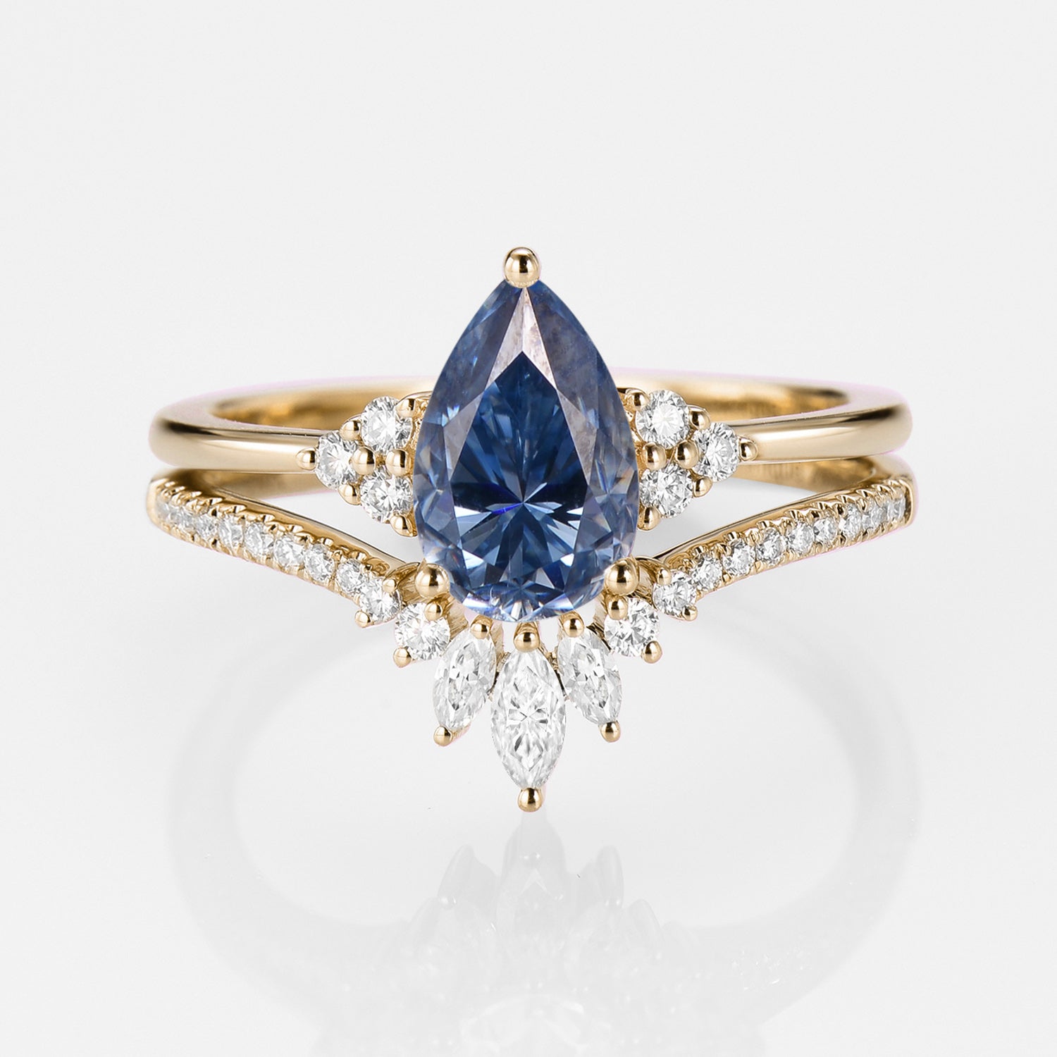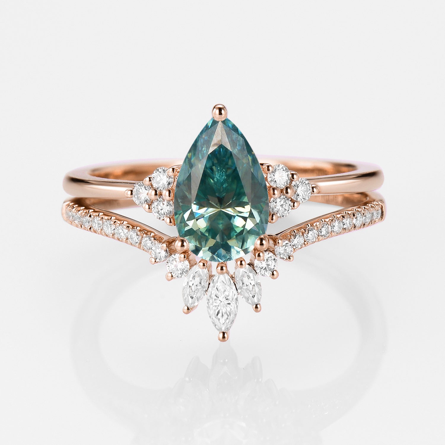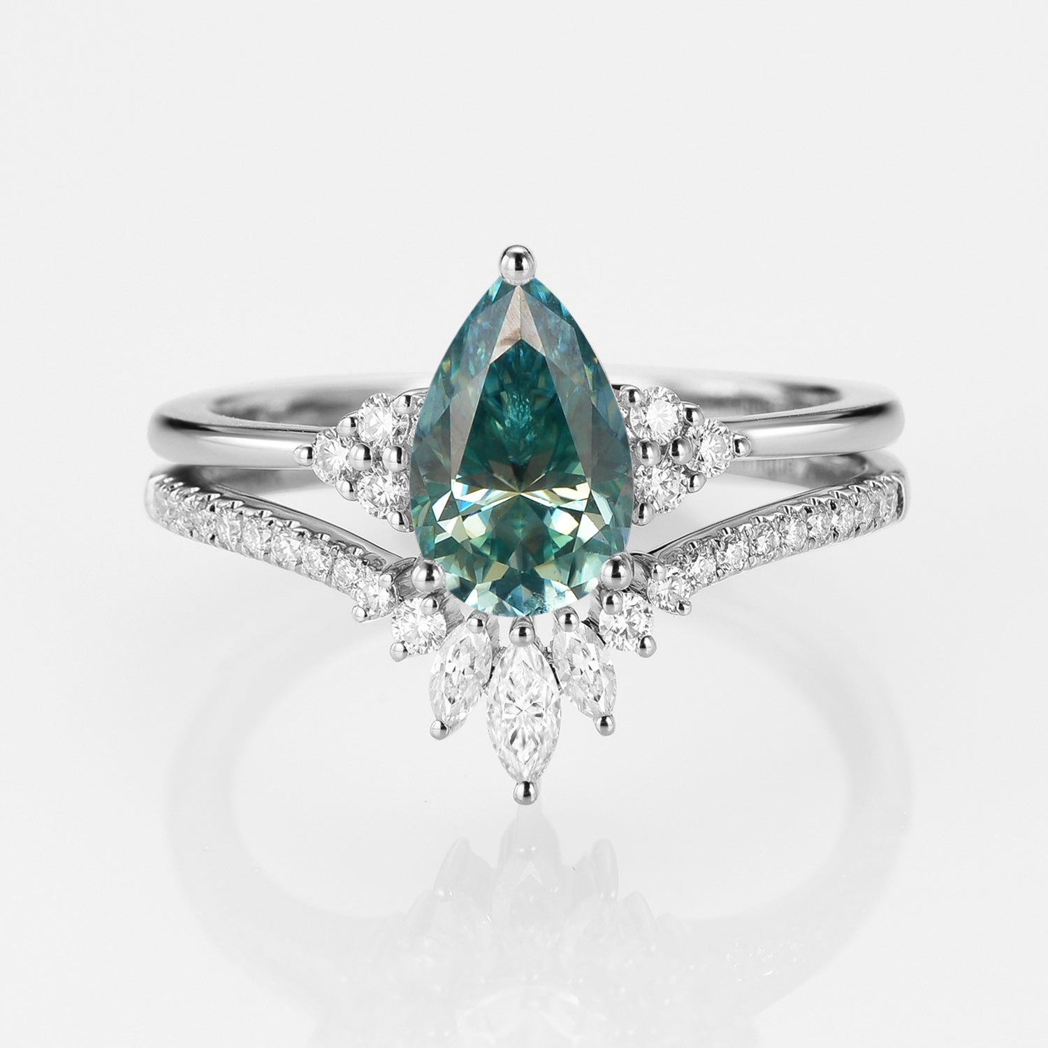 Classic Engagement - Pear Moissanite Engagement Ring Set 2pcs - Lydia