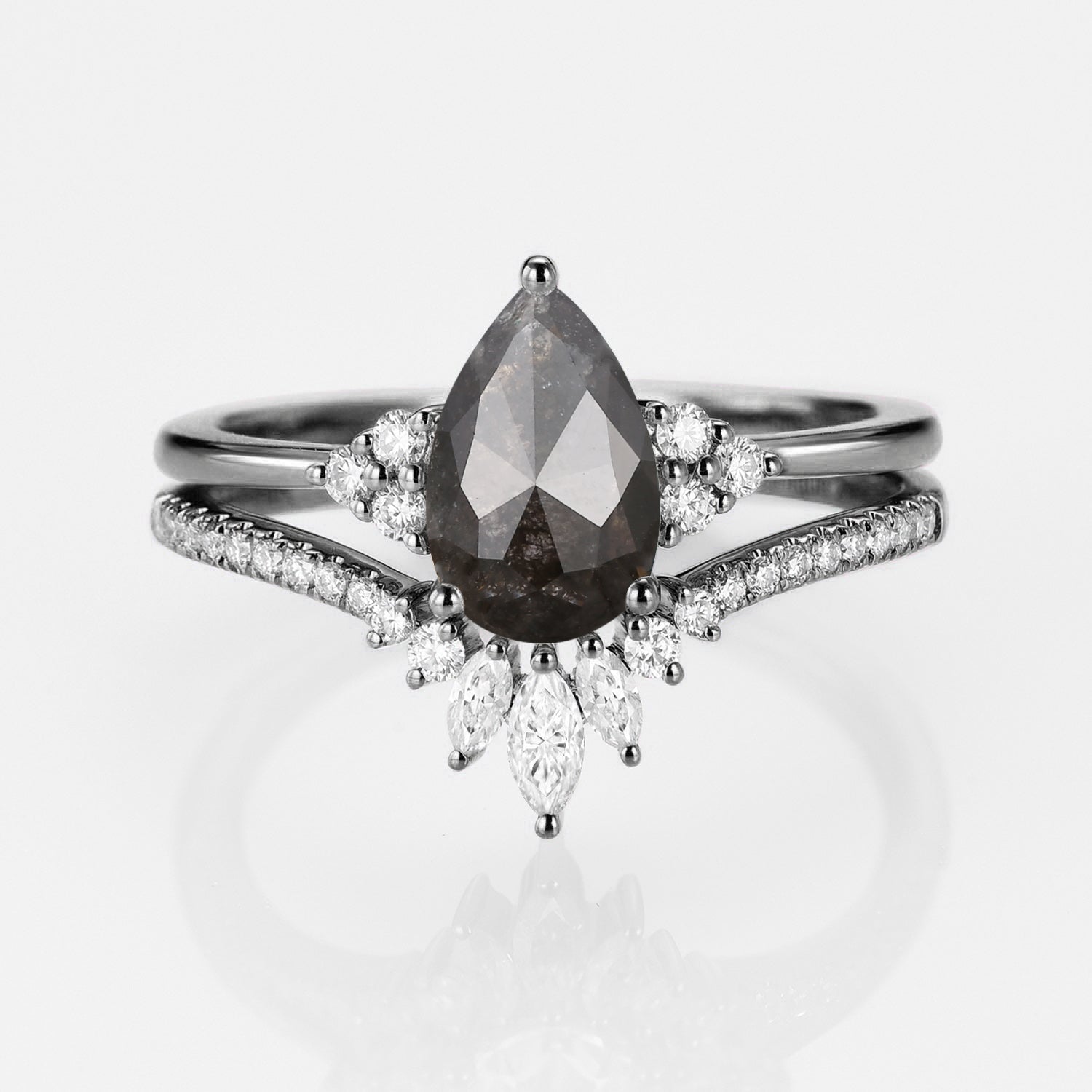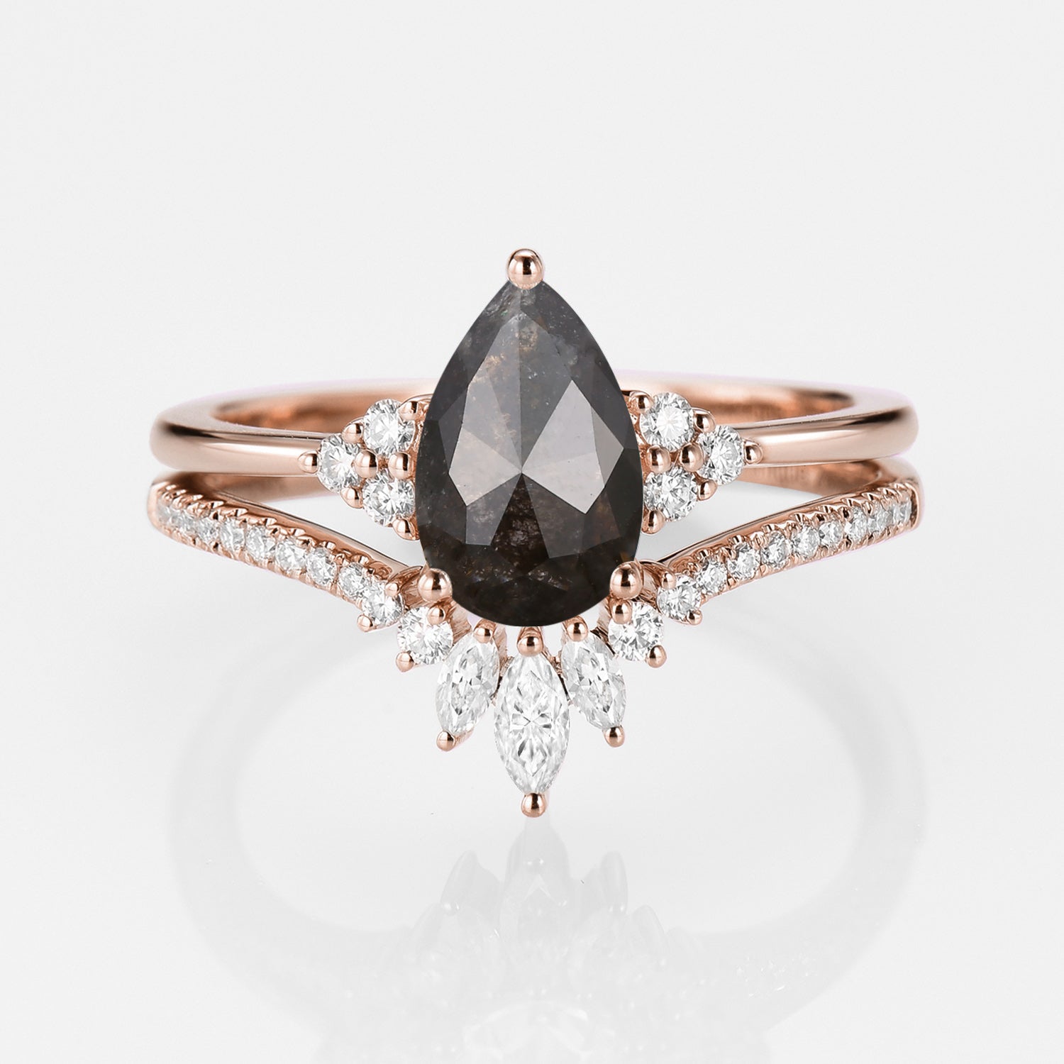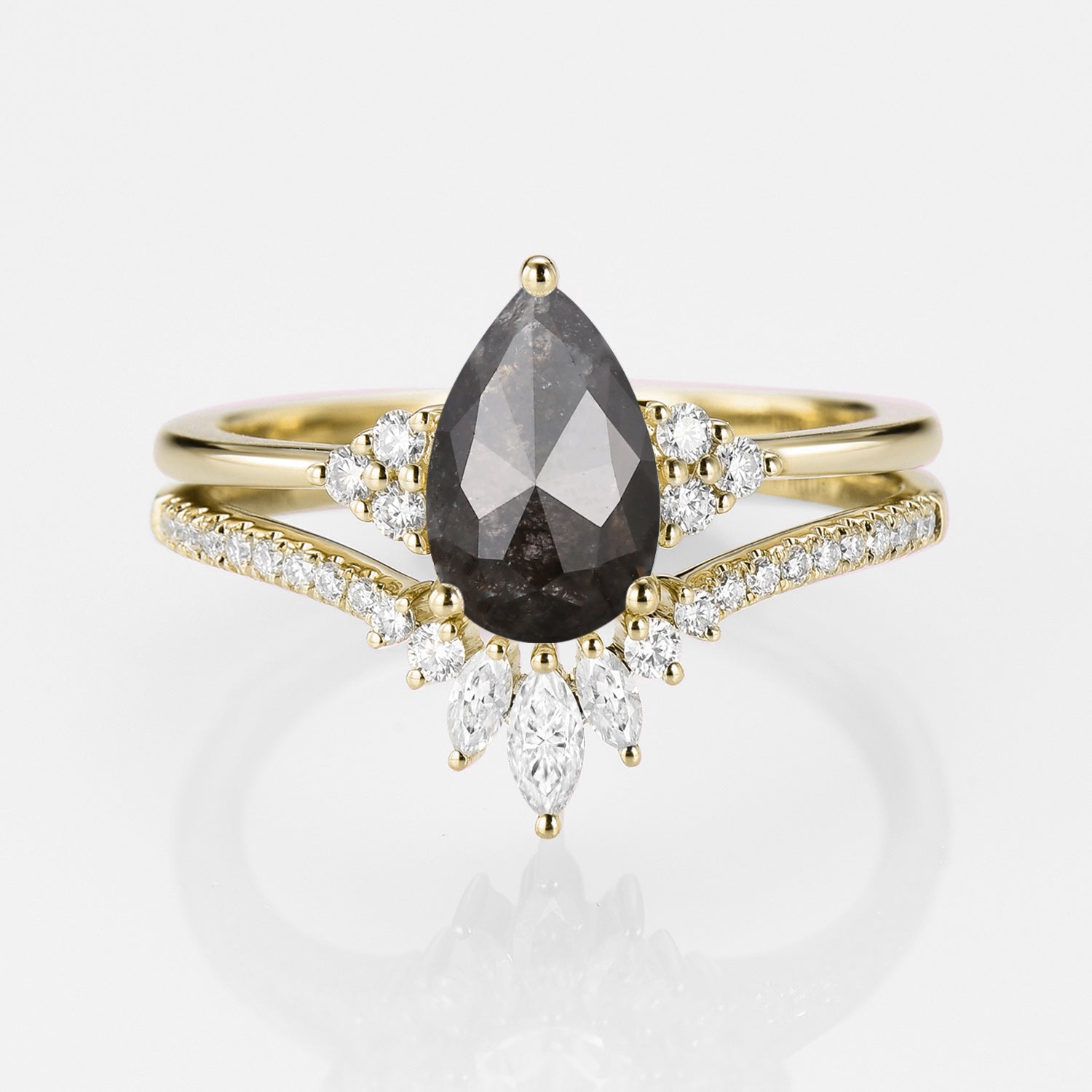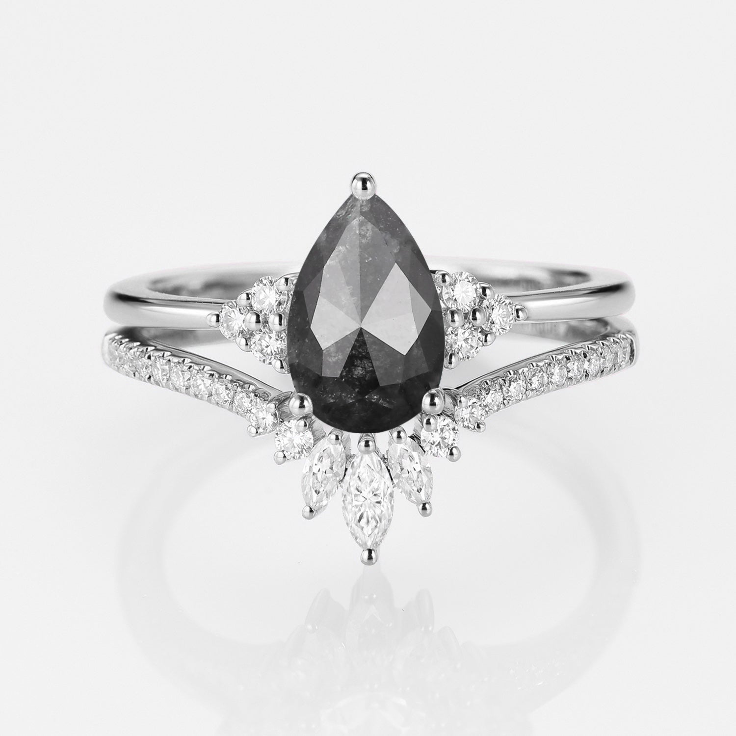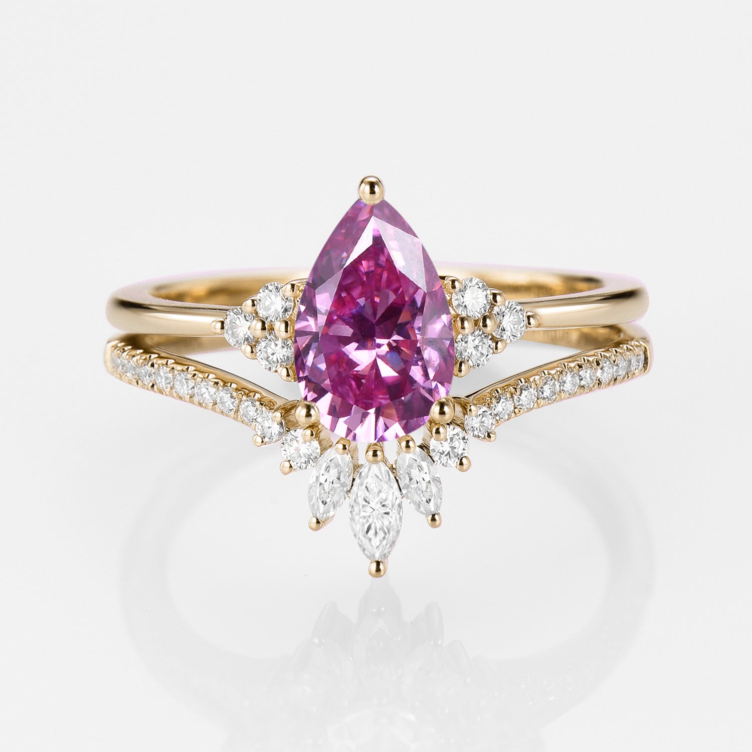 Classic Engagement - Pear Moissanite Engagement Ring Set 2pcs - Lydia