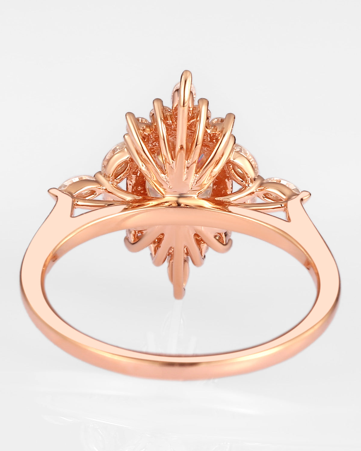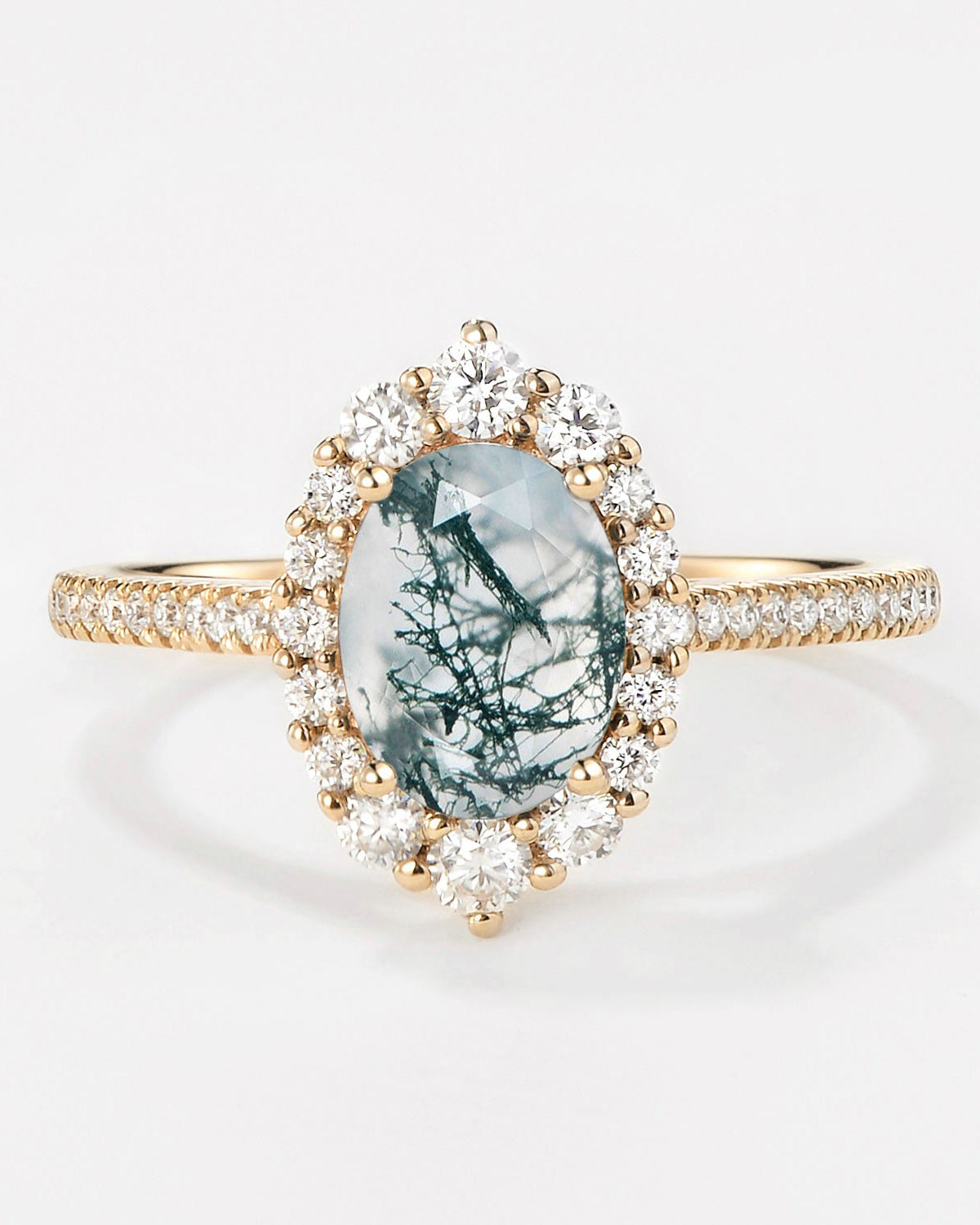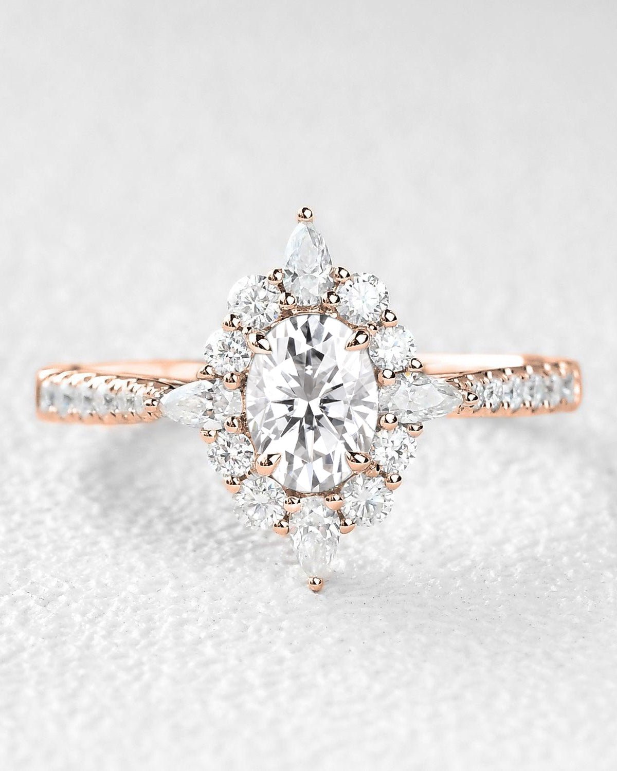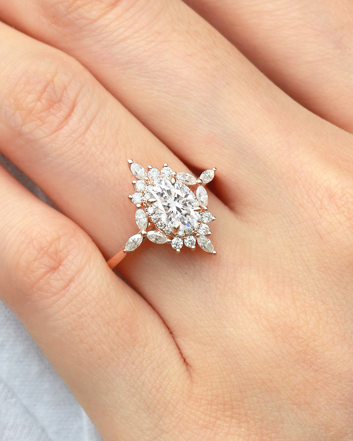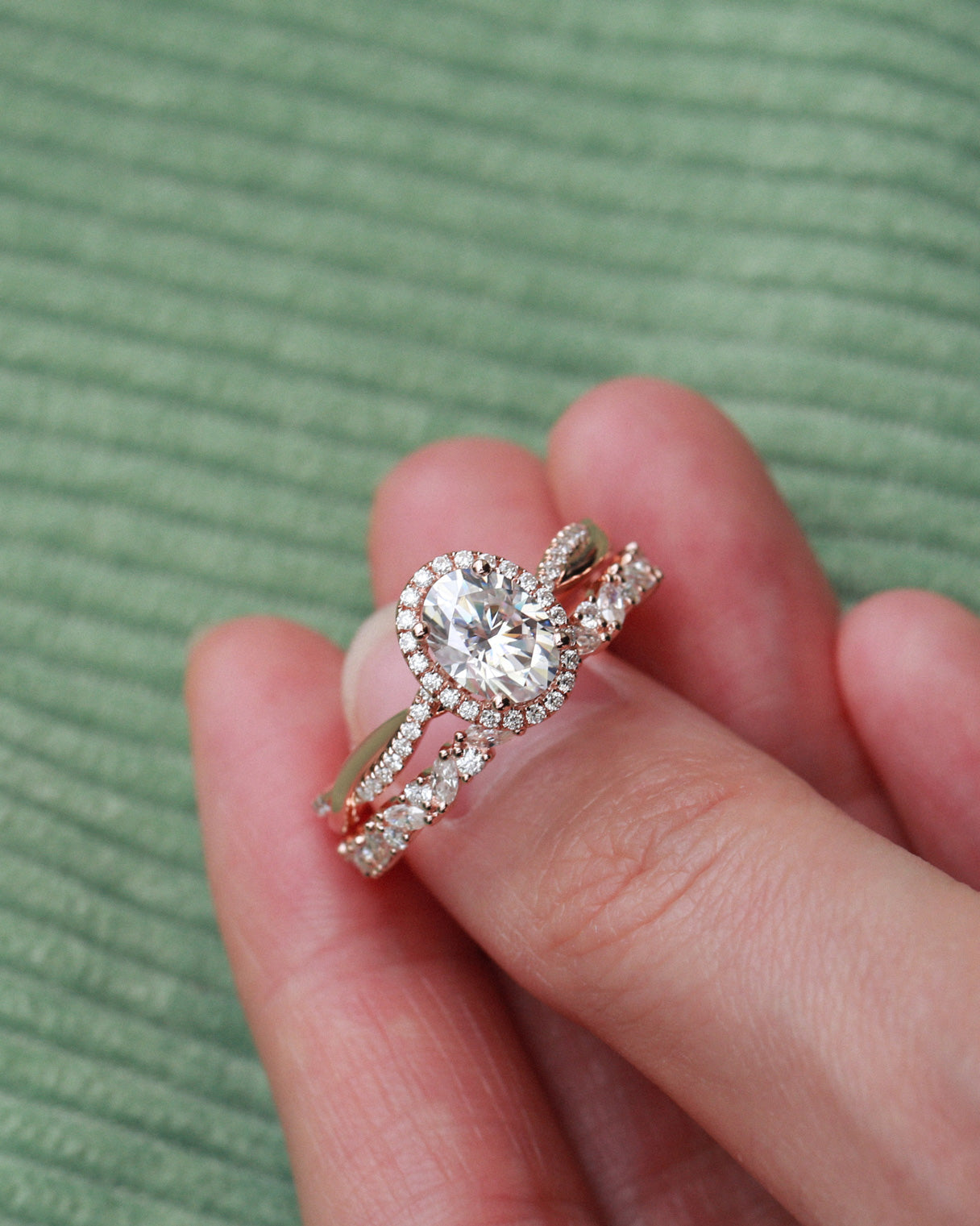 The Enchanted Halo ring features a combination of center stones and small diamonds or gemstones surrounding it, creating a halo effect that resembles a radiant aura. Countless small diamonds are clustered around the main stone, making it appear larger and more dazzling, while also adding to the overall brilliance and grandeur of halo moissanite engagement rings. Felicegals's halo moissanite ring design is delicate and harmonious, showcasing an elegant and refined style. Legend has it that during a solar eclipse, young couples make wishes, and their love will be blessed by the gods. The halo ring has become a guardian of love.