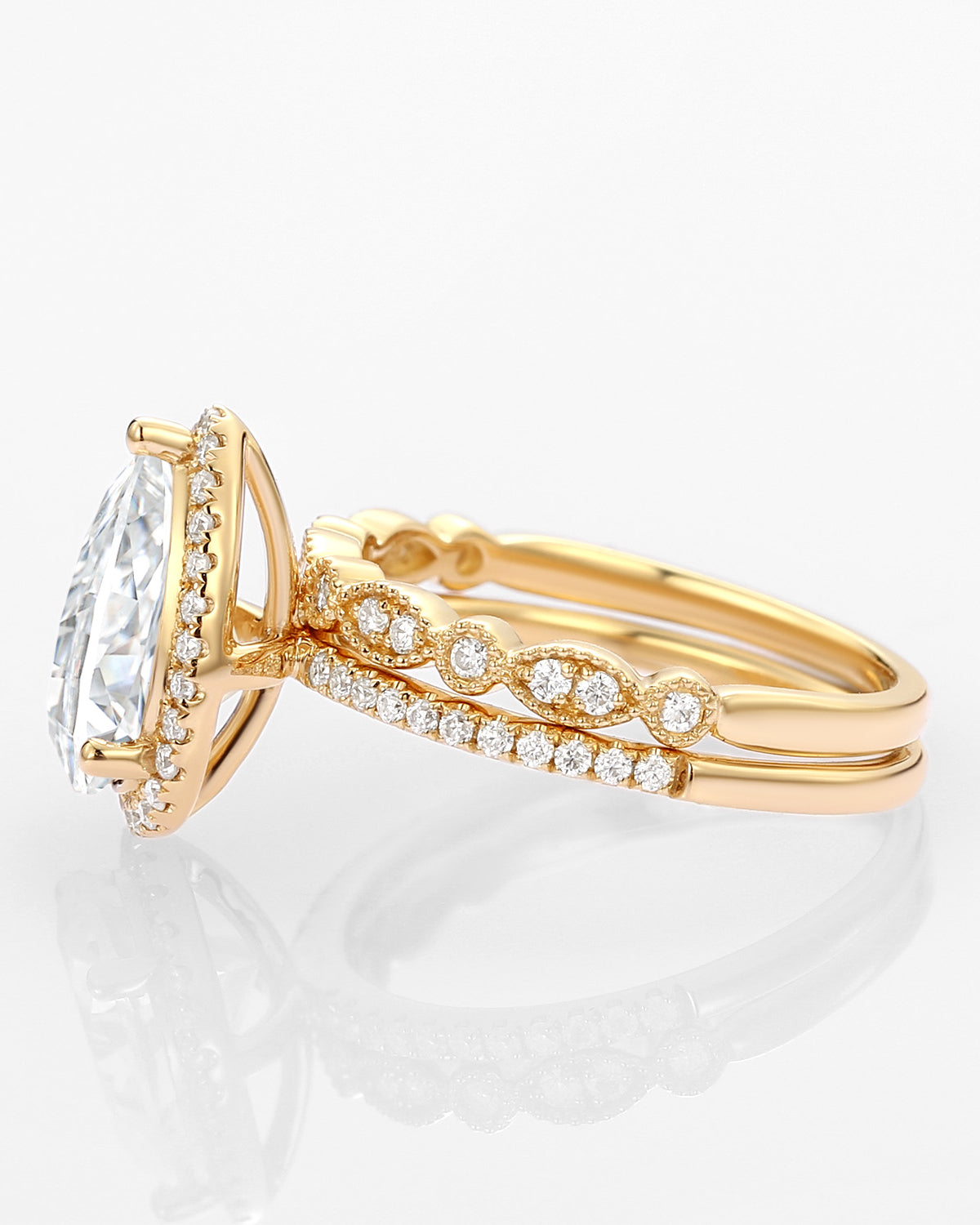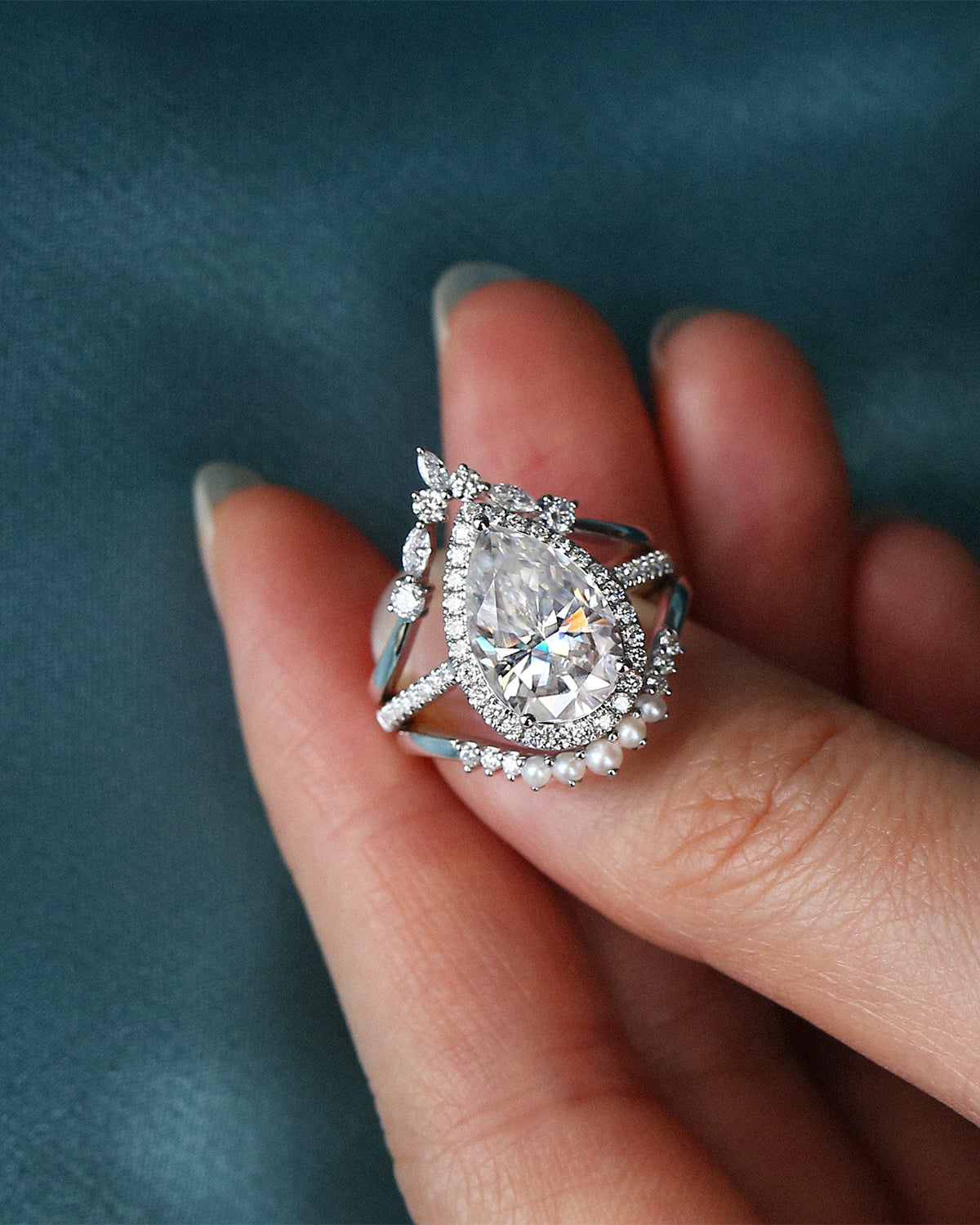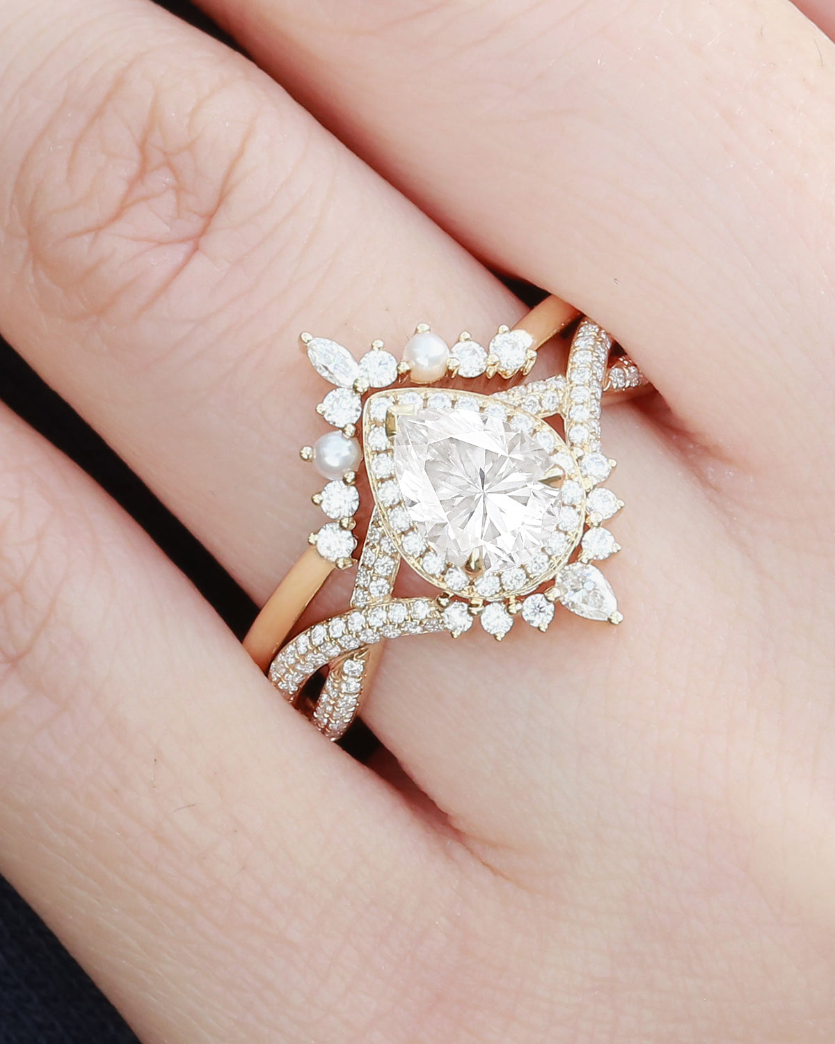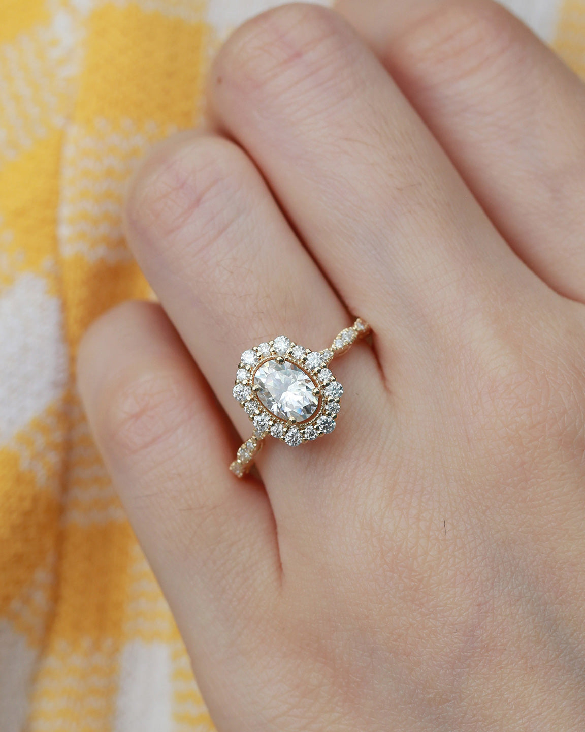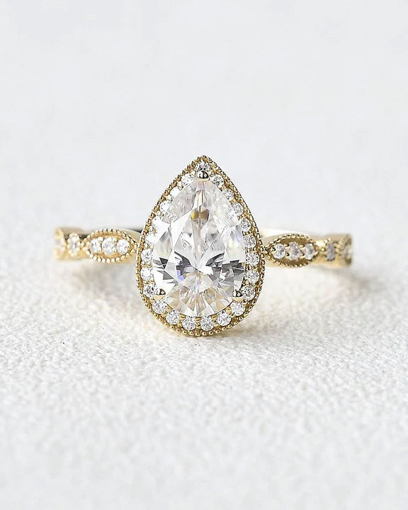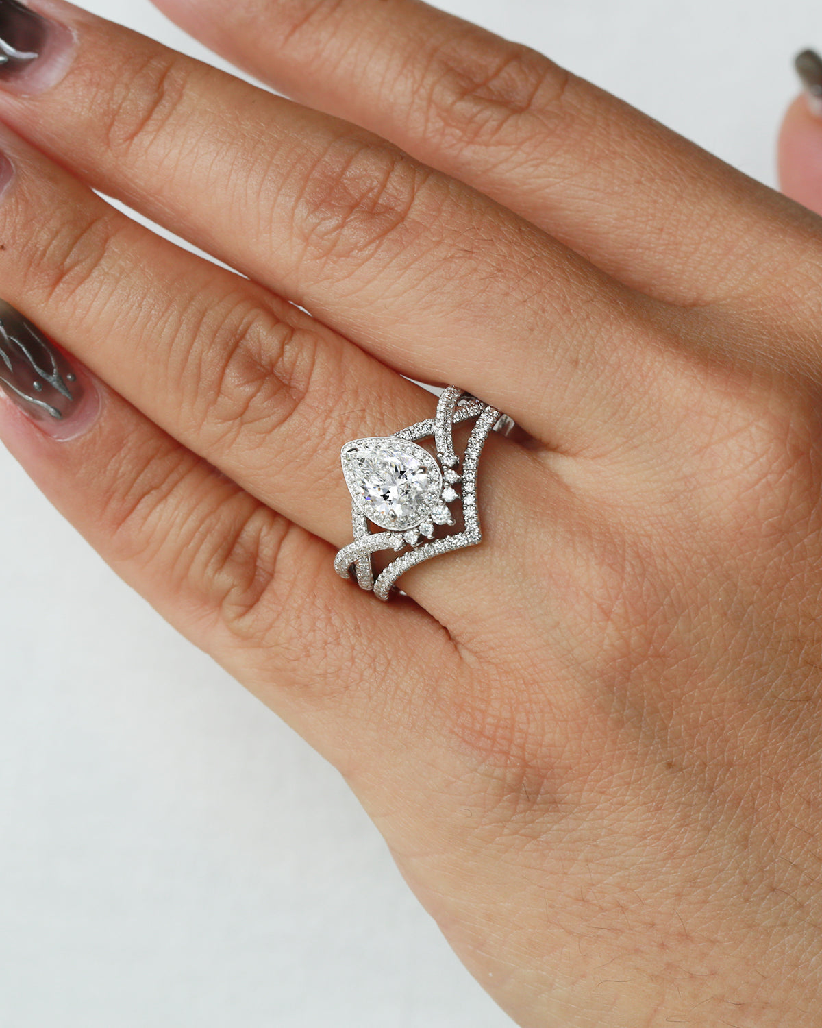 The Enchanted Halo ring features a combination of center stones and small diamonds or gemstones surrounding it, creating a halo effect that resembles a radiant aura. Countless small diamonds are clustered around the main stone, making it appear larger and more dazzling, while also adding to the overall brilliance and grandeur of halo moissanite engagement rings. Felicegals's halo moissanite ring design is delicate and harmonious, showcasing an elegant and refined style. Legend has it that during a solar eclipse, young couples make wishes, and their love will be blessed by the gods. The halo ring has become a guardian of love.