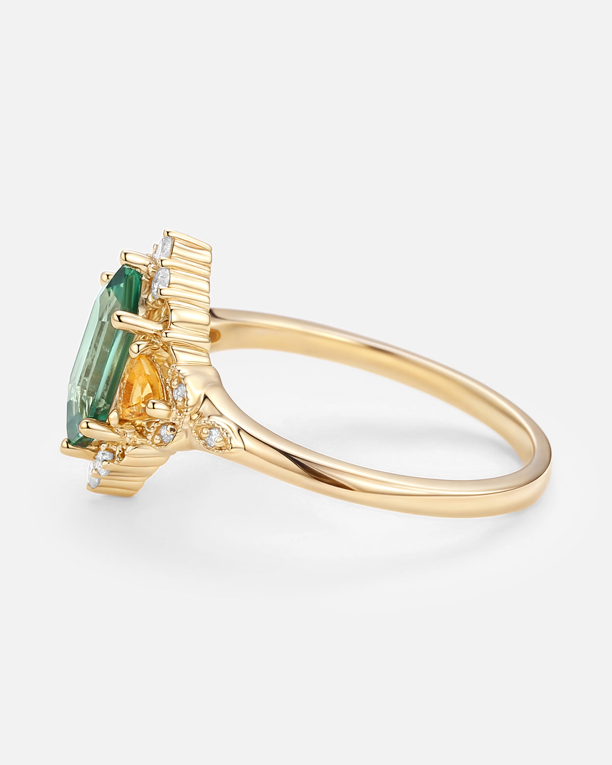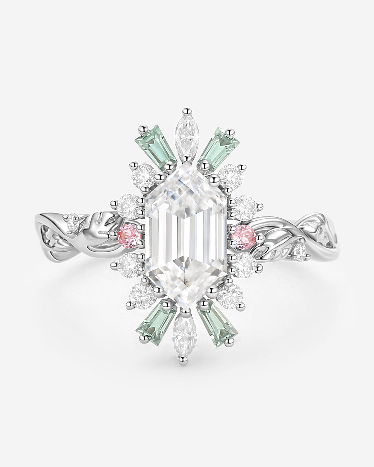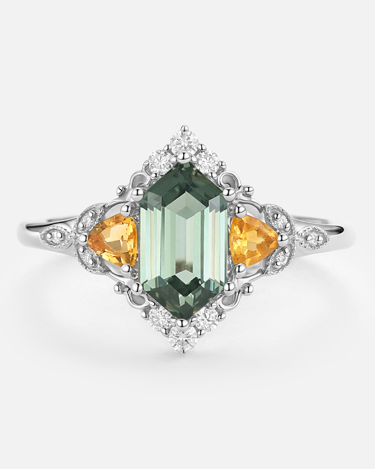 What makes the elongated hexagon engagement ring stand out? It shines with diverse gemstones that match every taste: