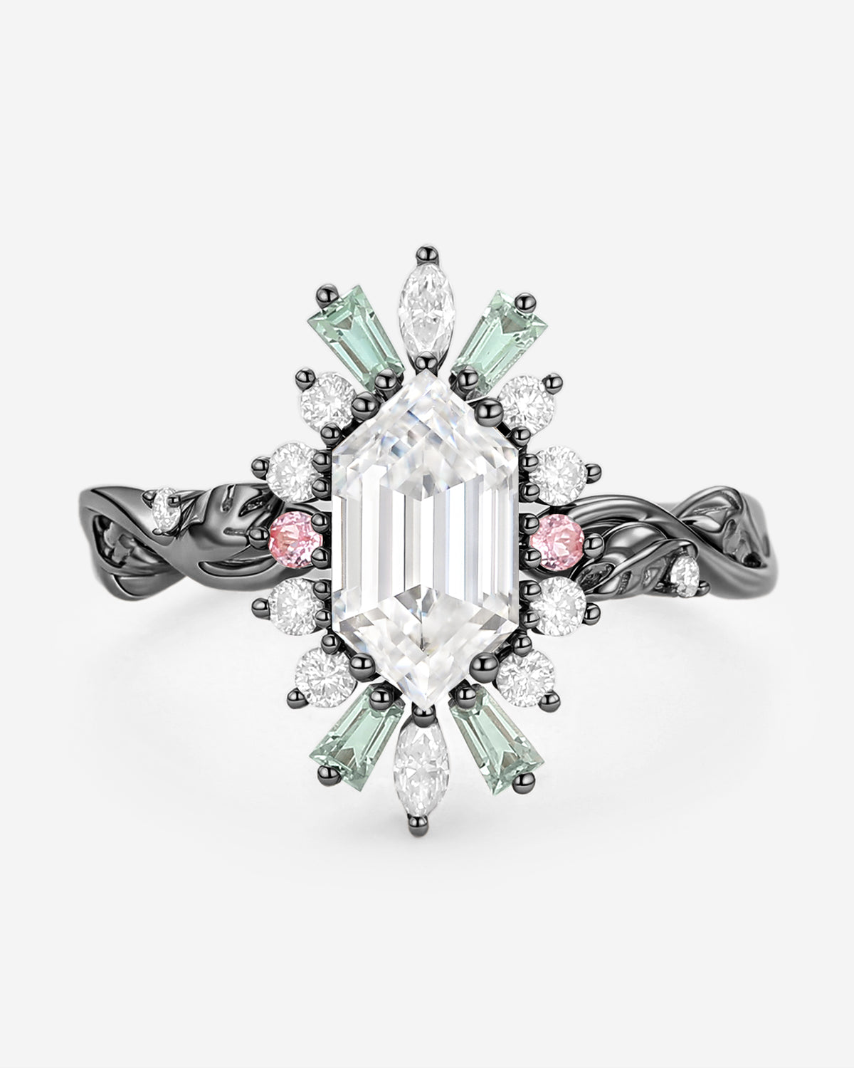 This elongated hexagon engagement ring isn’t just jewelry; it’s a statement that lasts—its shape stays modern, its gemstones (moss agate, salt and pepper diamond, multi-color sapphire) hold meaning, and it fits every moment from daily wear to milestones. Browse our collection today to find the elongated hexagon engagement ring that turns your forever into something extraordinary.