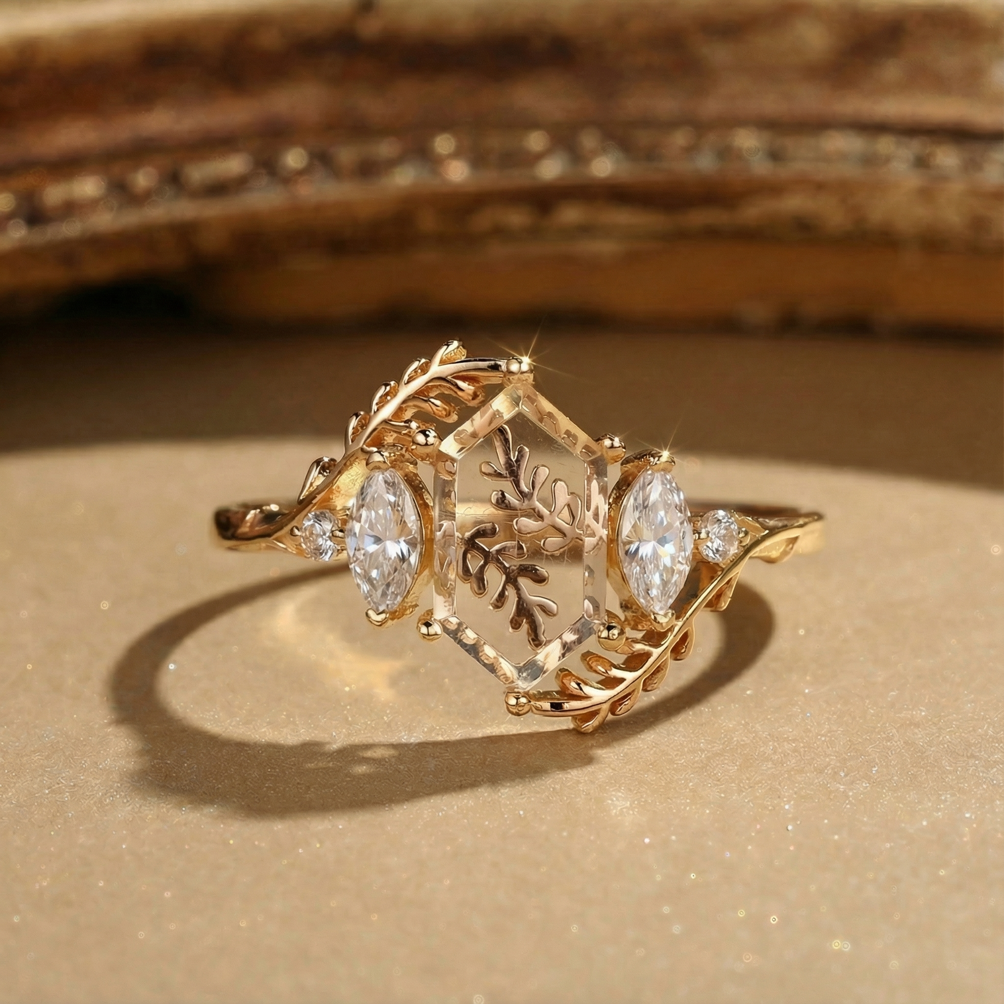 Leafy Moissanite Portrait Cut Elongated Hexagon Engagement Ring - Atrium