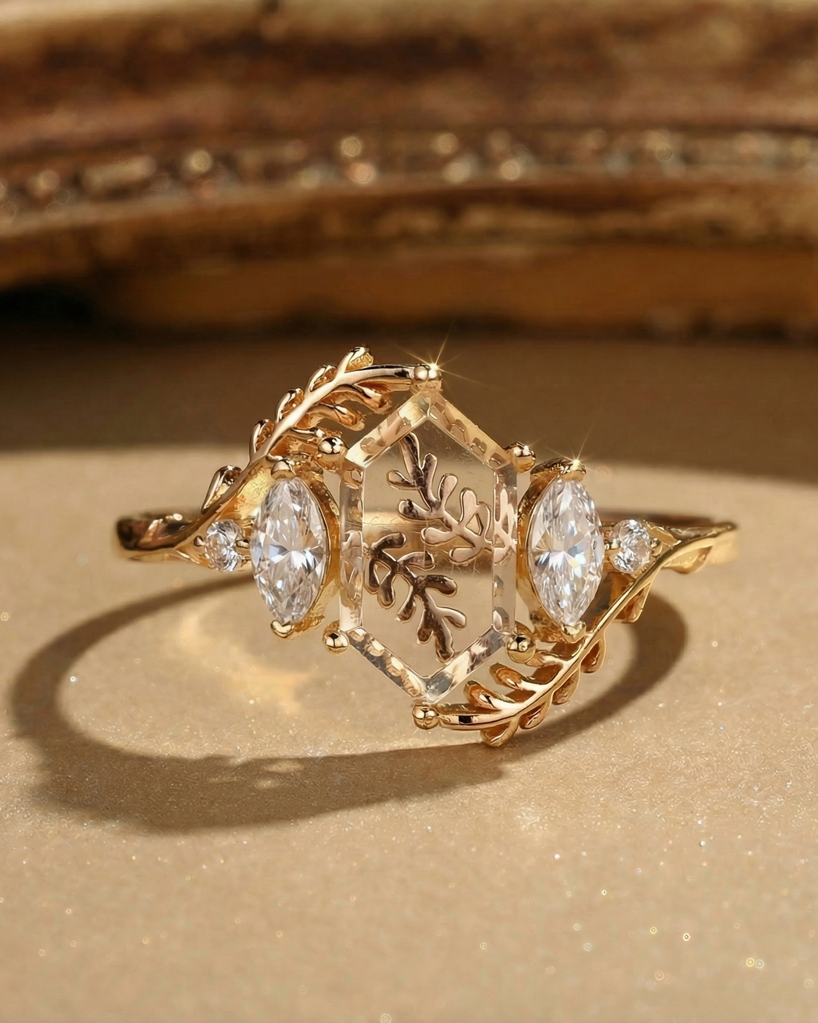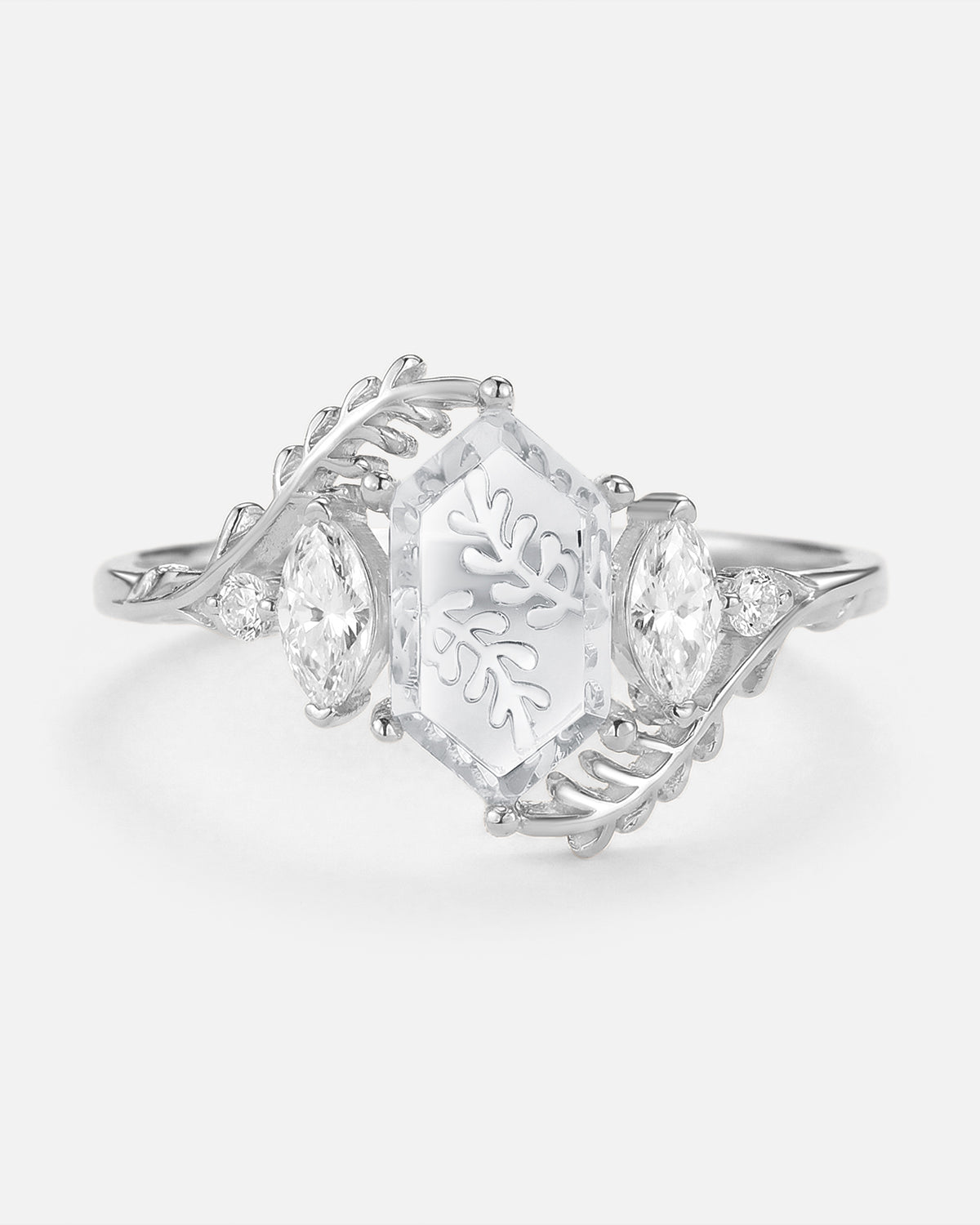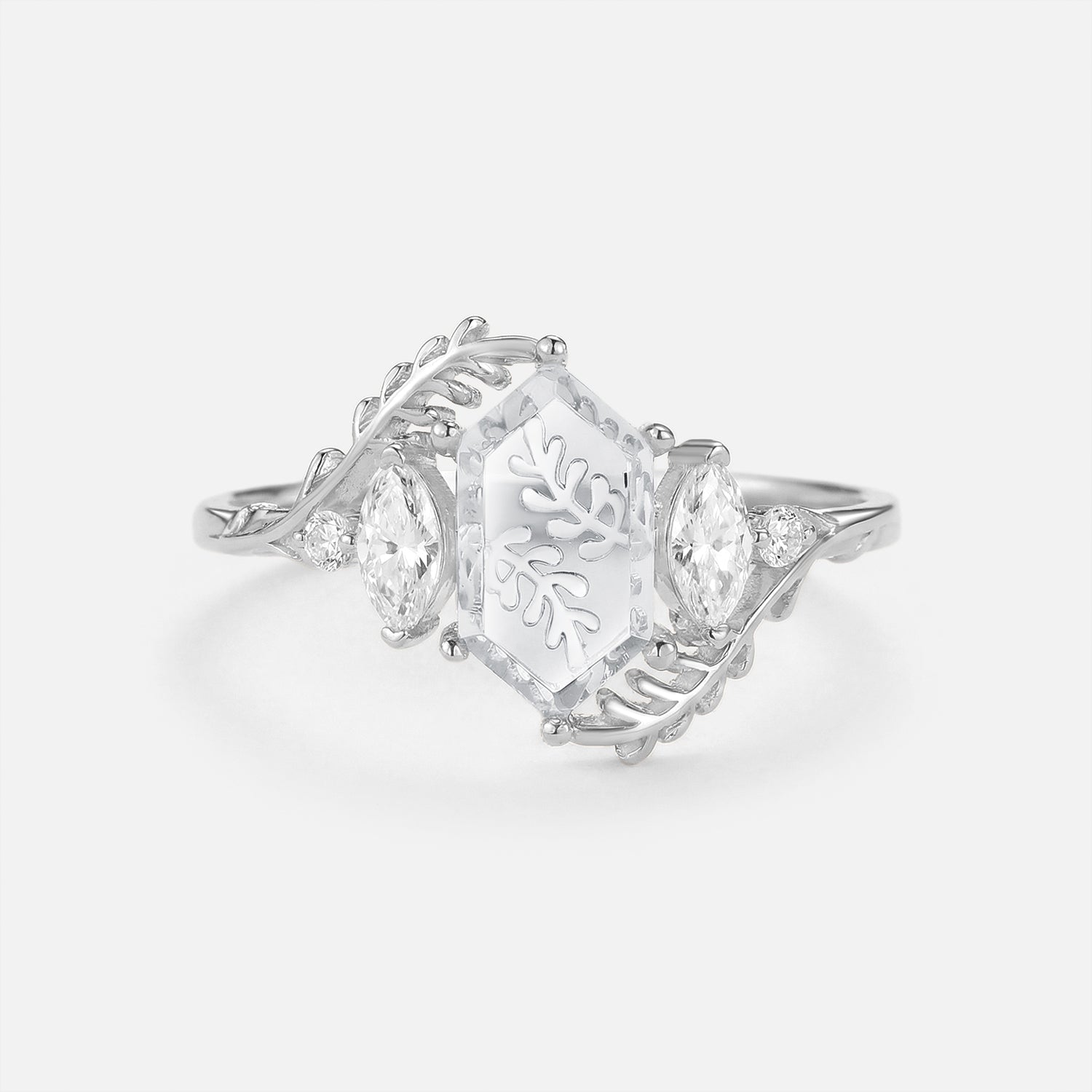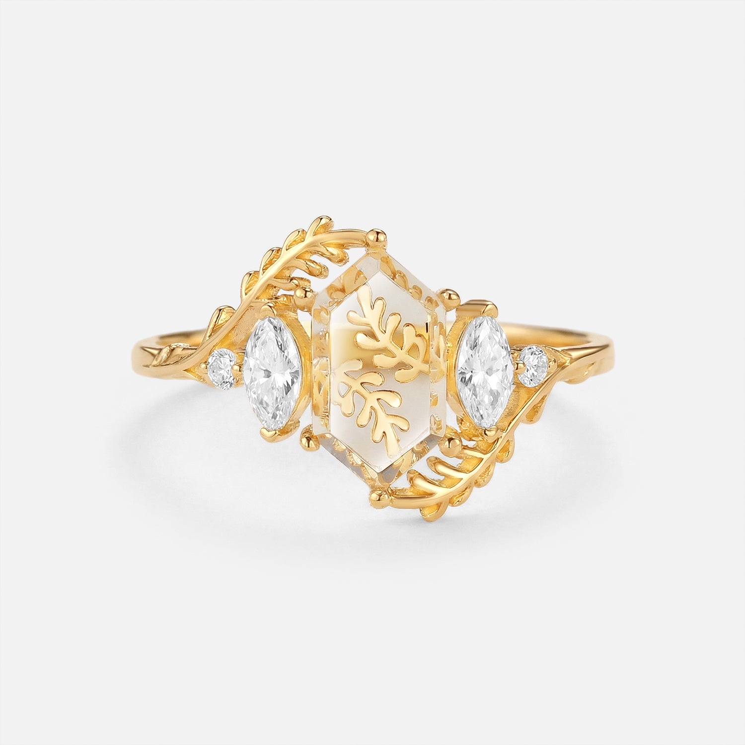 Beyond gemstones, the elongated hexagon engagement ring comes in metals tailored to your vibe: Warm yellow gold amplifies Signature Vintage charm (perfect with sapphire or salt and pepper diamond), crisp white gold elevates Classic Engagement elegance (ideal for moss agate), and soft rose gold enhances Nature Inspired warmth. Lets you craft a elongated hexagon engagement ring that mirrors your love story—no generic choices, just a piece that feels uniquely yours.