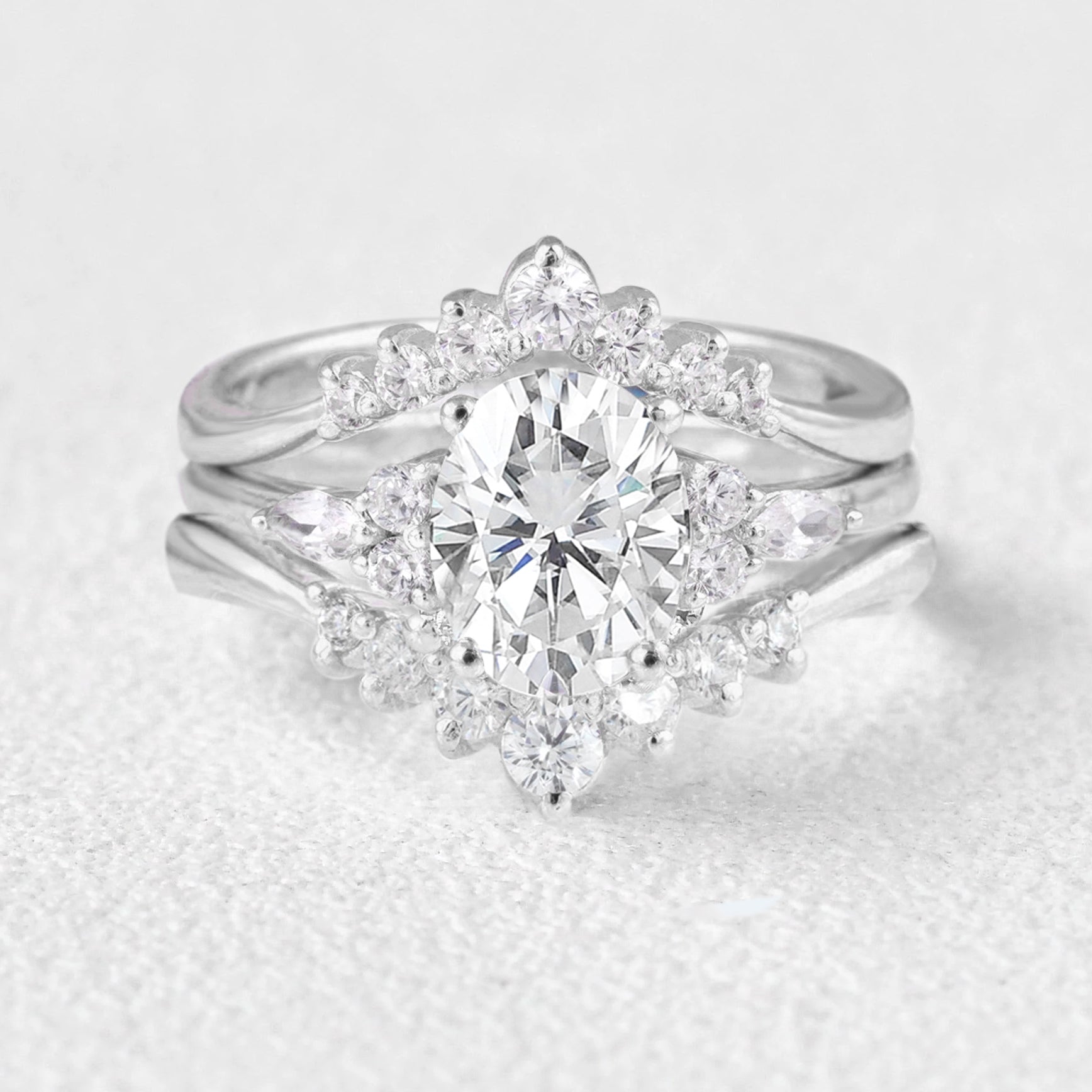 2.0ct Oval Moissanite Pave Cluster Ring Set 3pcs