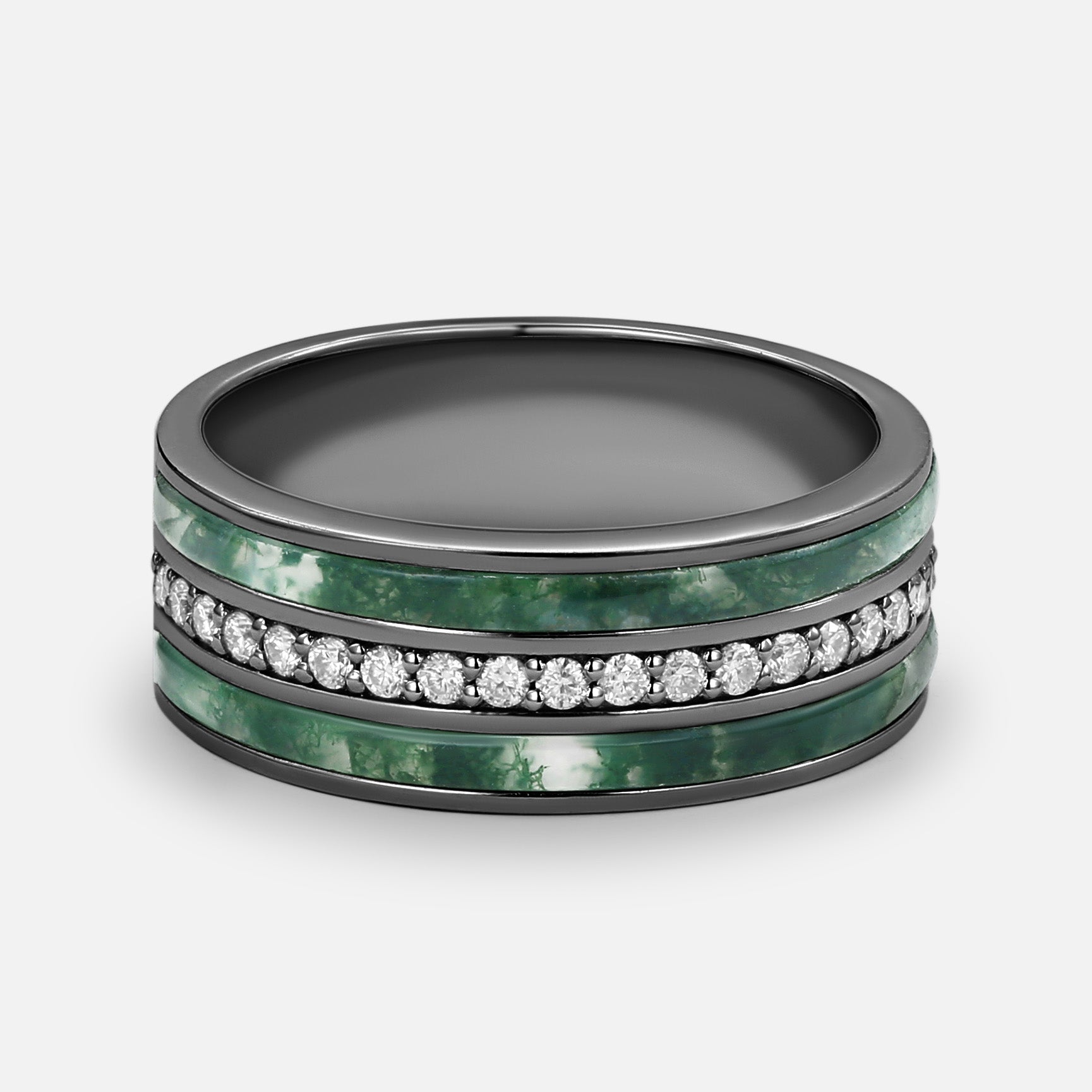 8mm Moss Agate & Moissanite Couple Men's Wedding Band