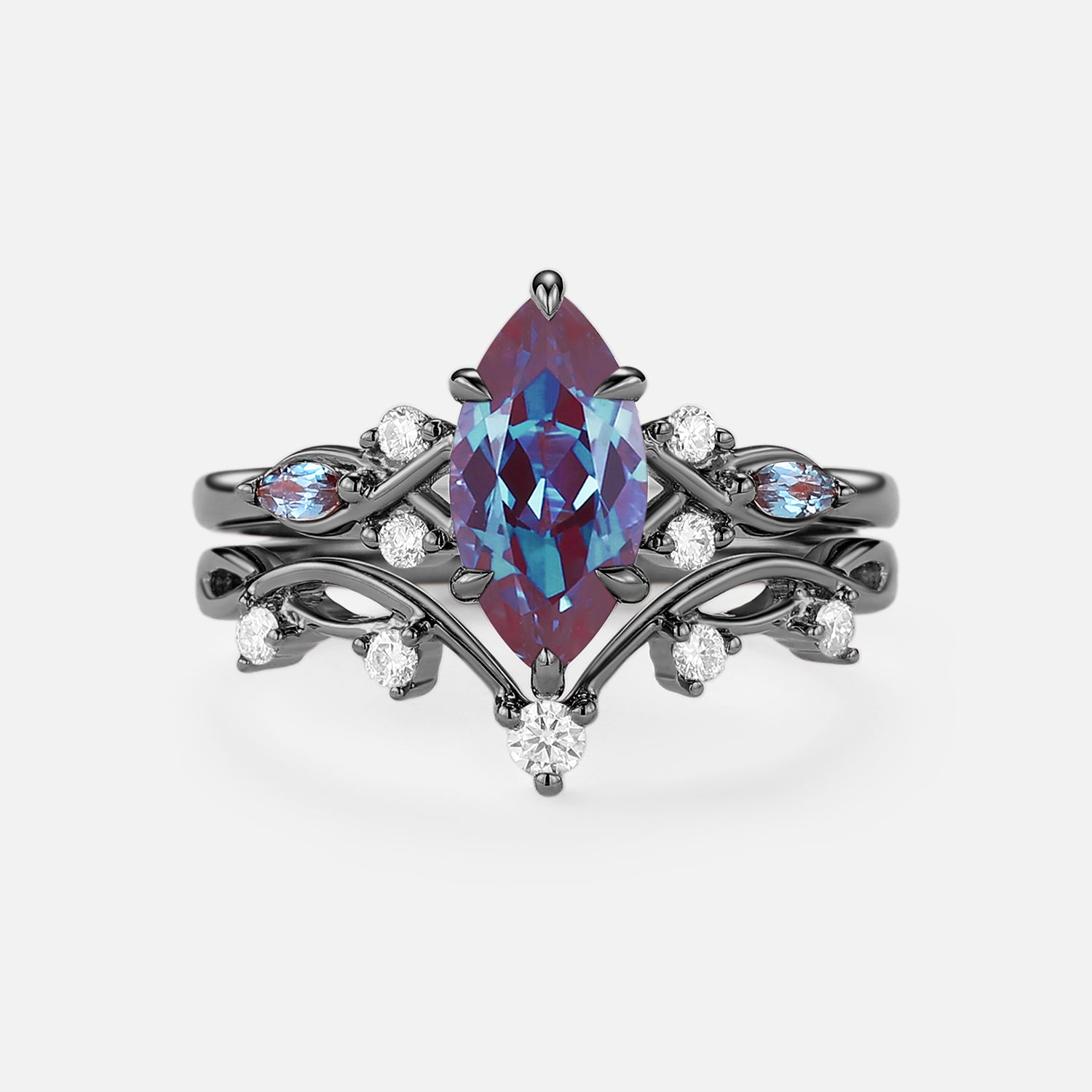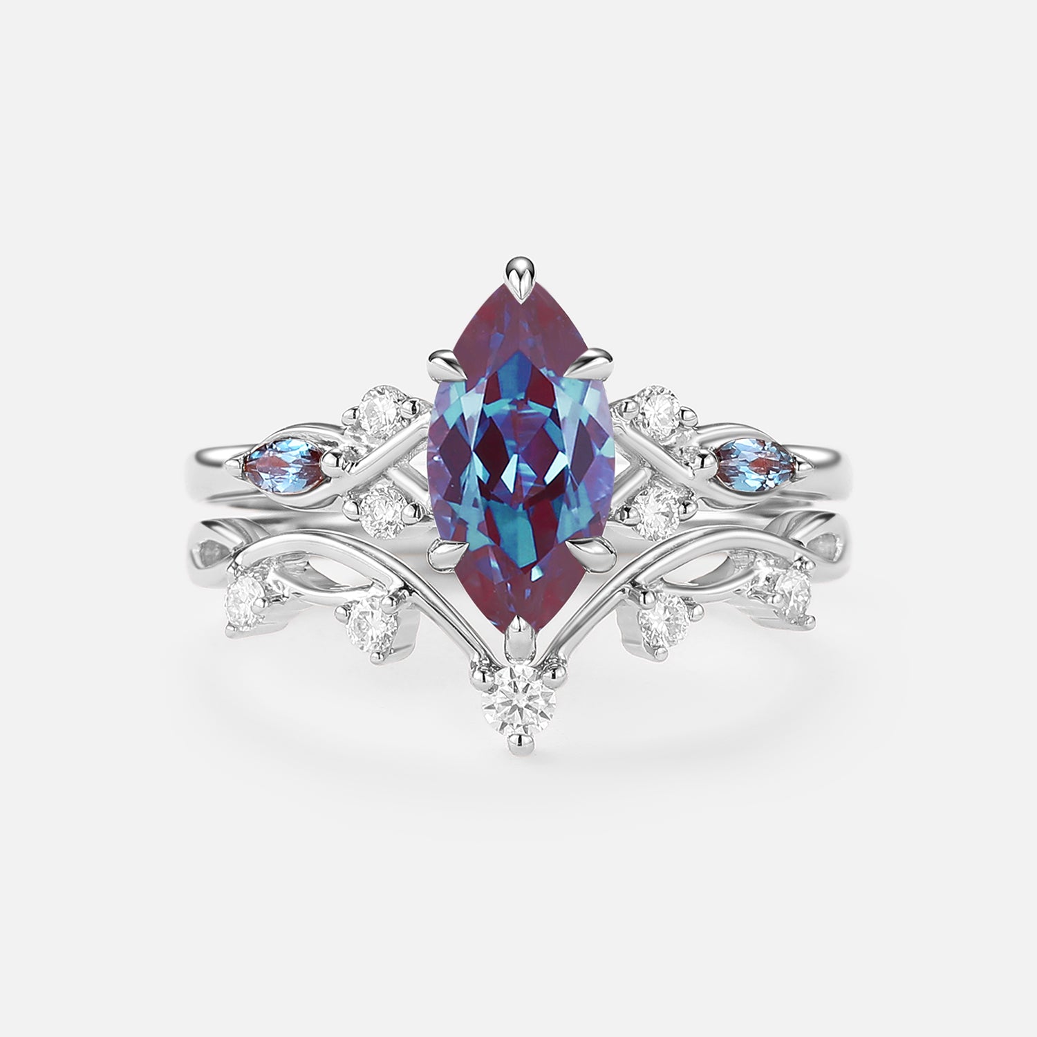Marquise Cut Lab Alexandrite Engagement Ring Sets 2pcs - Mirage