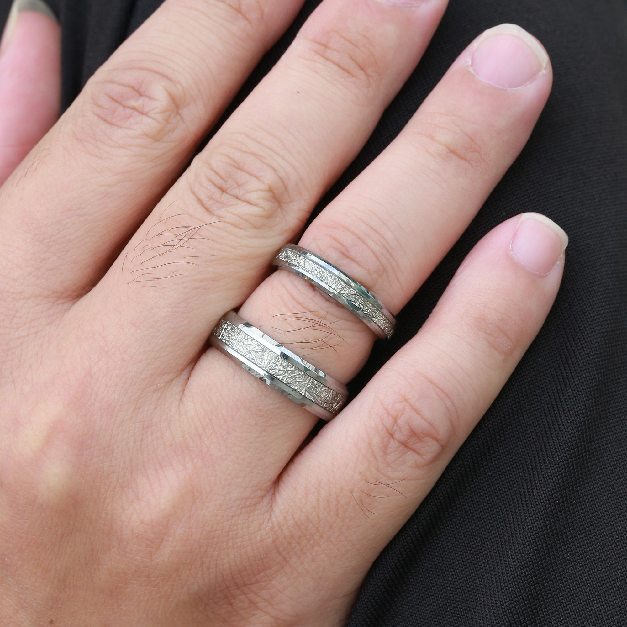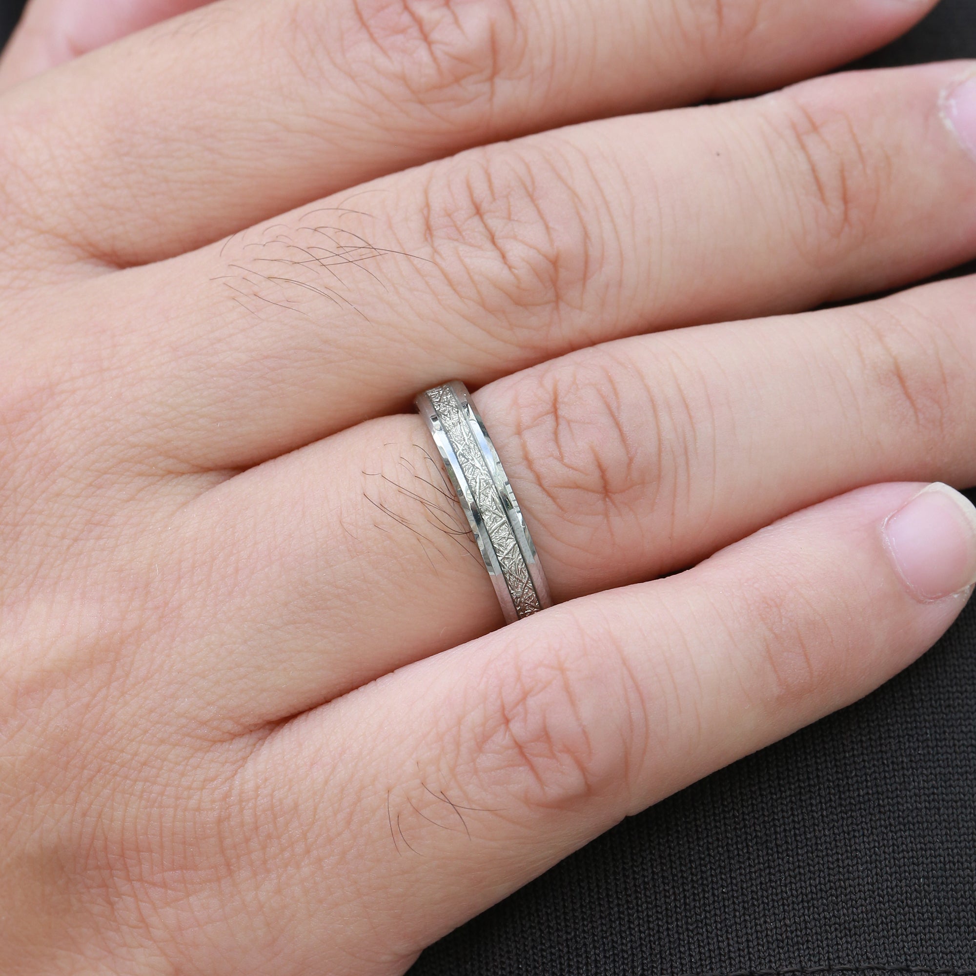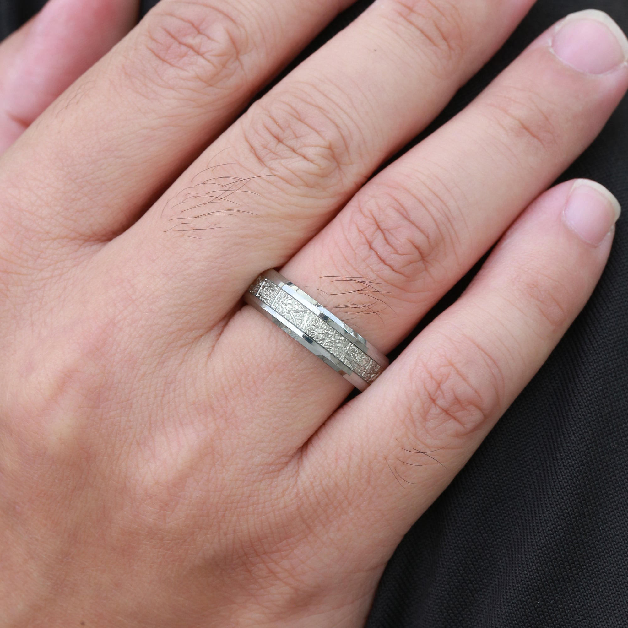 Meteorite Stripe White Gold Couple Men's Wedding Band
